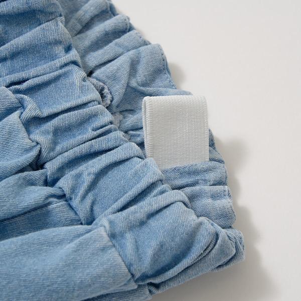 長褲腰部有鬆緊帶開口,可調節和更換鬆緊帶。
