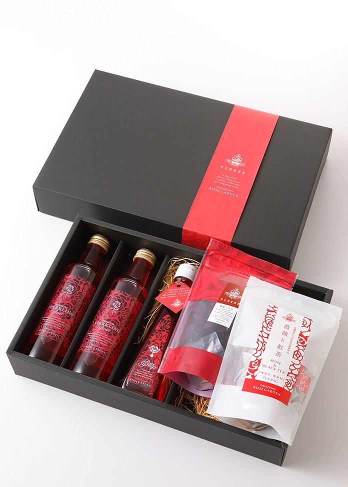 內容或固體含量及總量 [高級氣泡玫瑰] 200毫升×2瓶,[玫瑰糖漿] 120毫升×1瓶,[玫瑰茶] 10克×1瓶,[玫瑰和紅茶] 15克(1.5克×10P)