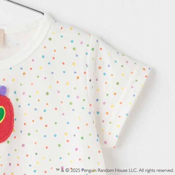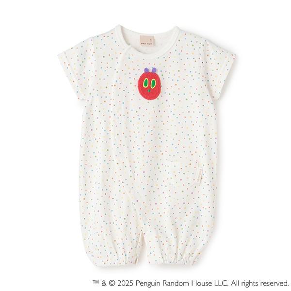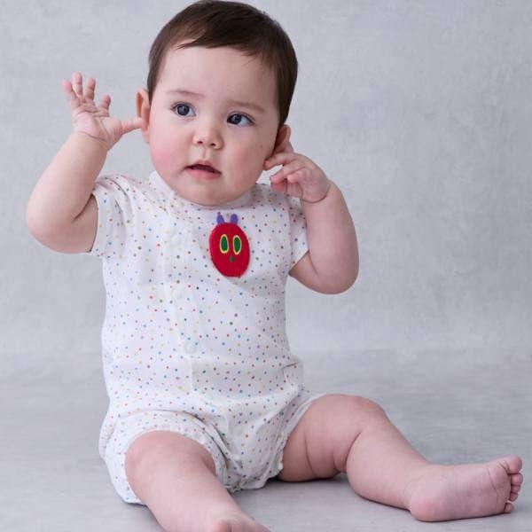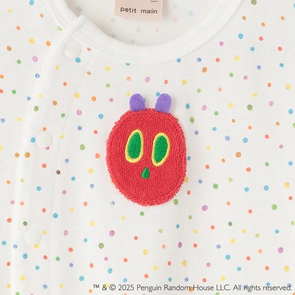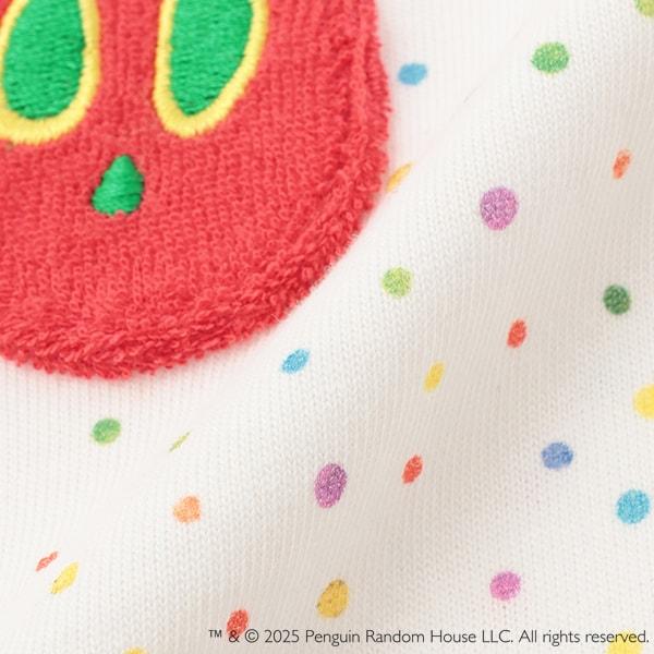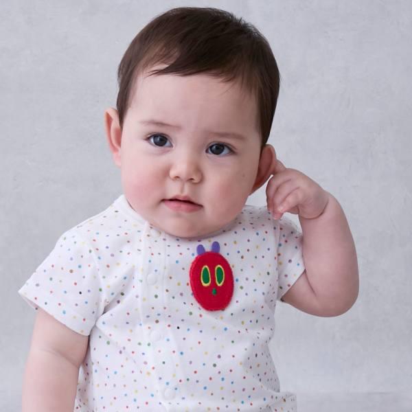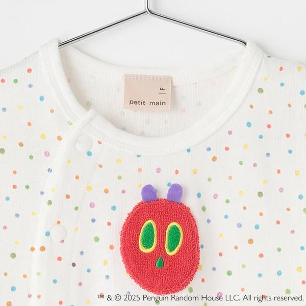 這款工作服的絨布上印有 "飢餓的毛毛蟲 "的臉部圖案。