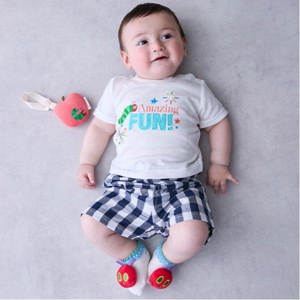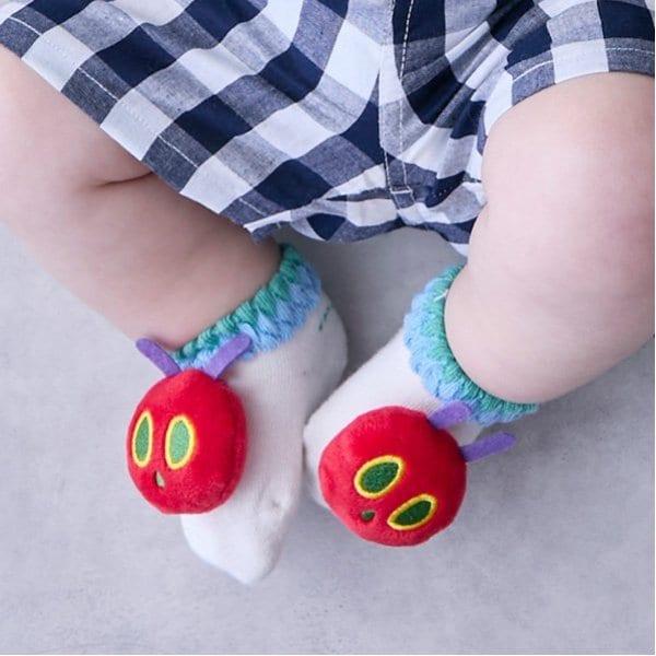 這雙襪子上有一個可愛的立體飢餓毛毛蟲圖案。