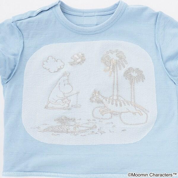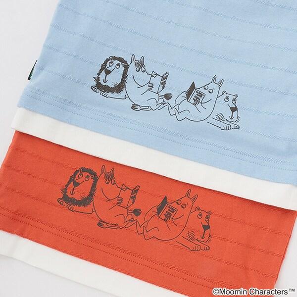 背面印有姆明和斯諾克的小男孩看書的場景。