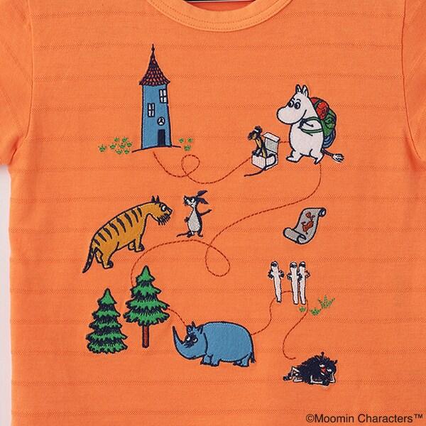 正面的刺繡圖案是姆明、臭臭、Gnoronoro 和 Sofus 在前往姆明家的路上。