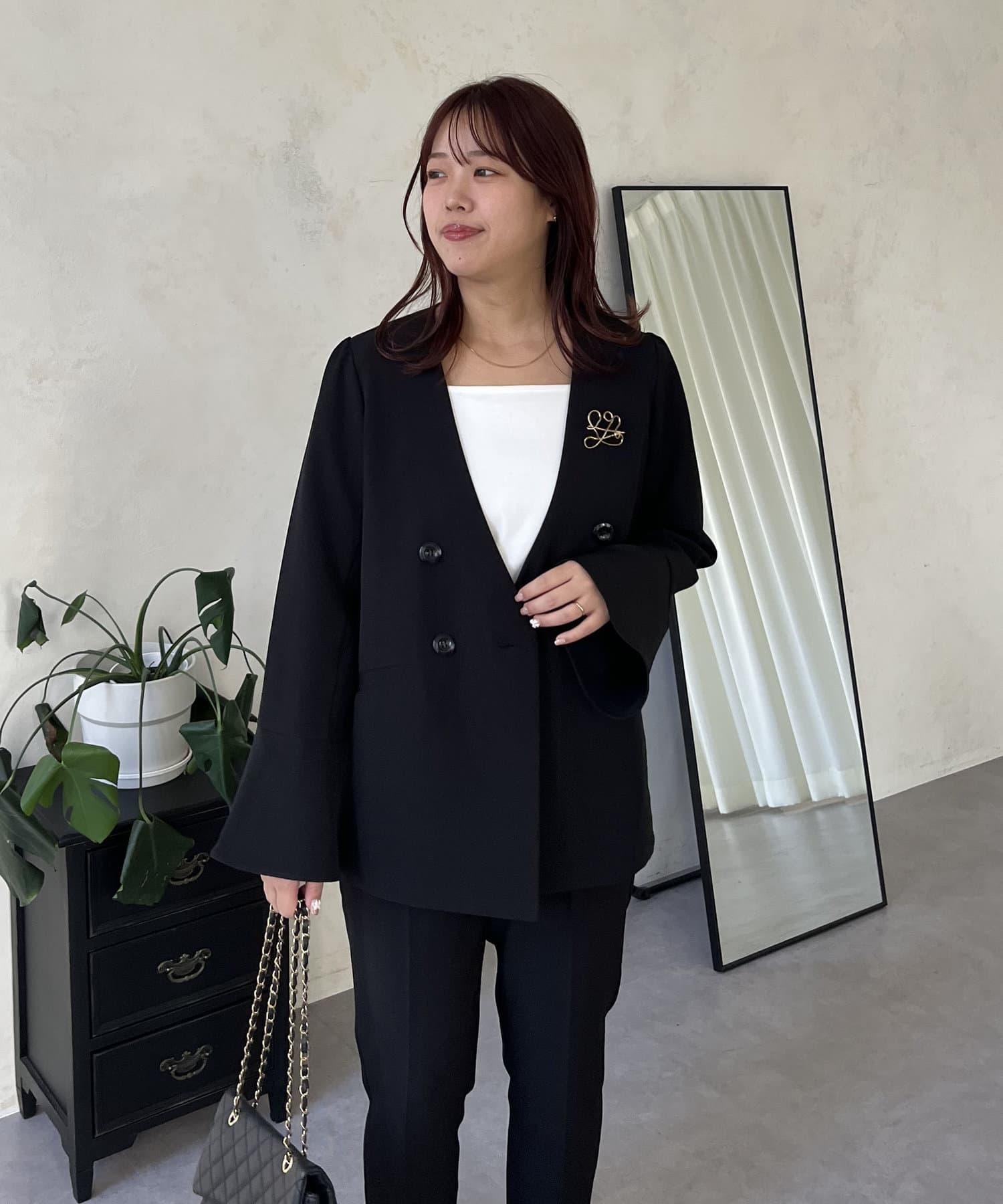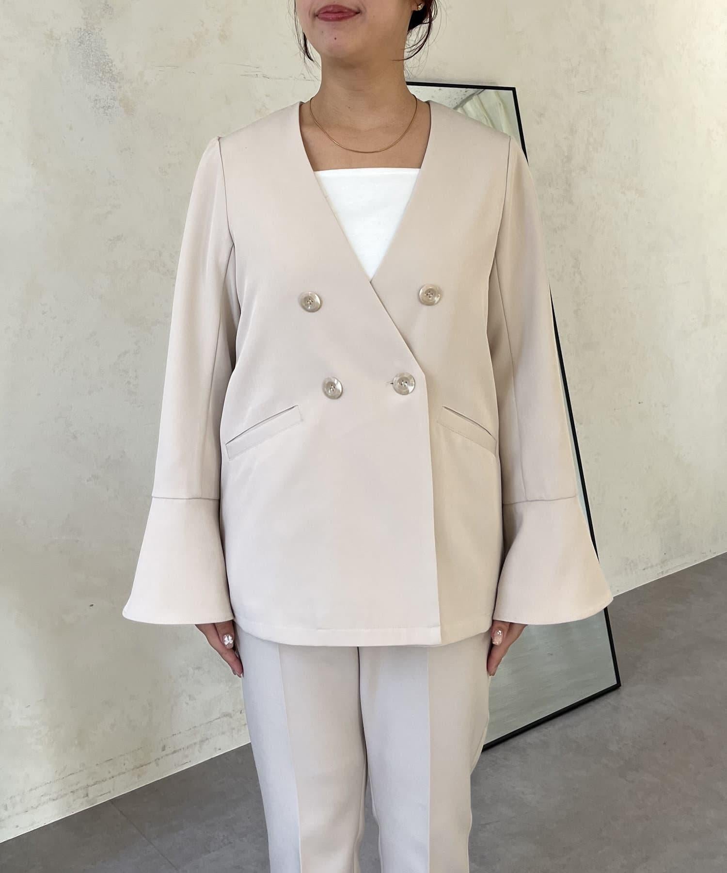 【媽媽監修!禮服單品】雙排扣喇叭袖V領夾克