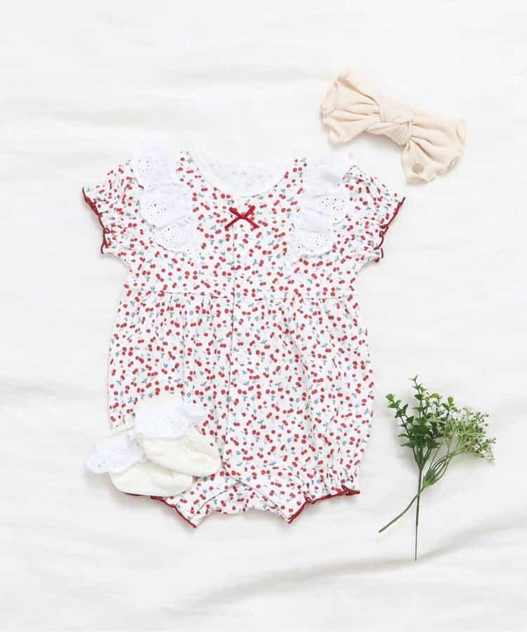 細緻的櫻桃圖案連體褲給人一種少女的印象。