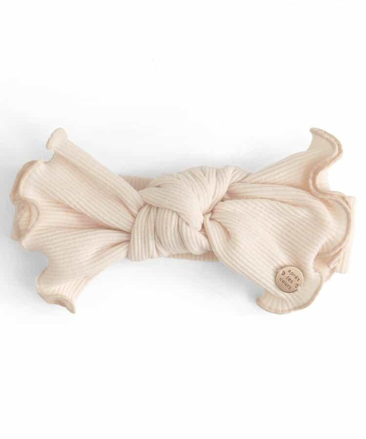 配上帶有大絲帶的可愛髮箍和荷葉邊嬰兒襪。