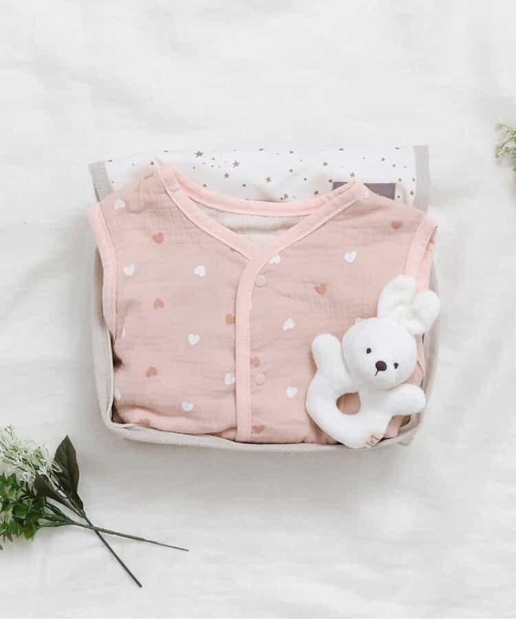 【嬰兒禮物】肌觸感極佳!心形圖案紗布睡衣 禮物套裝