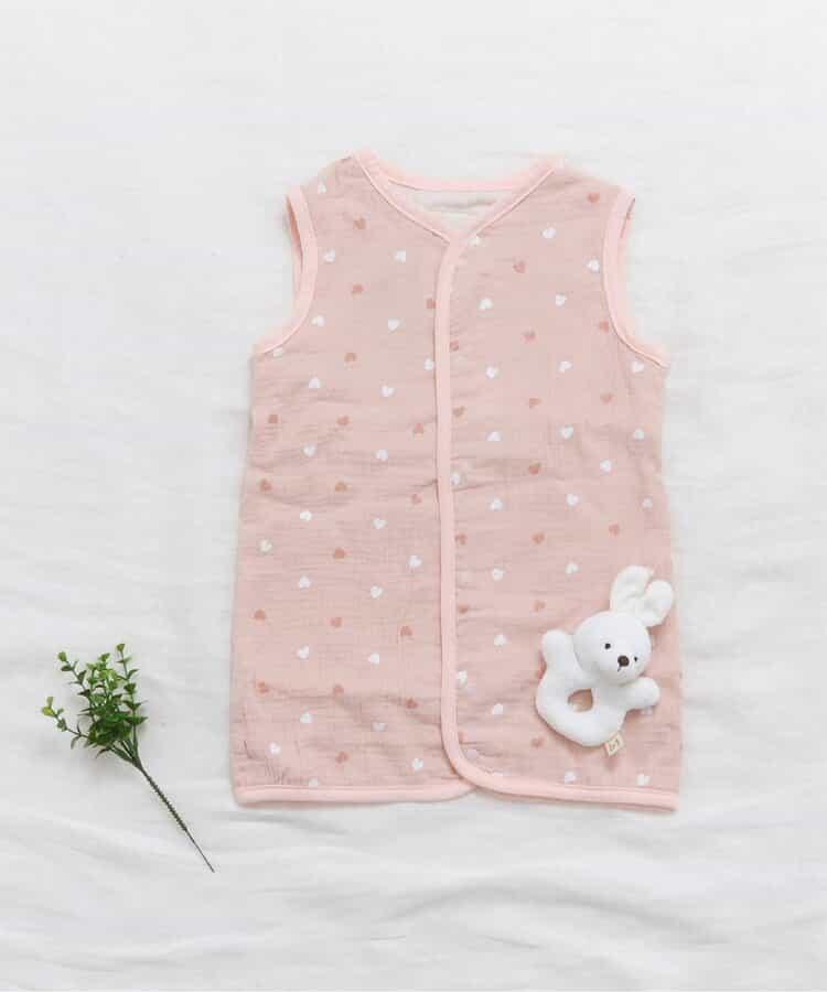 厚實的紗布四季皆宜,出汗時不易發脹,100% 純棉材質輕柔地包裹著寶寶的肌膚。