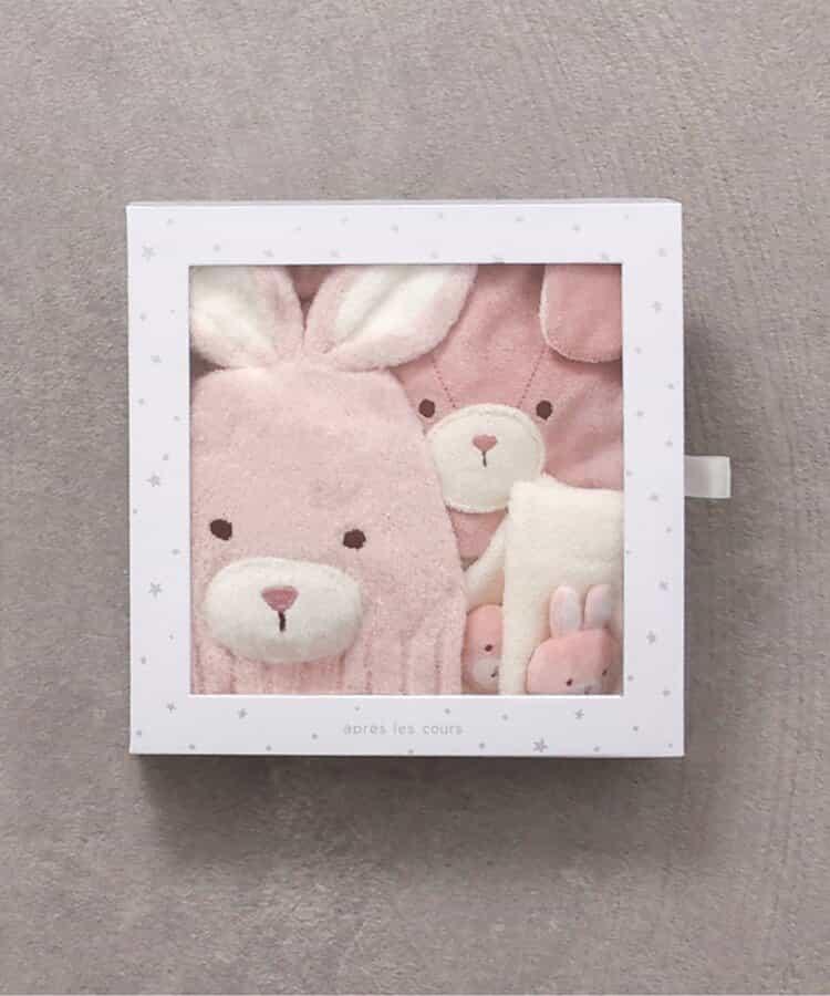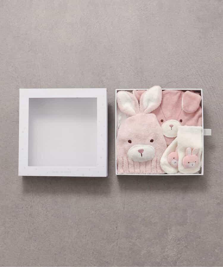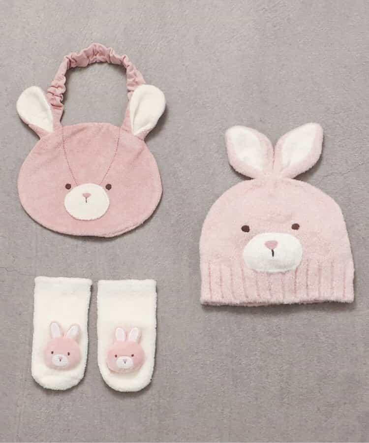 三件套包括帽子、觸控筆和兔子圖案的襪子。