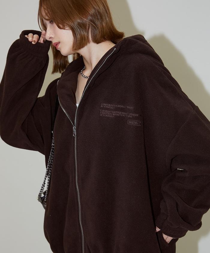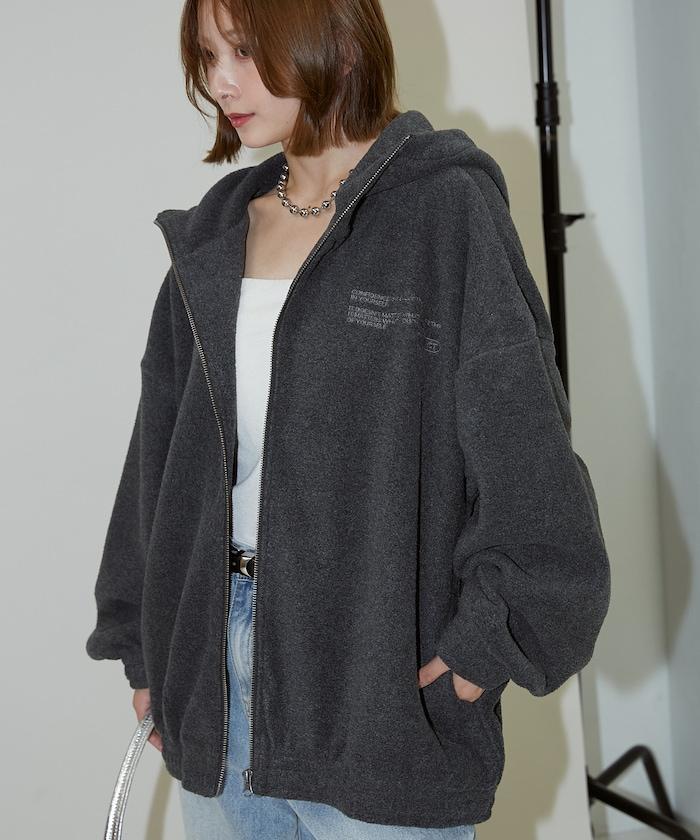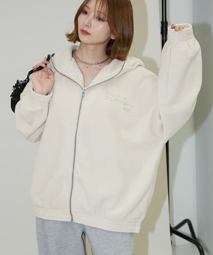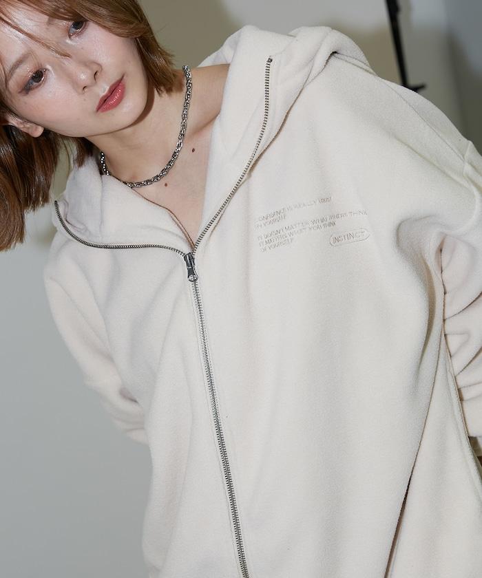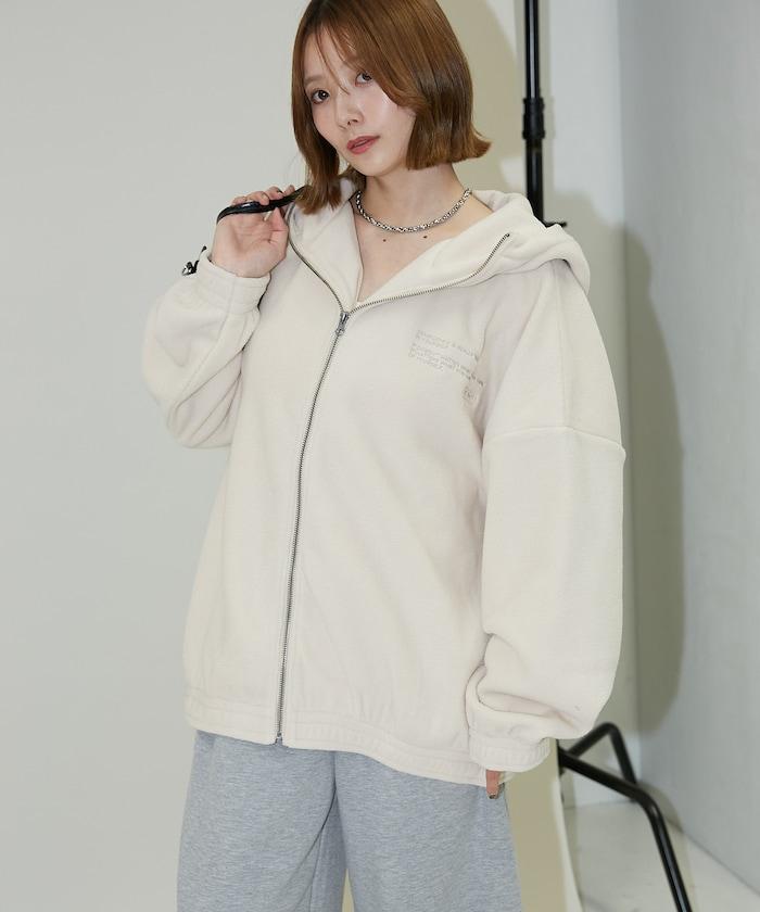 字母刺繡羊羔絨拉鍊寬鬆連帽衛衣