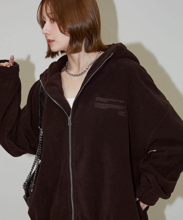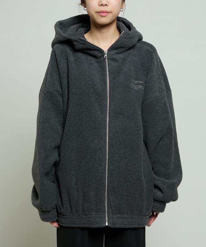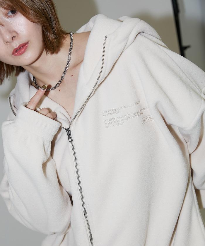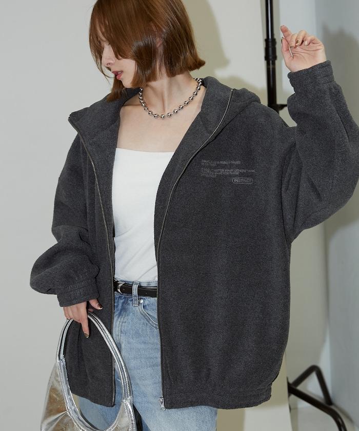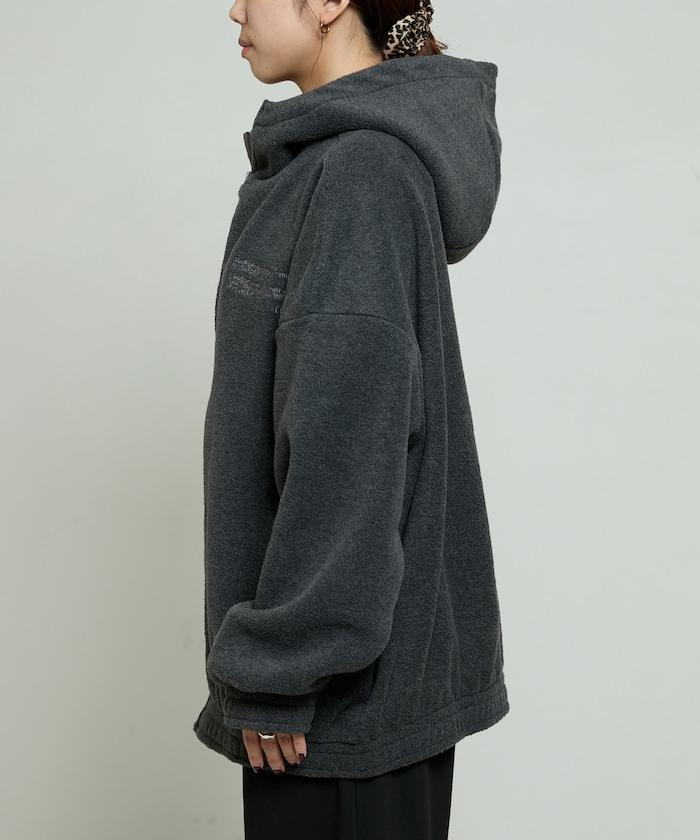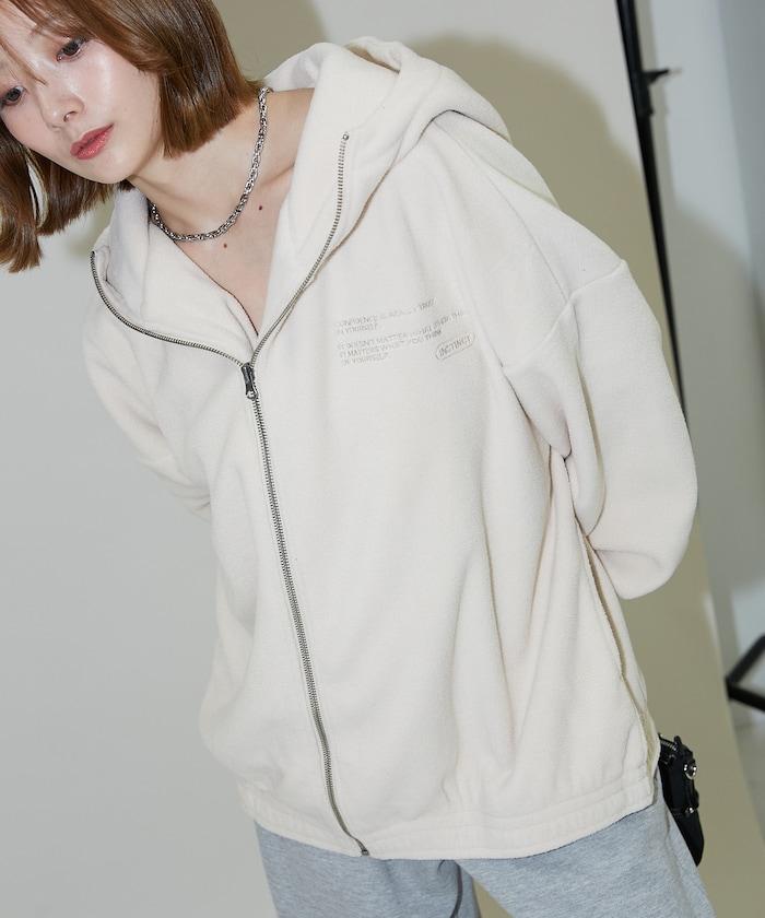字母刺繡羊羔絨拉鍊寬鬆連帽衛衣