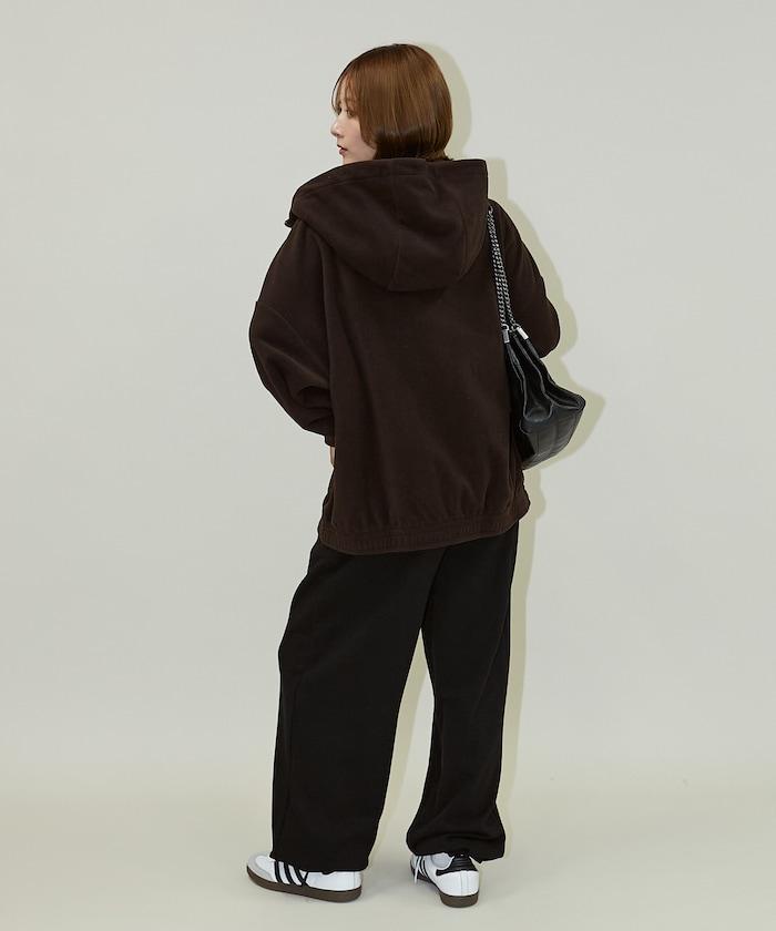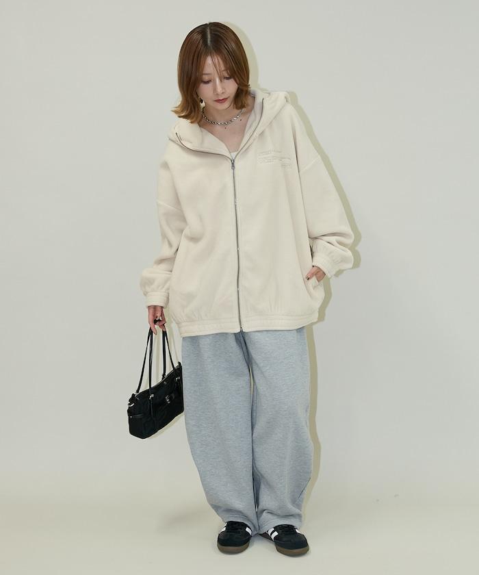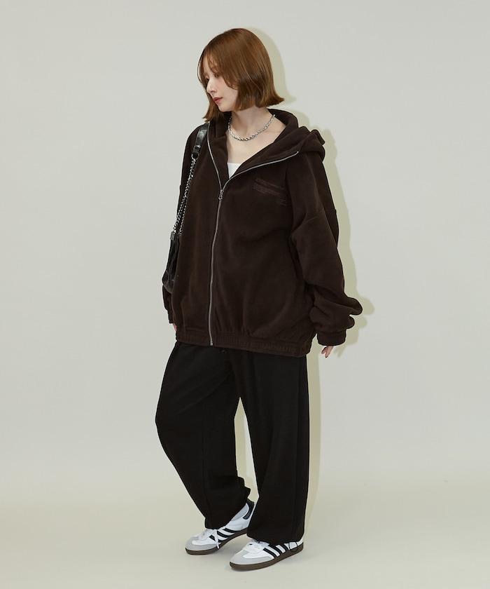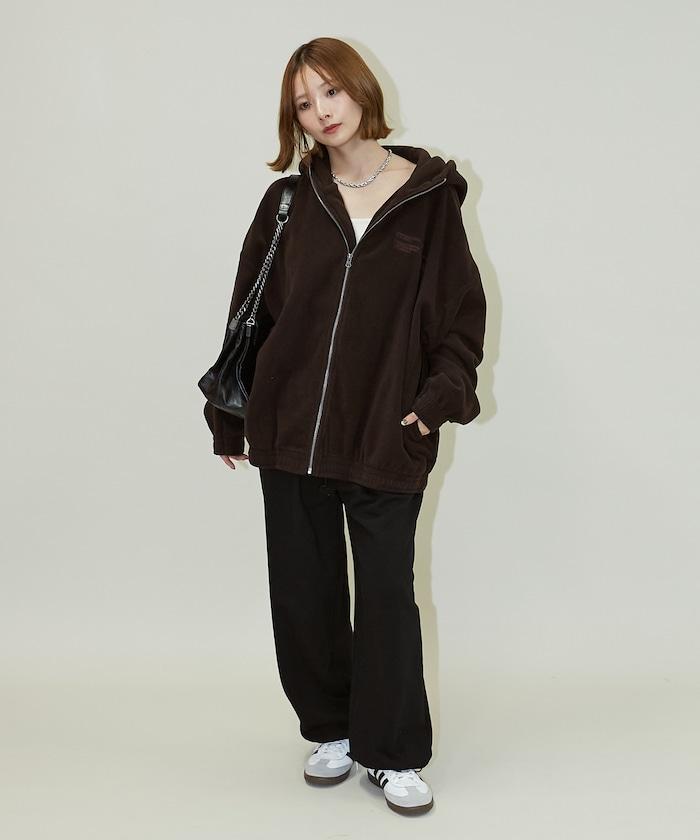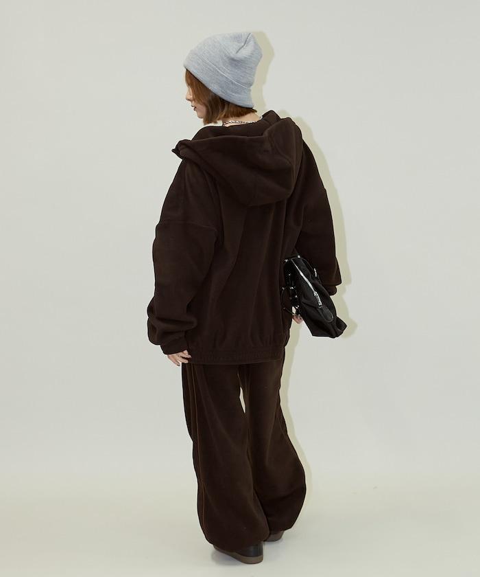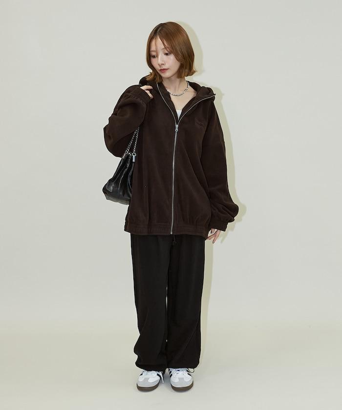 與同材質的抓絨長褲搭配,形成整體感和街頭休閒裝的搭配風格。