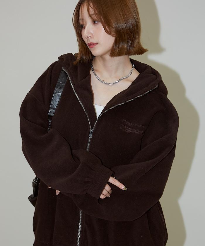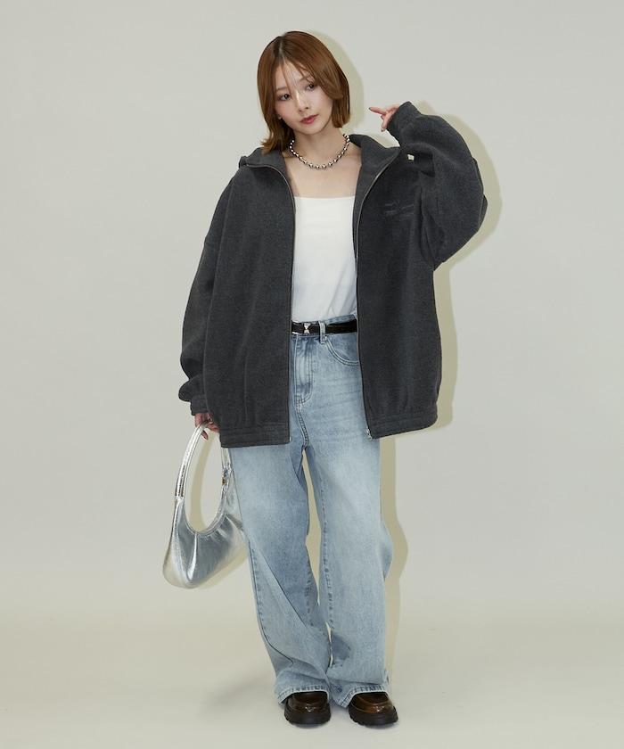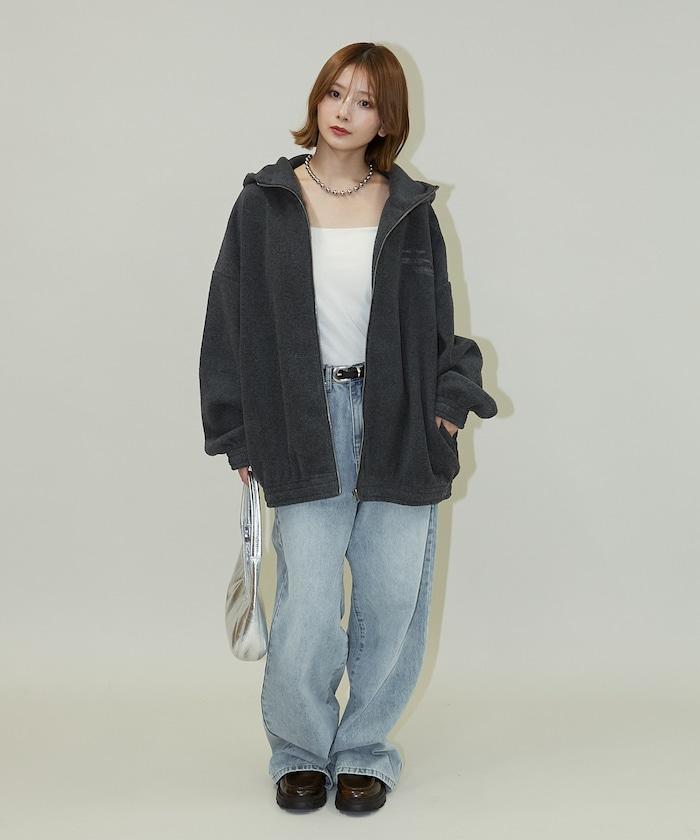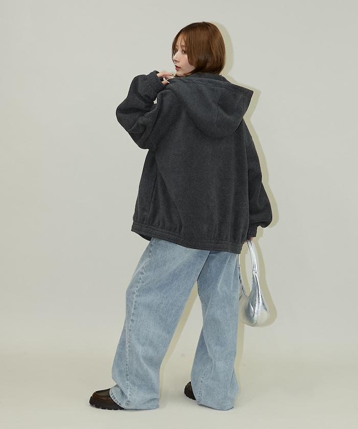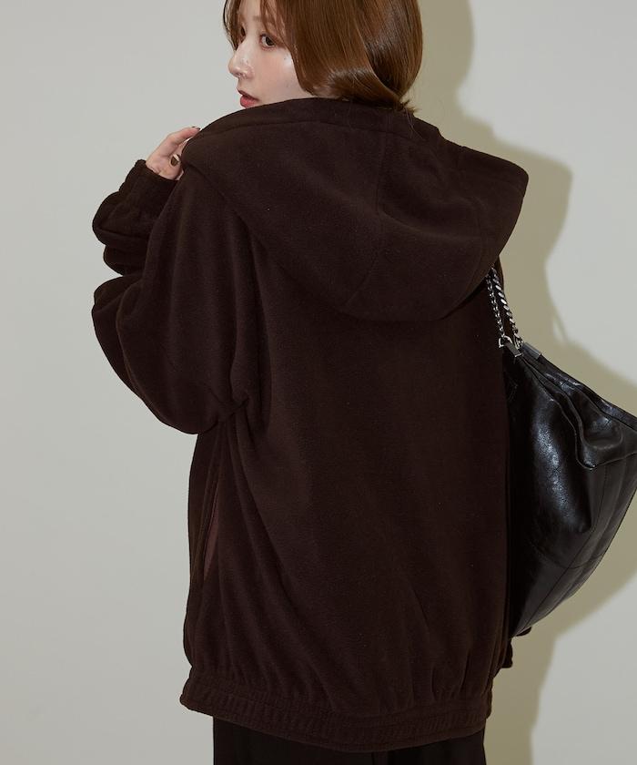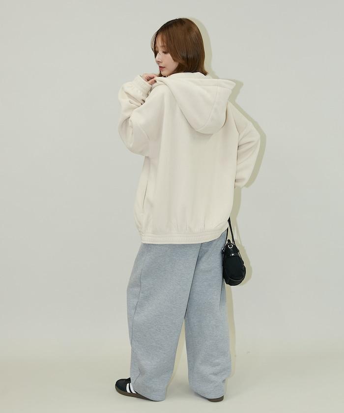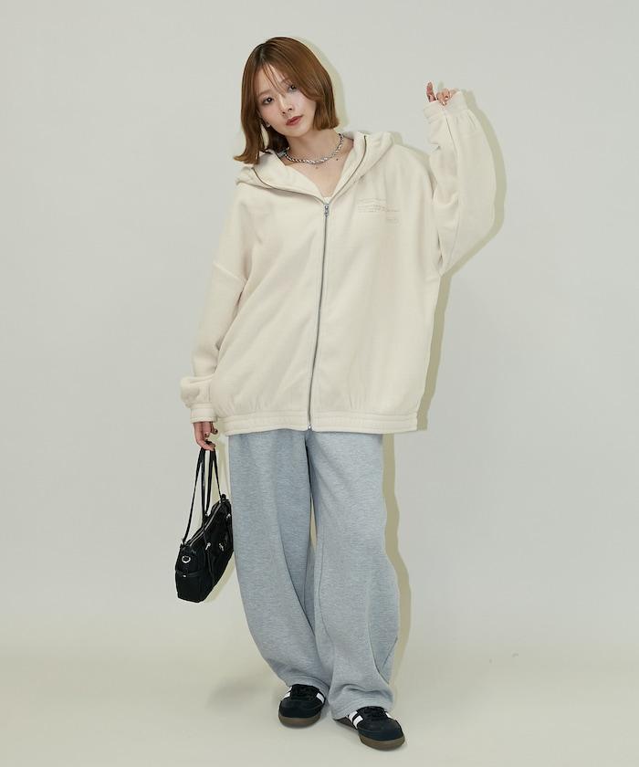 與同材質的抓絨長褲搭配,形成整體感和街頭休閒裝的搭配風格。