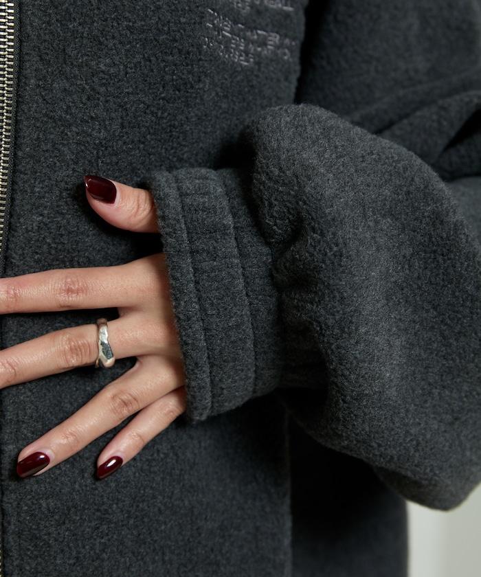 超大號羊毛拉鍊連帽衫,繡有字母圖案。