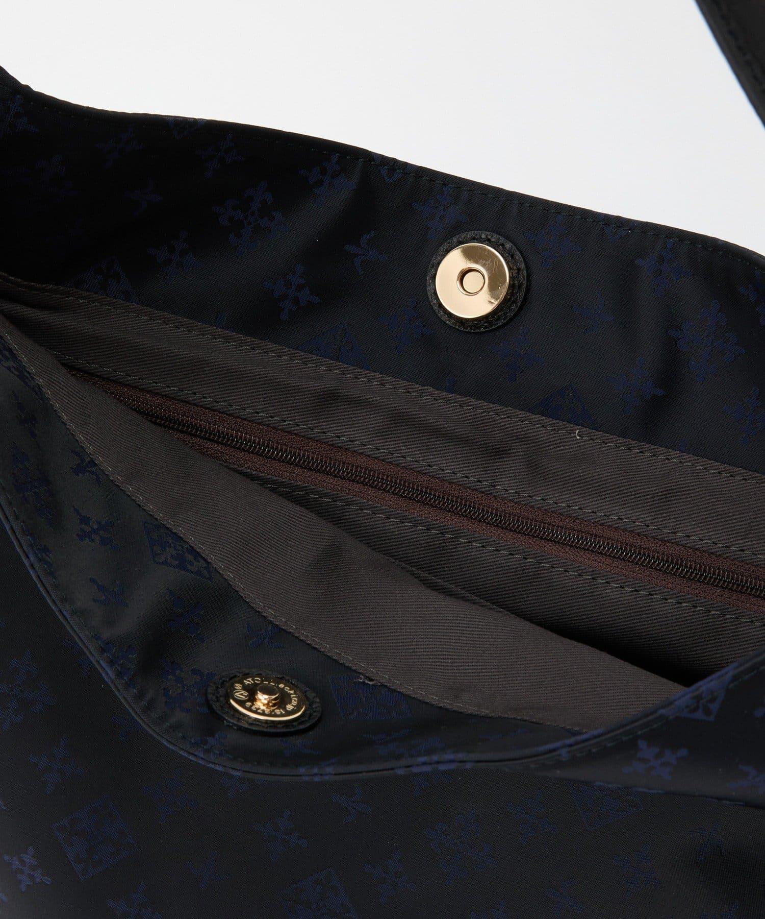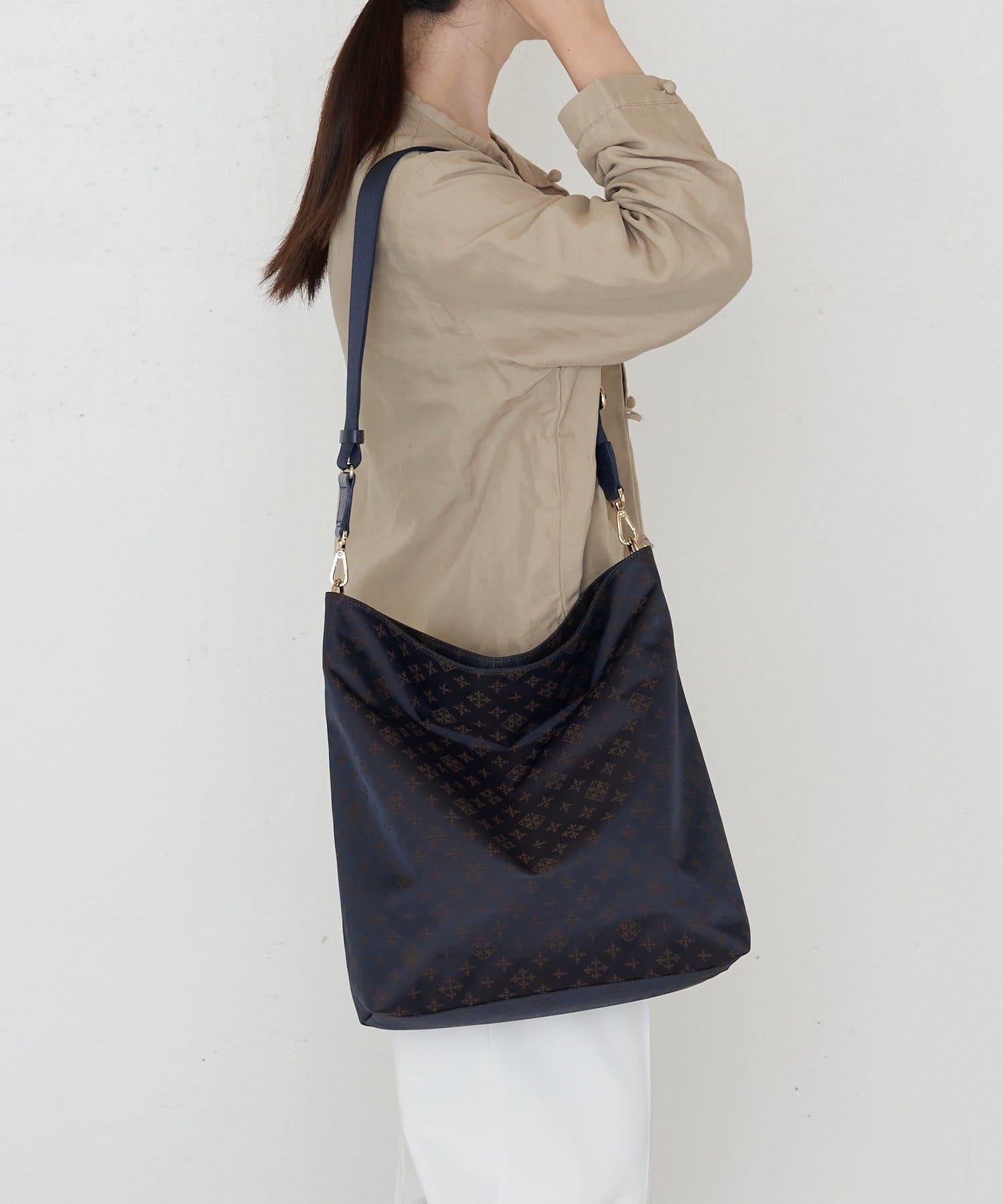 這款單肩包給人一種成熟的印象,在柔軟的尼龍材料上印有 Racit 的字母圖案。