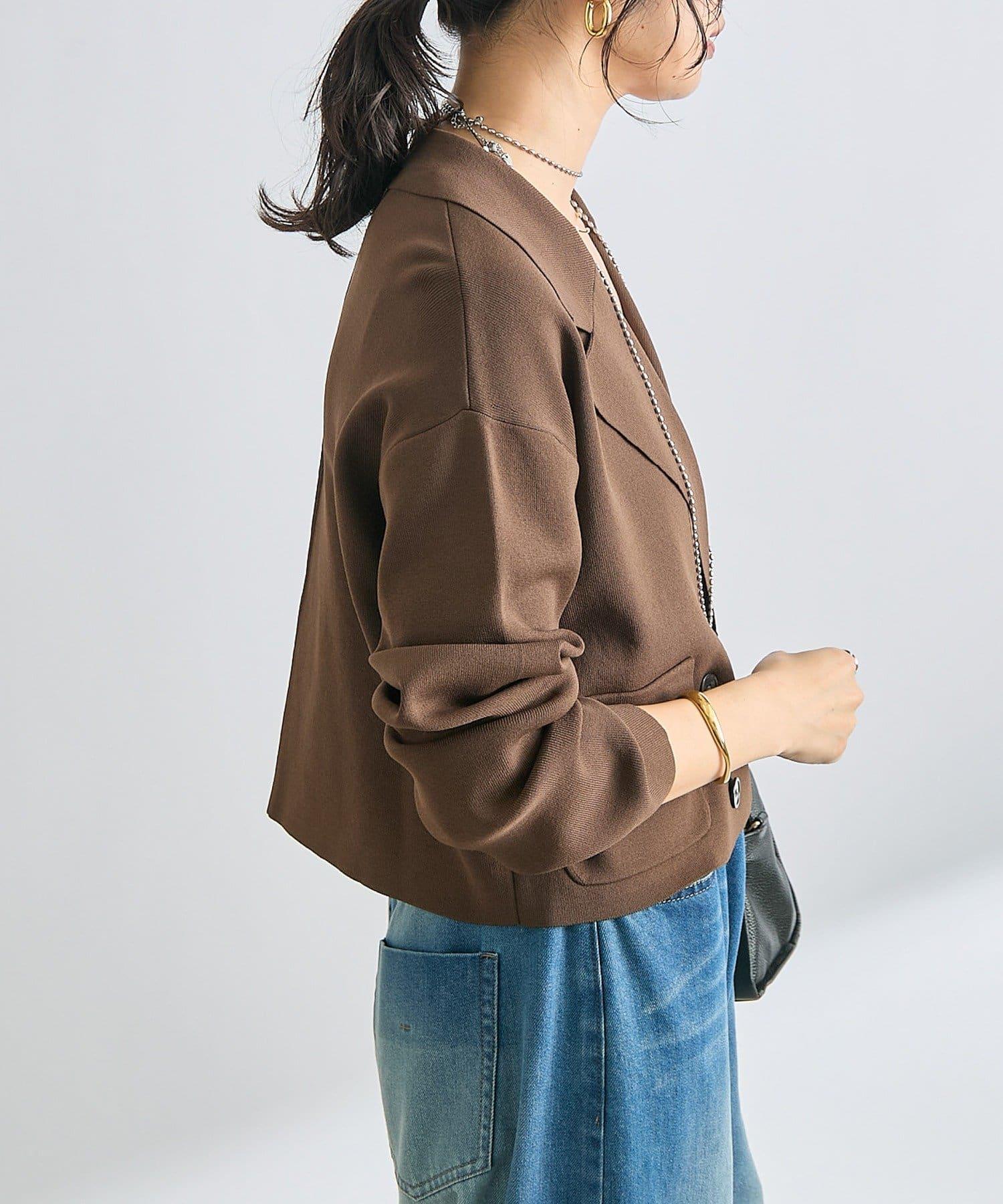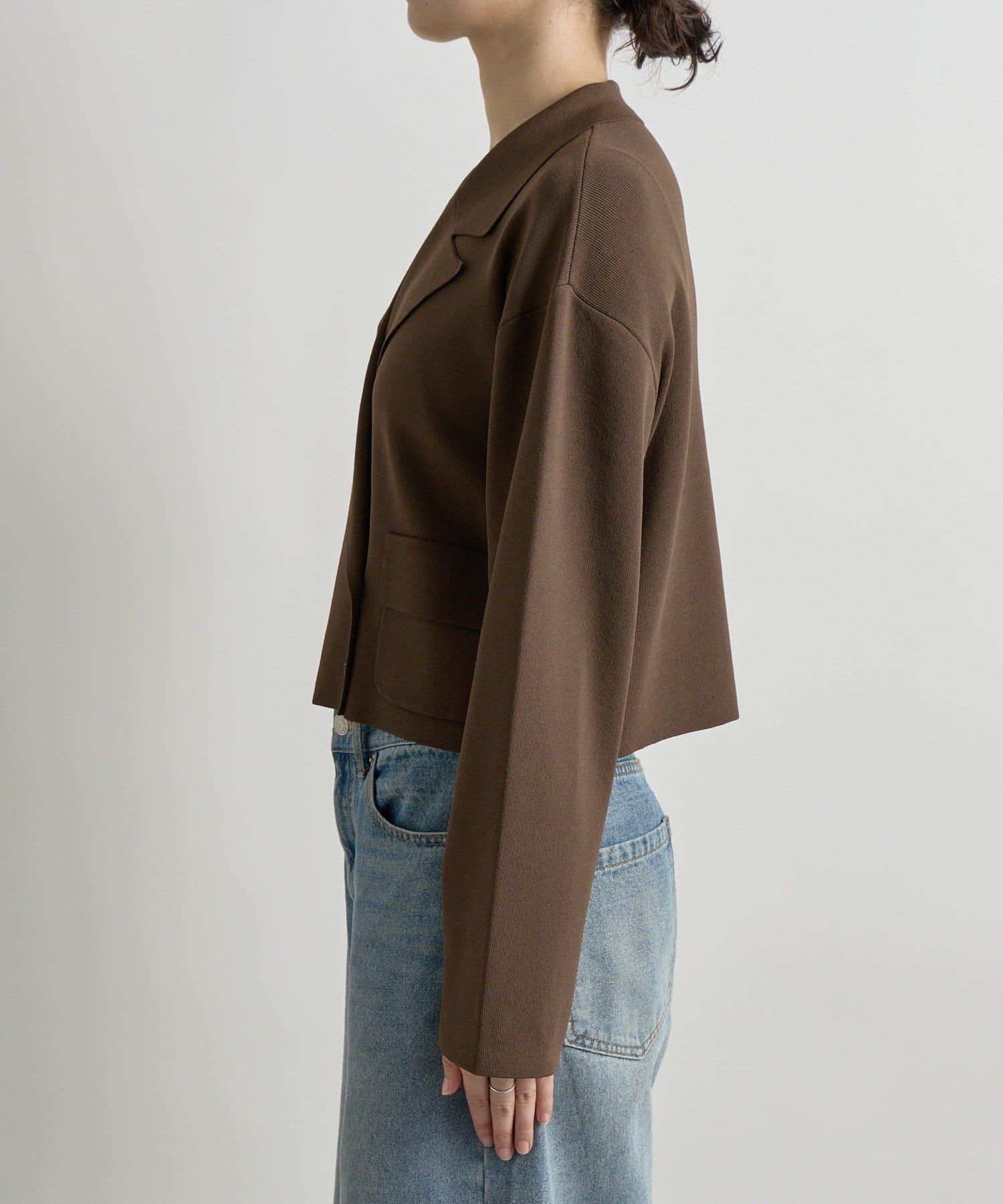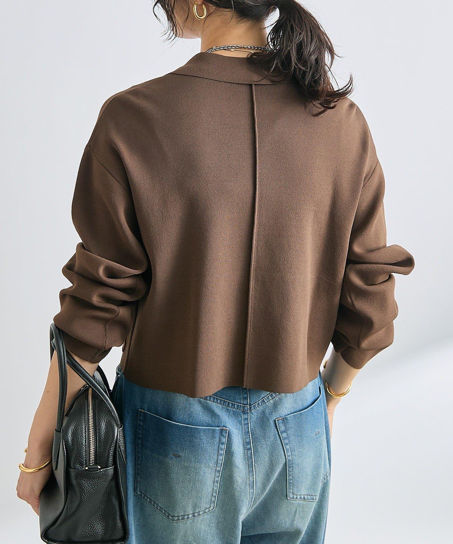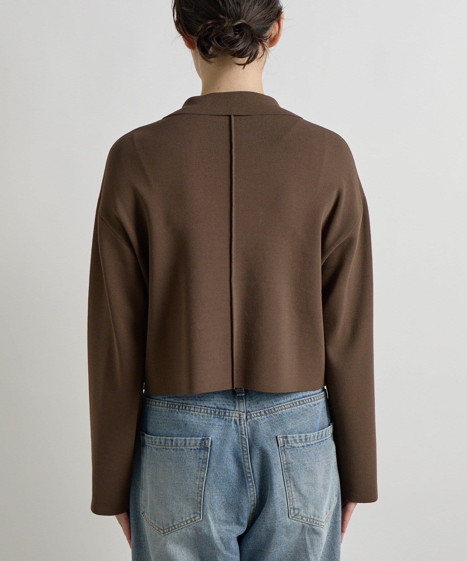 這是一款針織夾克,領口突出的設計與短款的長度達到了全新的平衡。