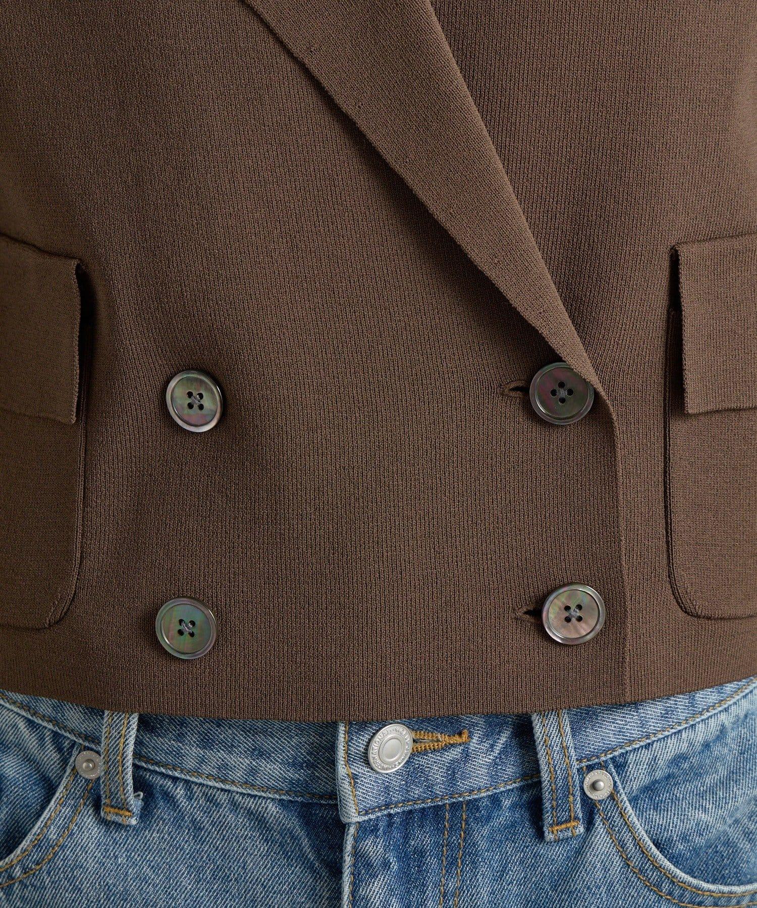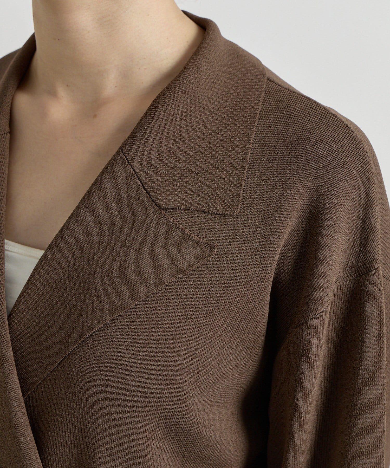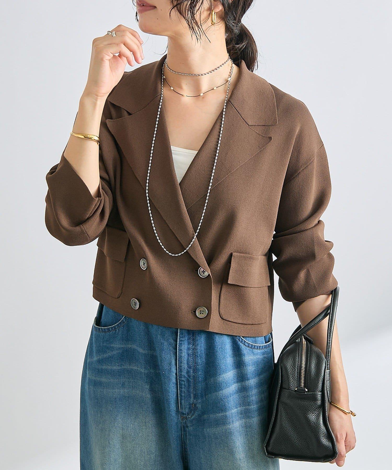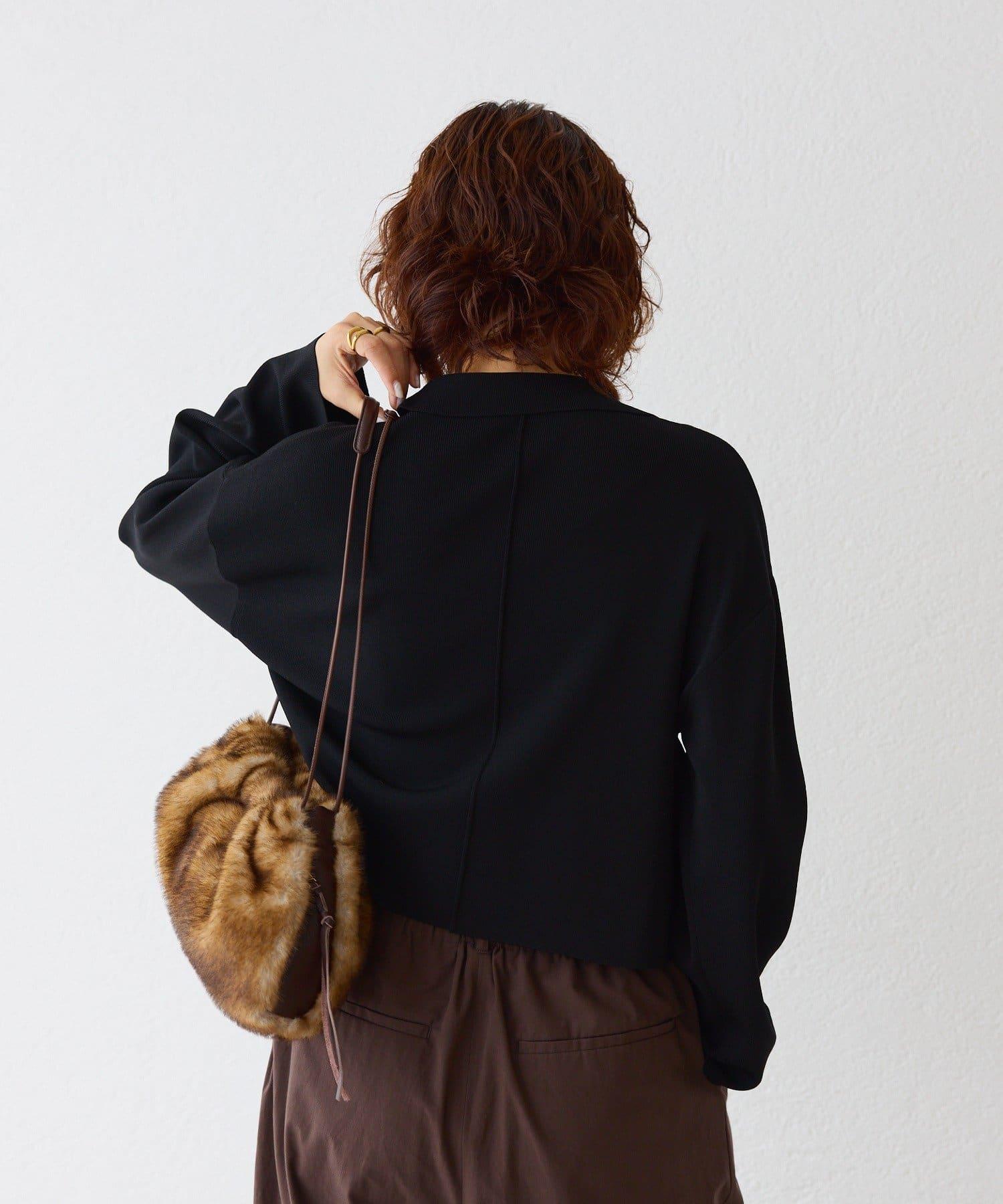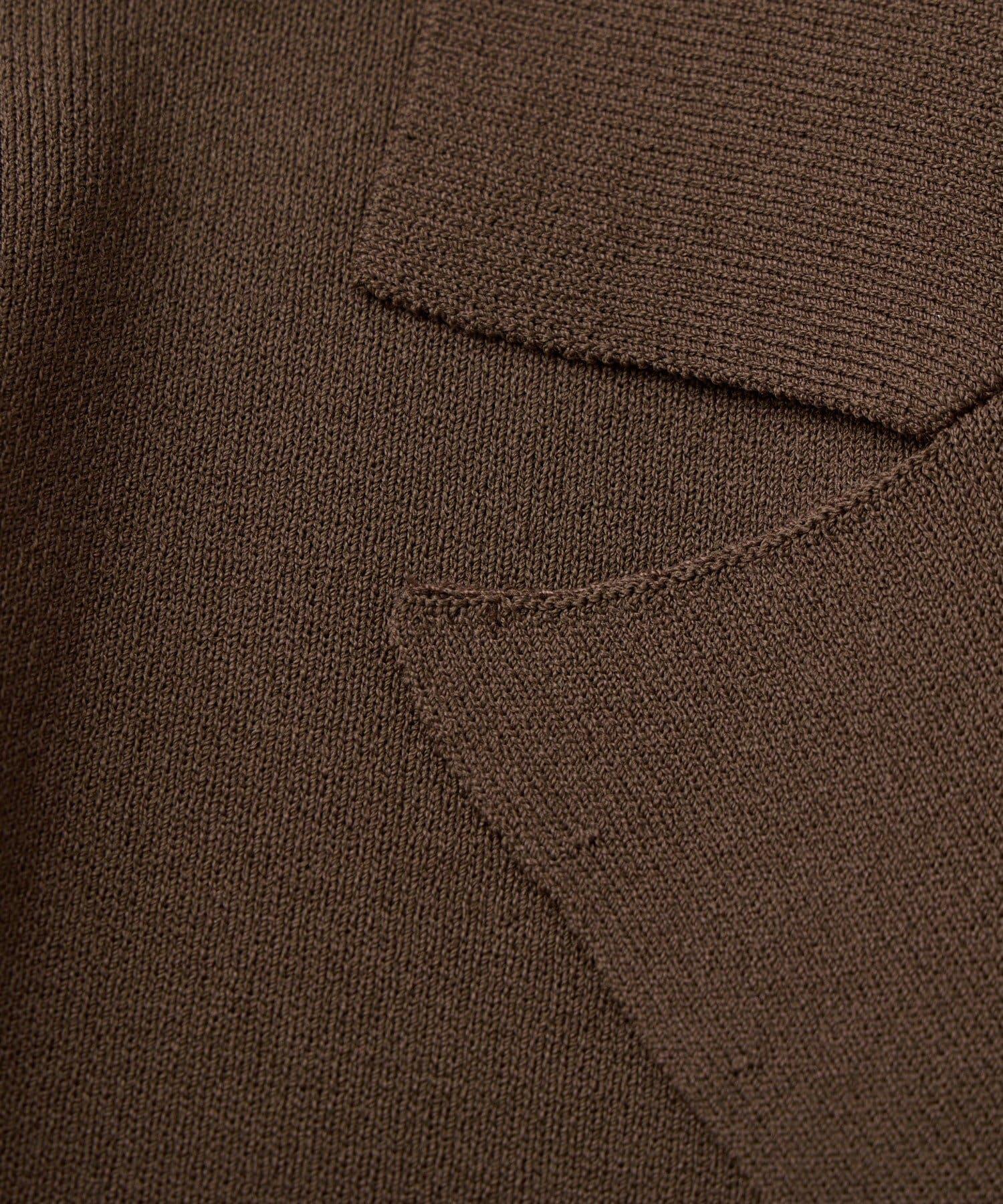 這是一款針織夾克,領口突出的設計與短款的長度達到了全新的平衡。