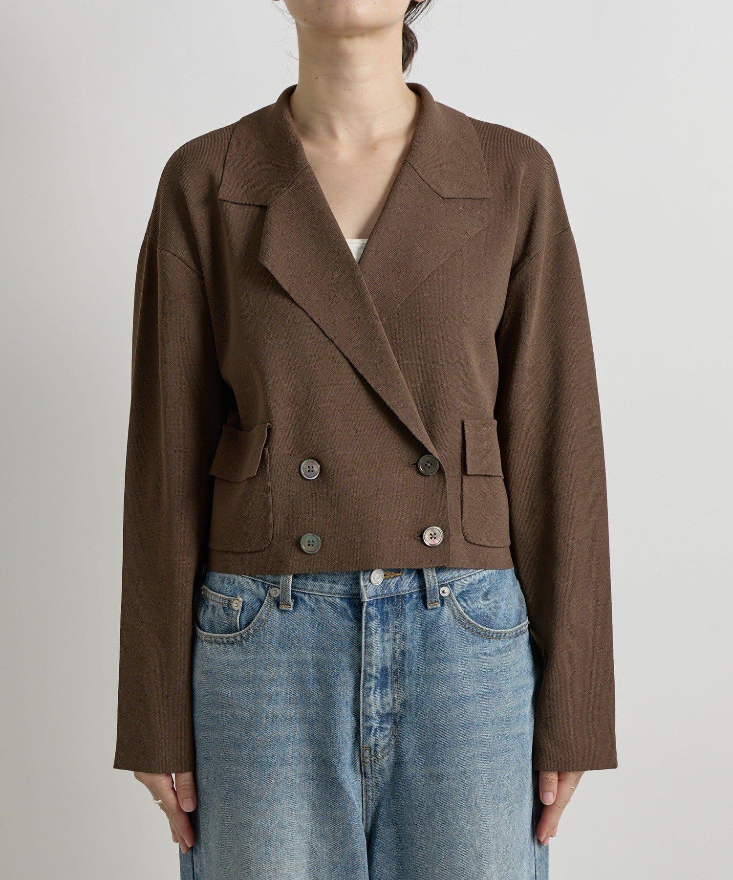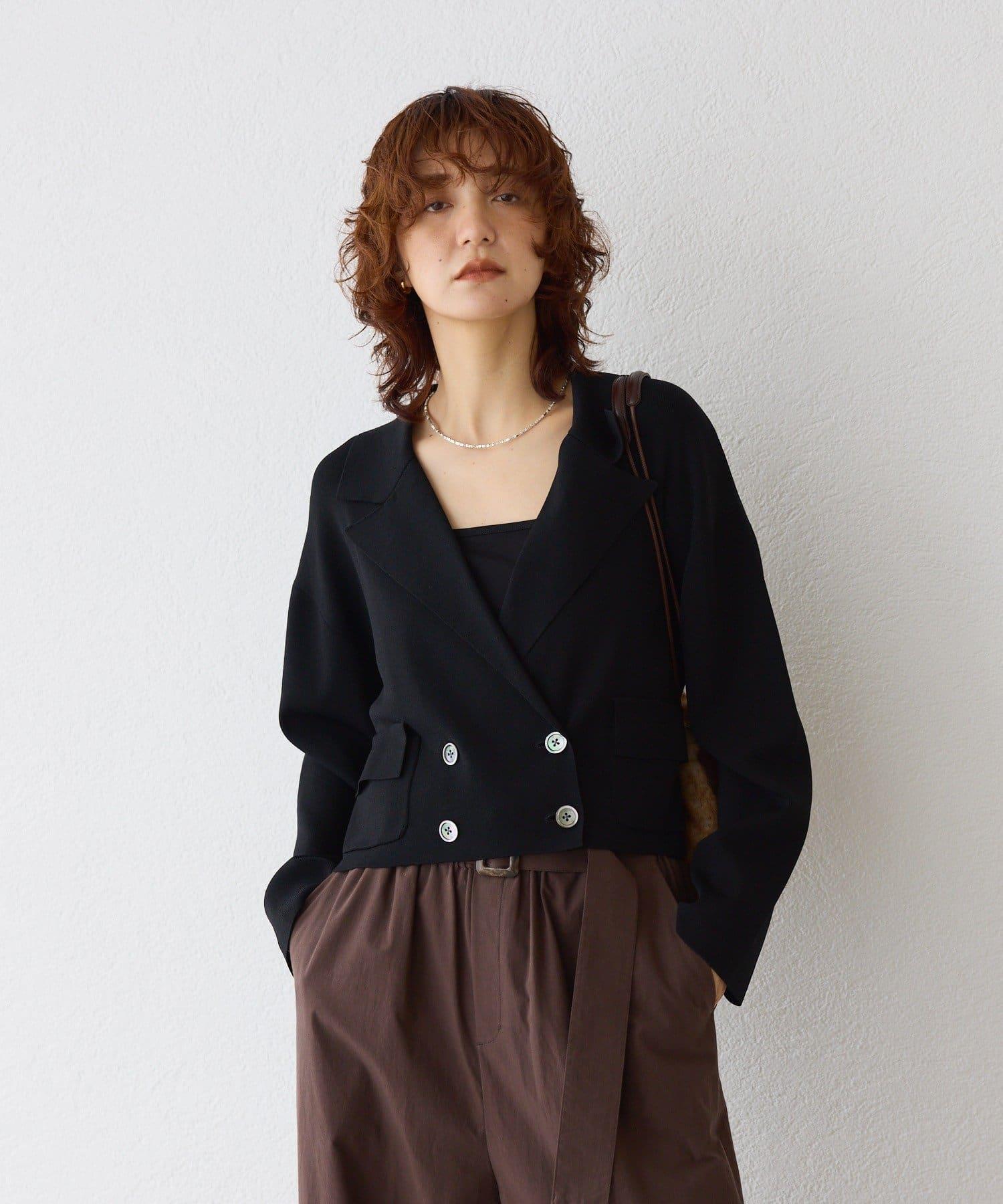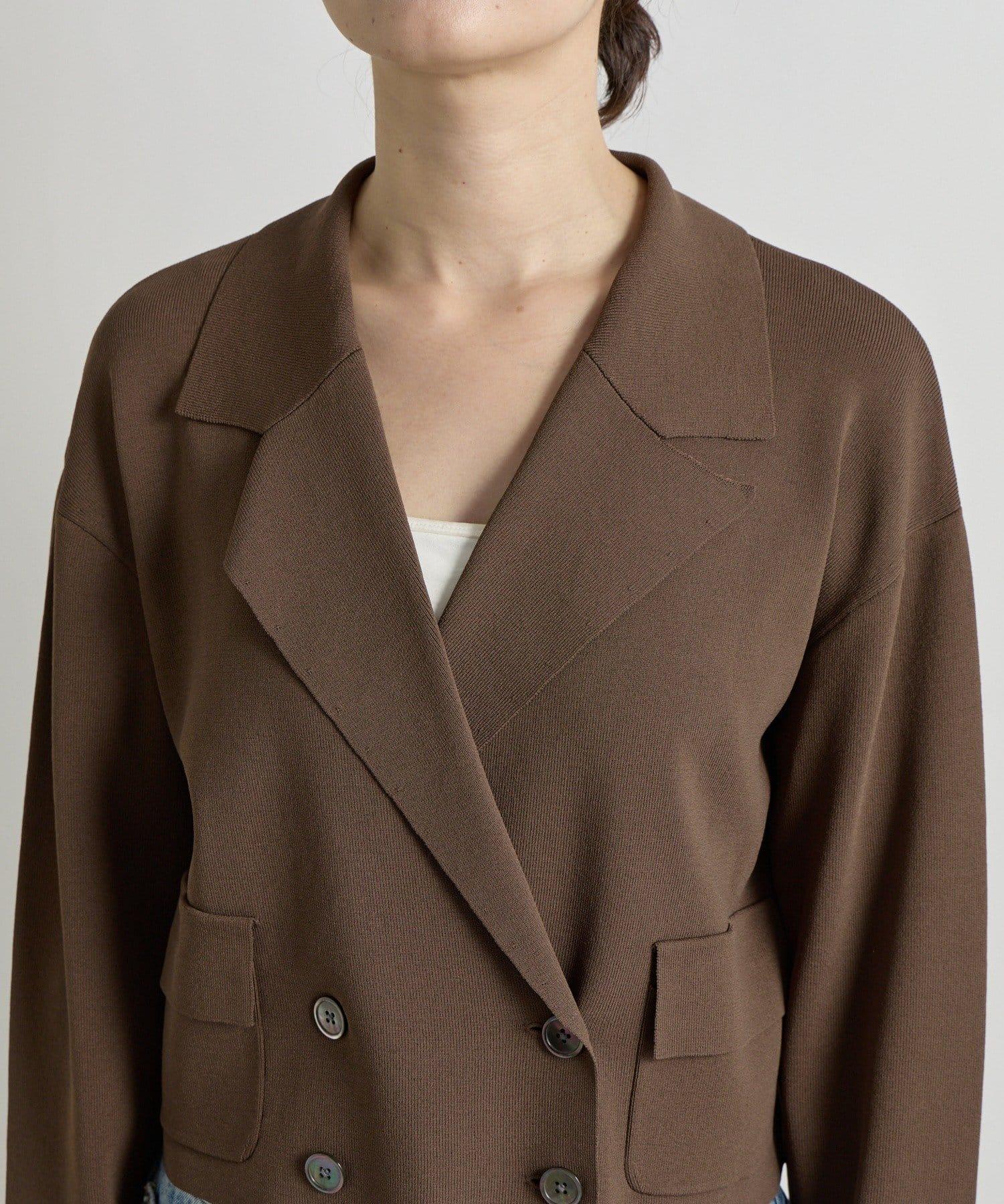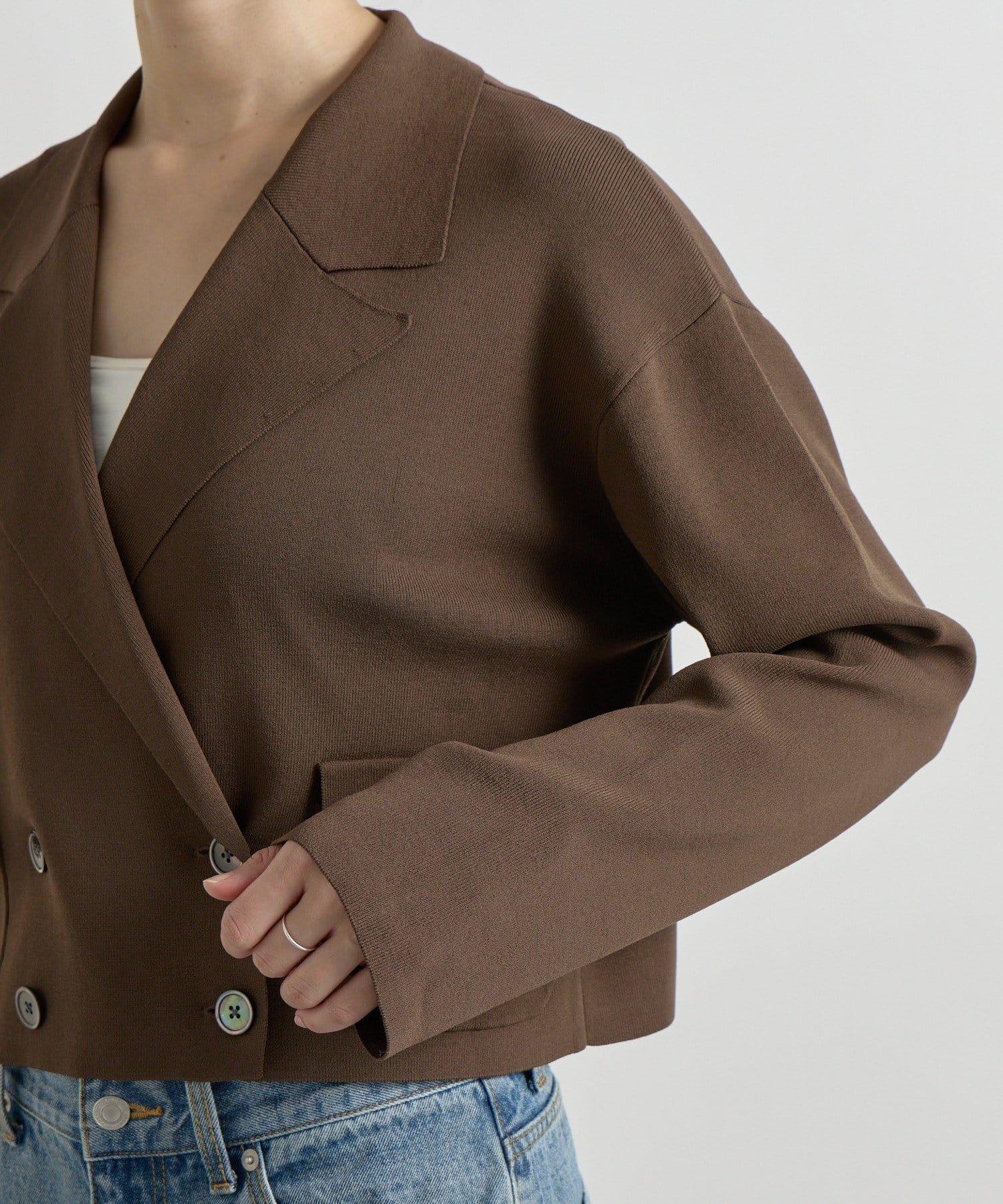 這是一款針織夾克,領口突出的設計與短款的長度達到了全新的平衡。