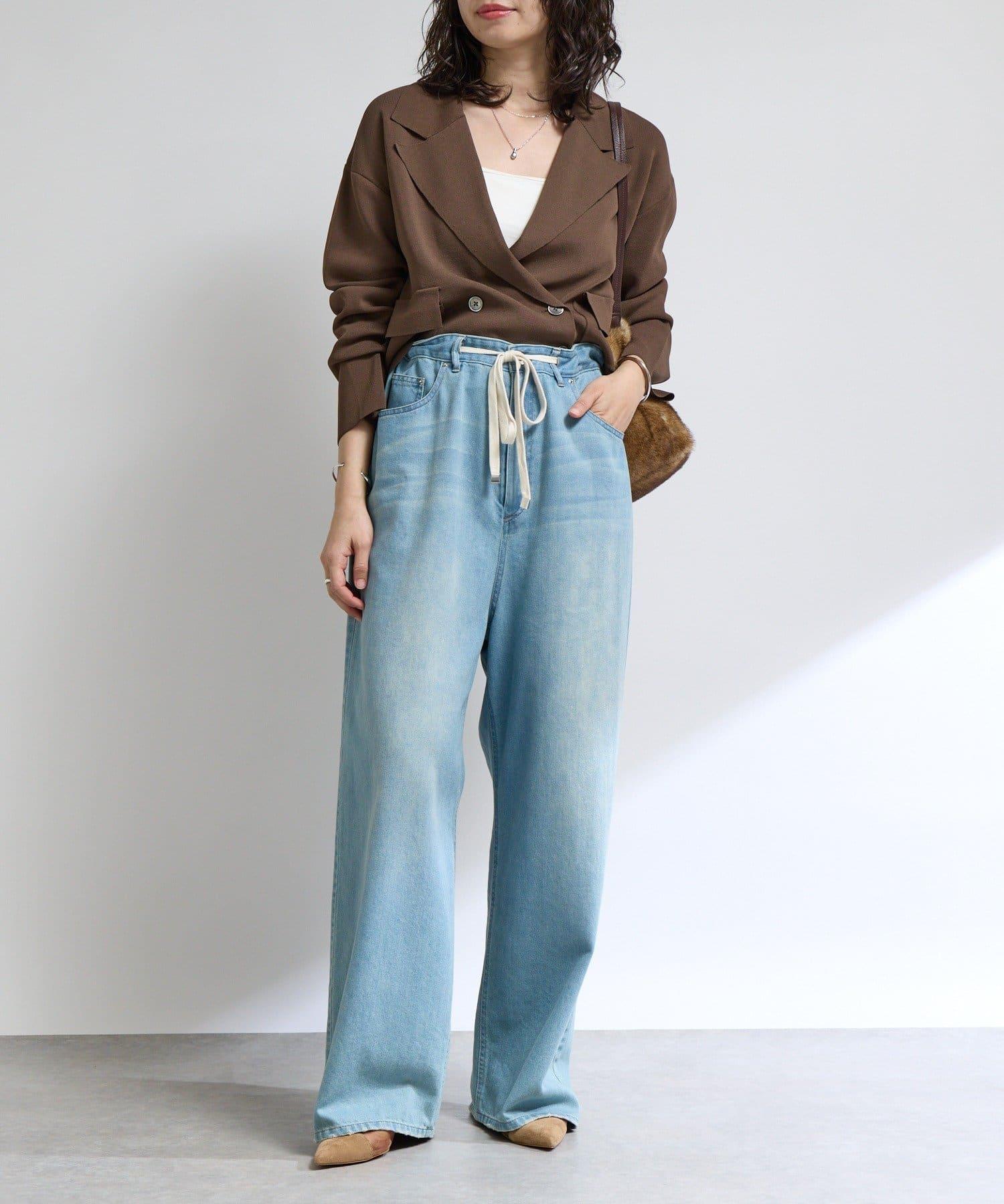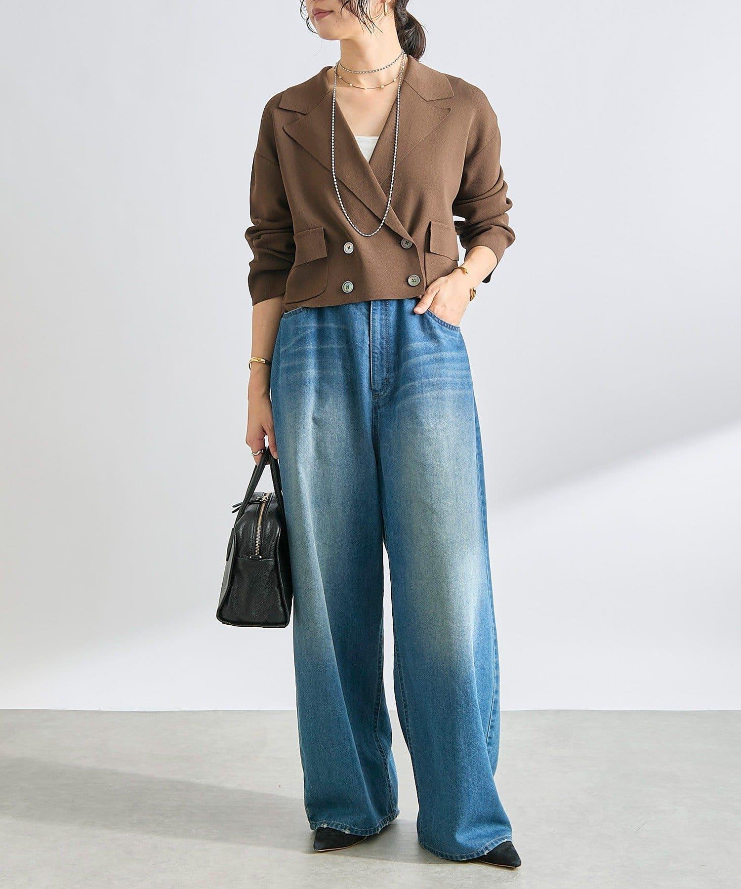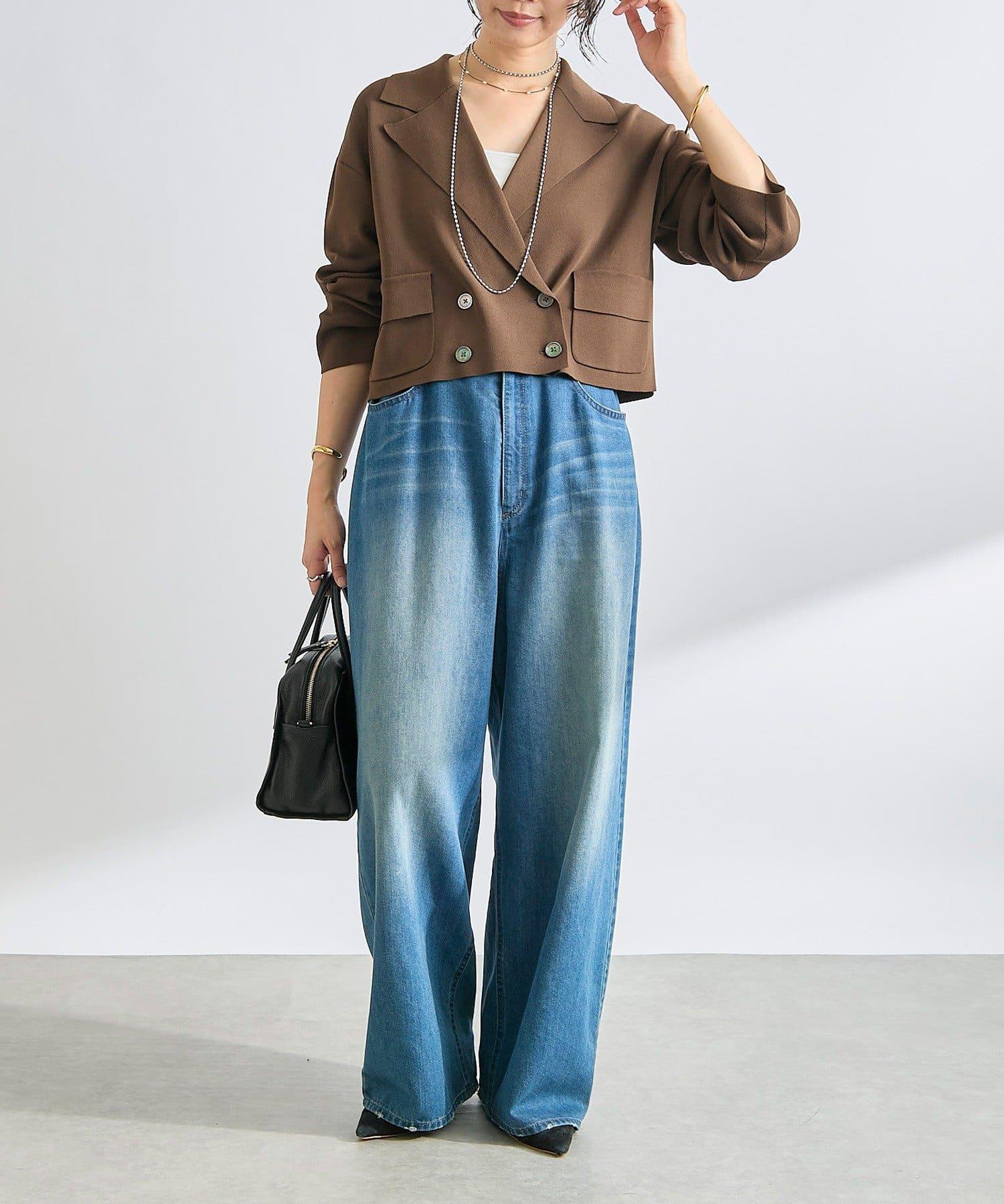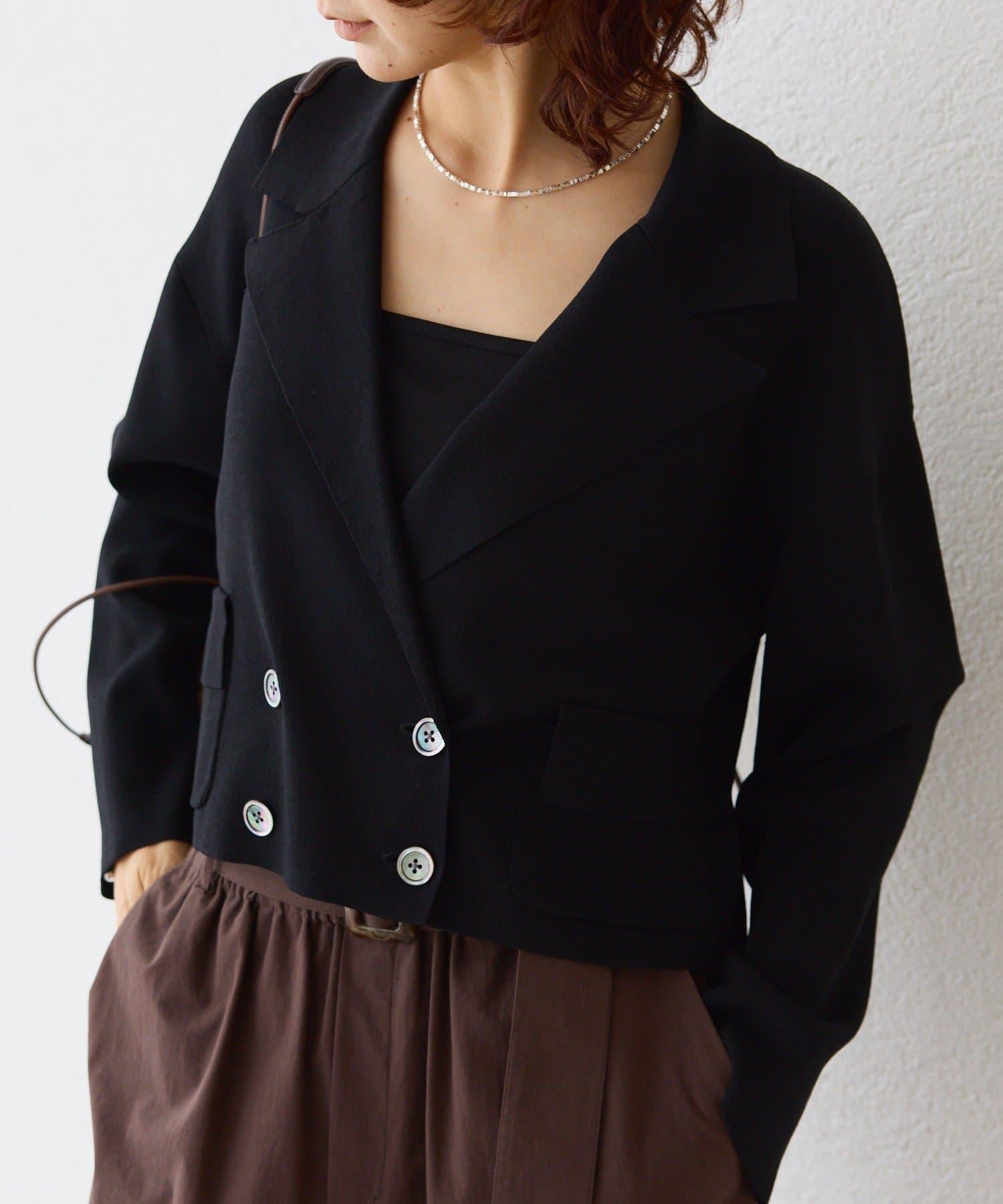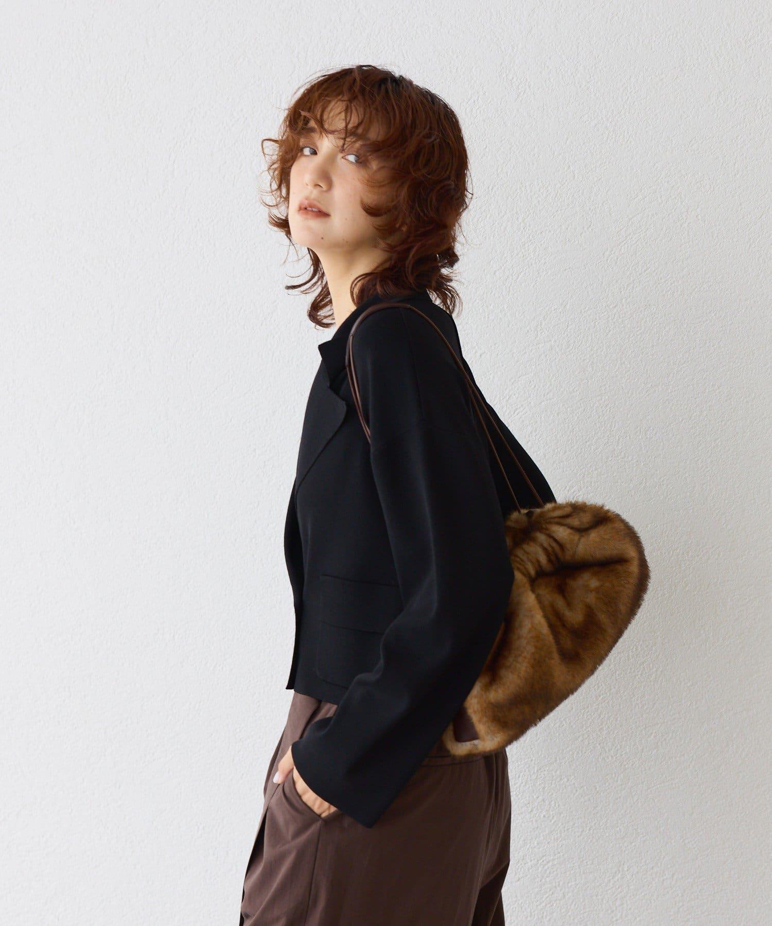 這是一款針織夾克,領口突出的設計與短款的長度達到了全新的平衡。