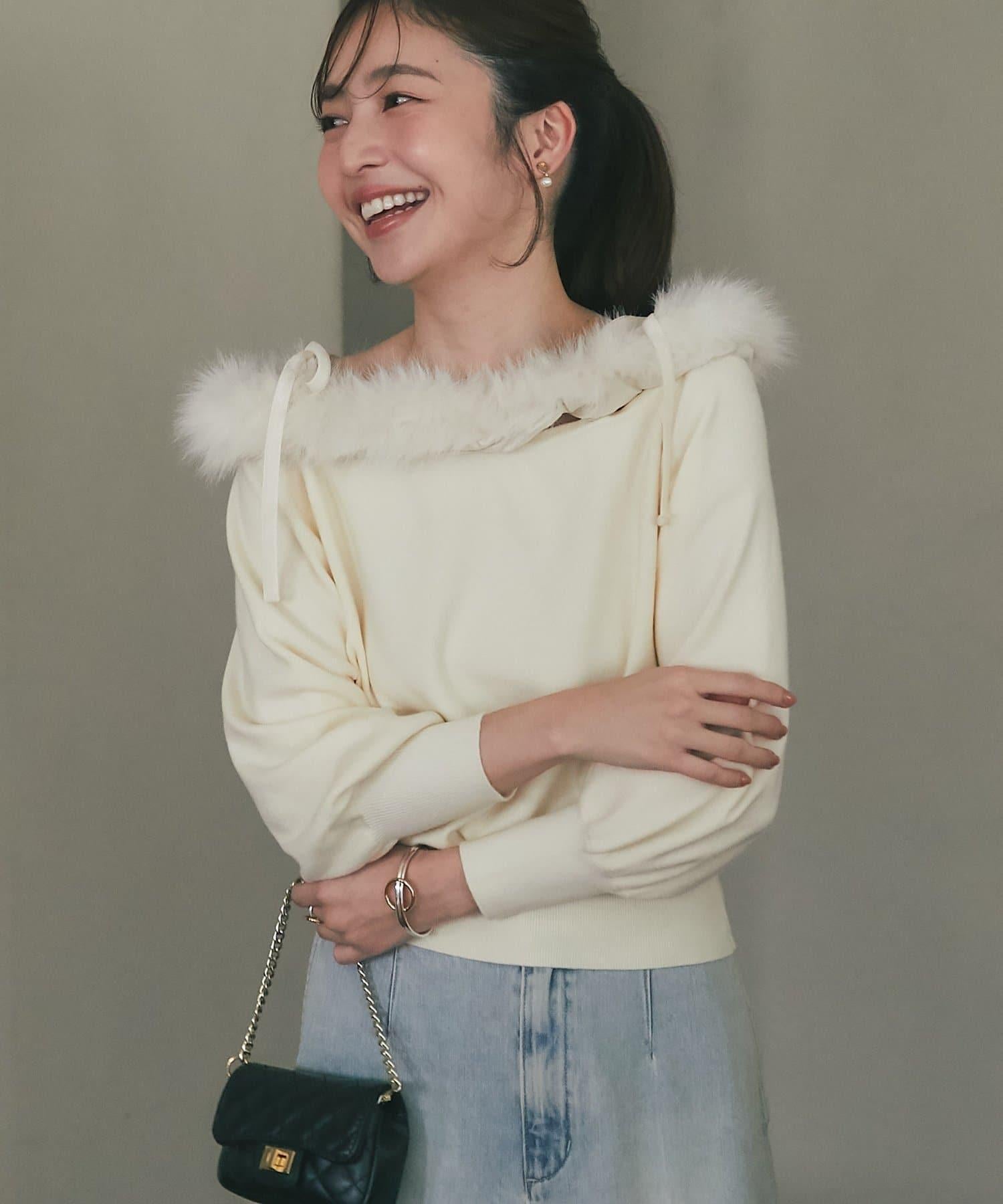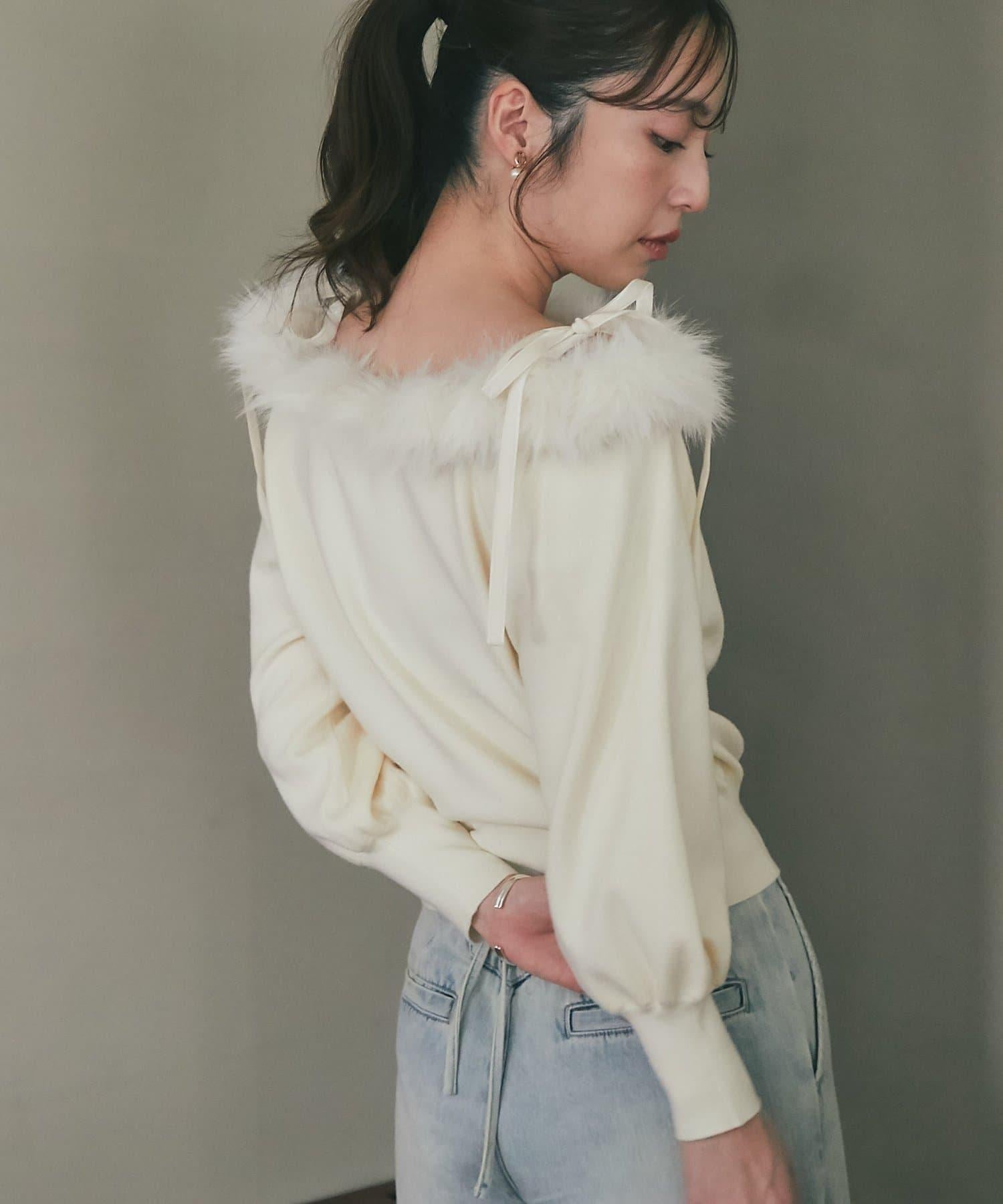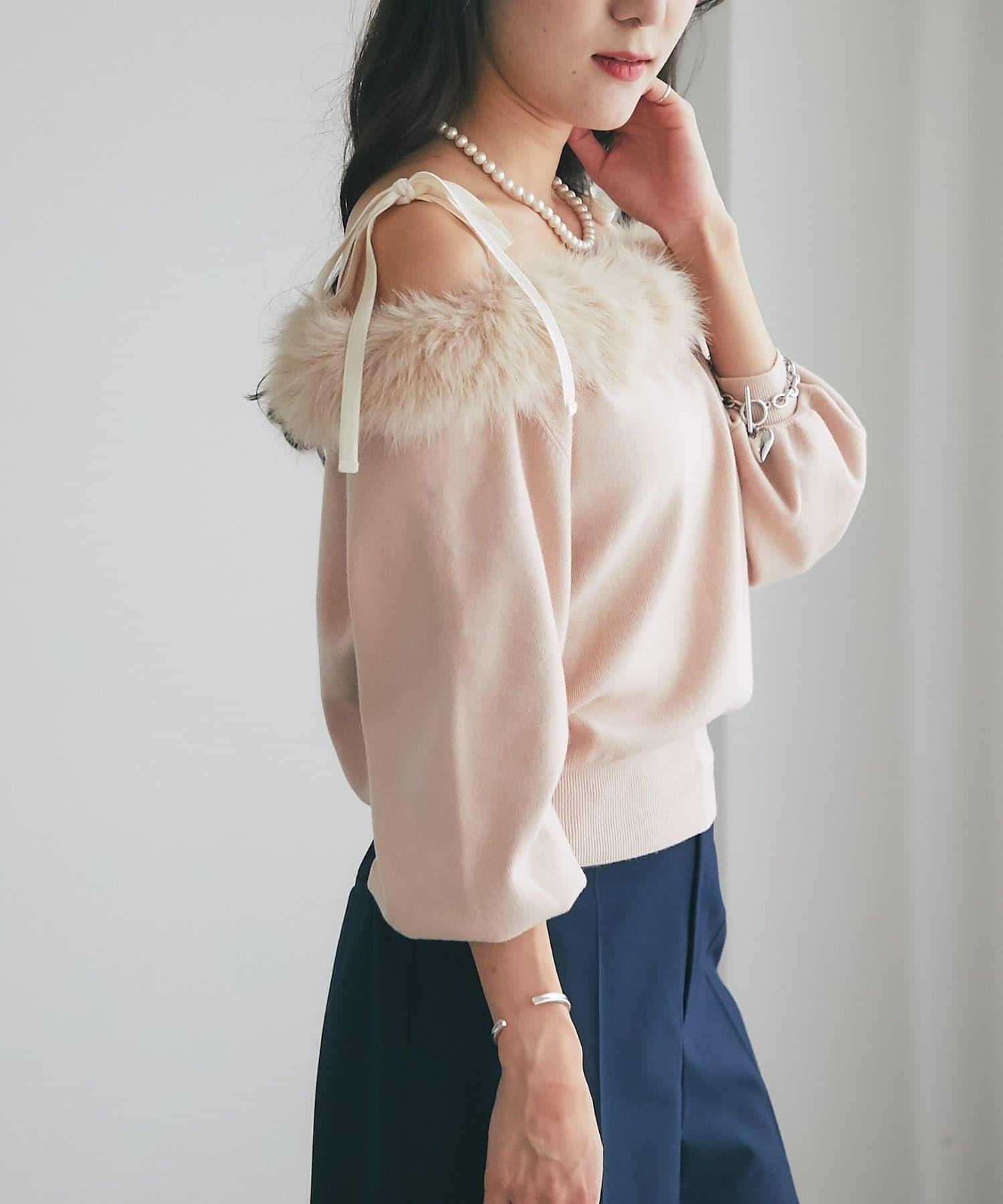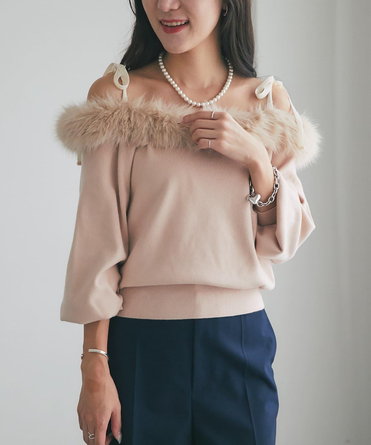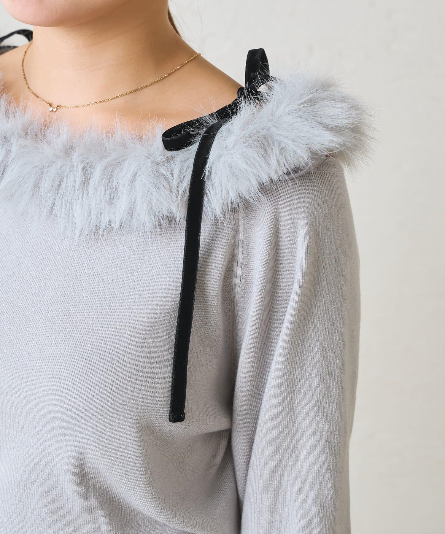 安哥拉觸感仿皮草拼接針織衫