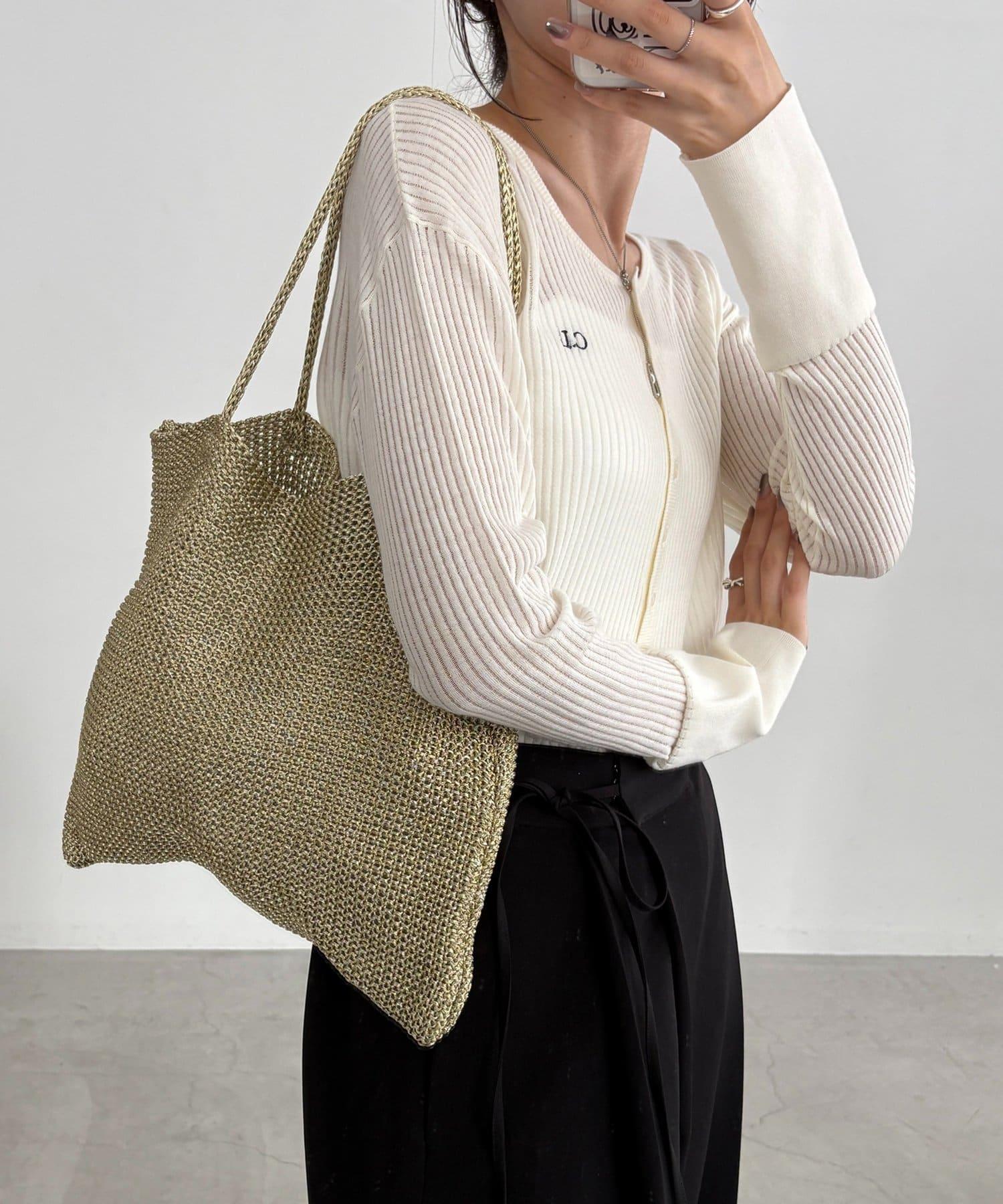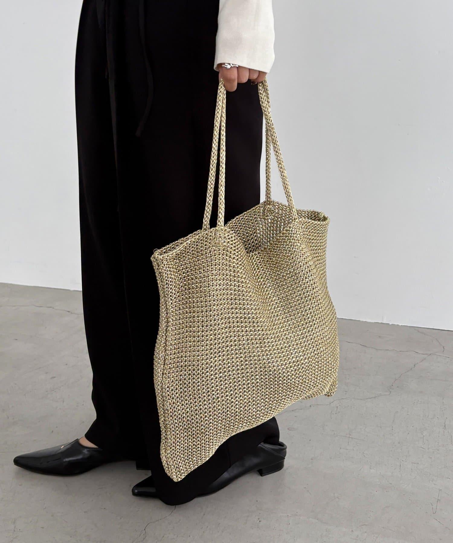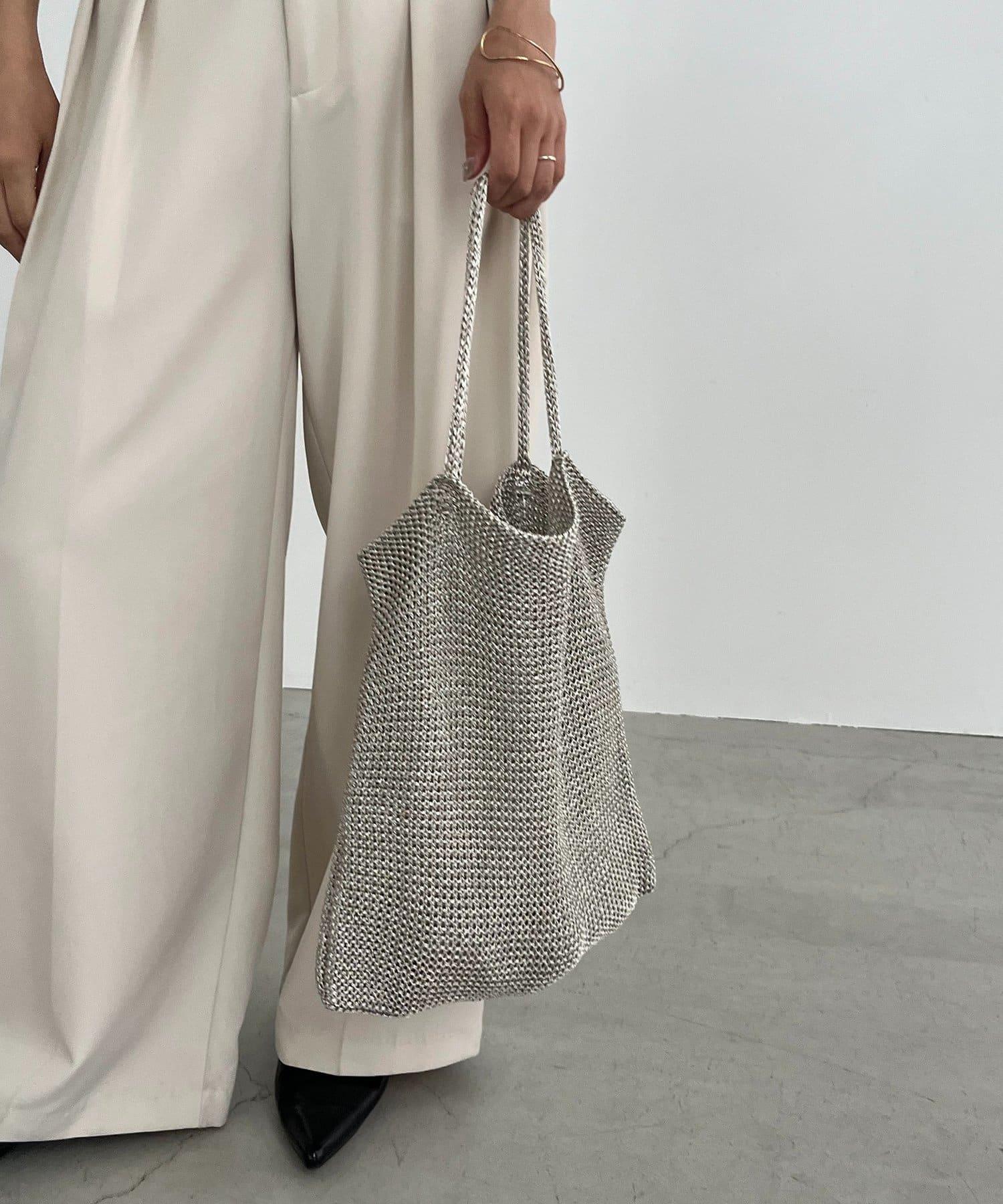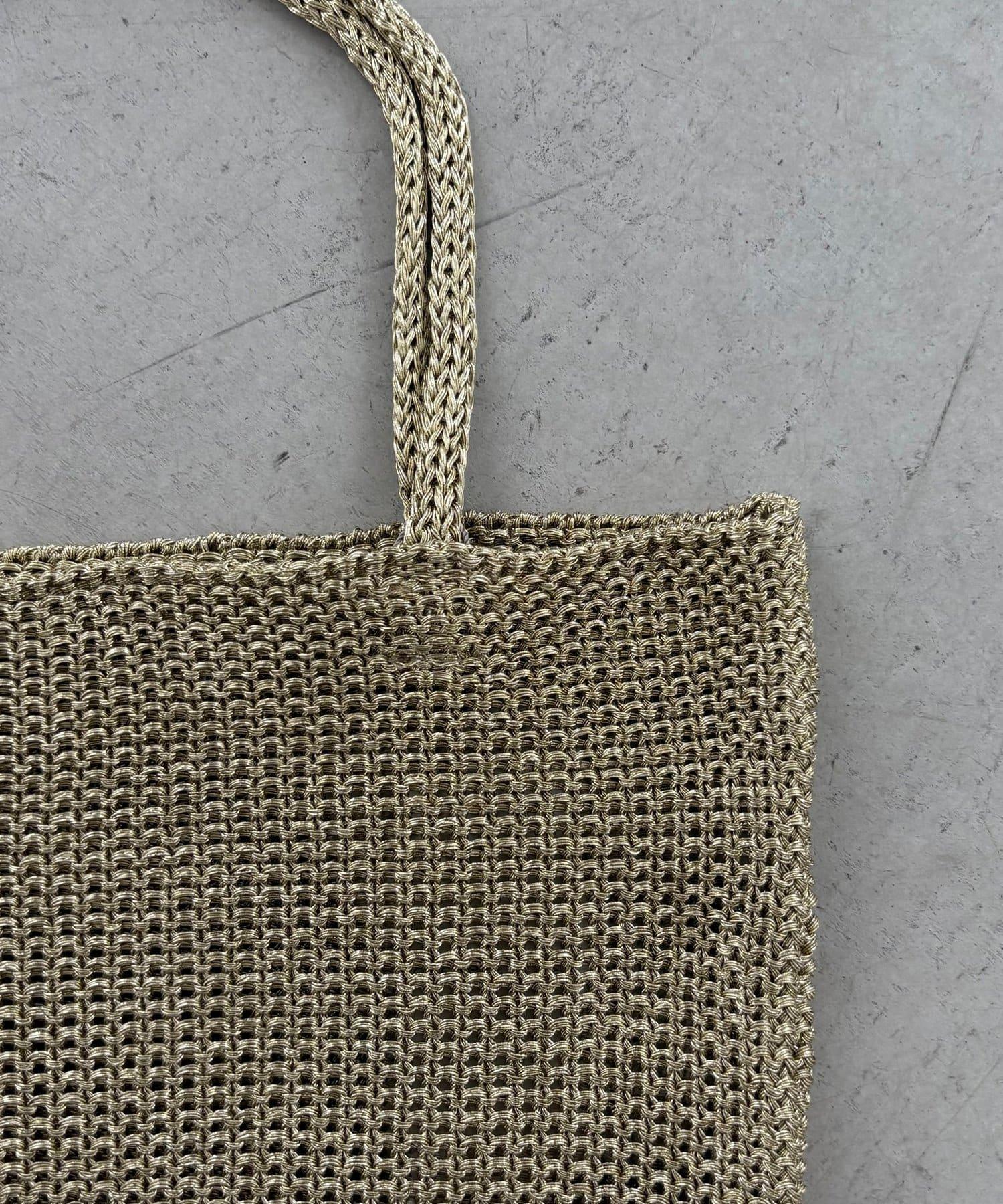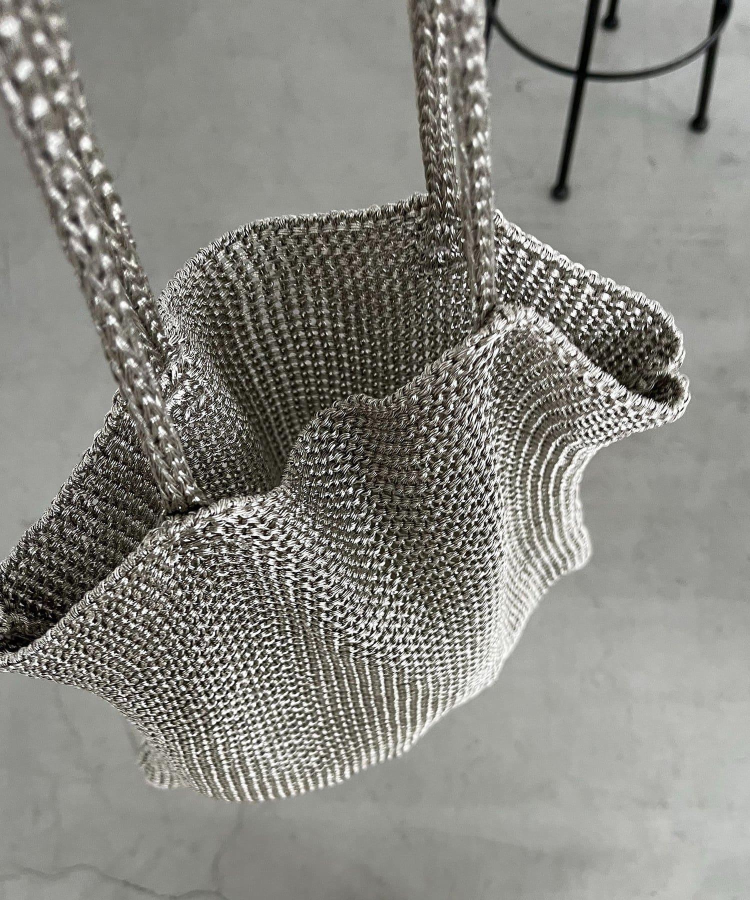 這款鉤針編織手提包採用金屬色,紗線編織成薄片,給人一種優雅閃亮的感覺,非常適合成人使用。