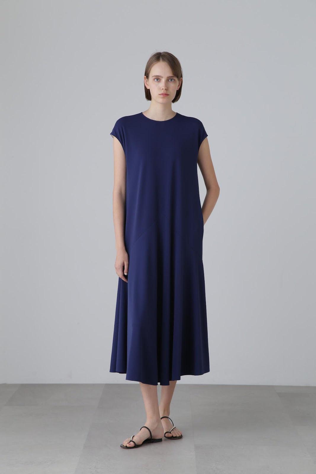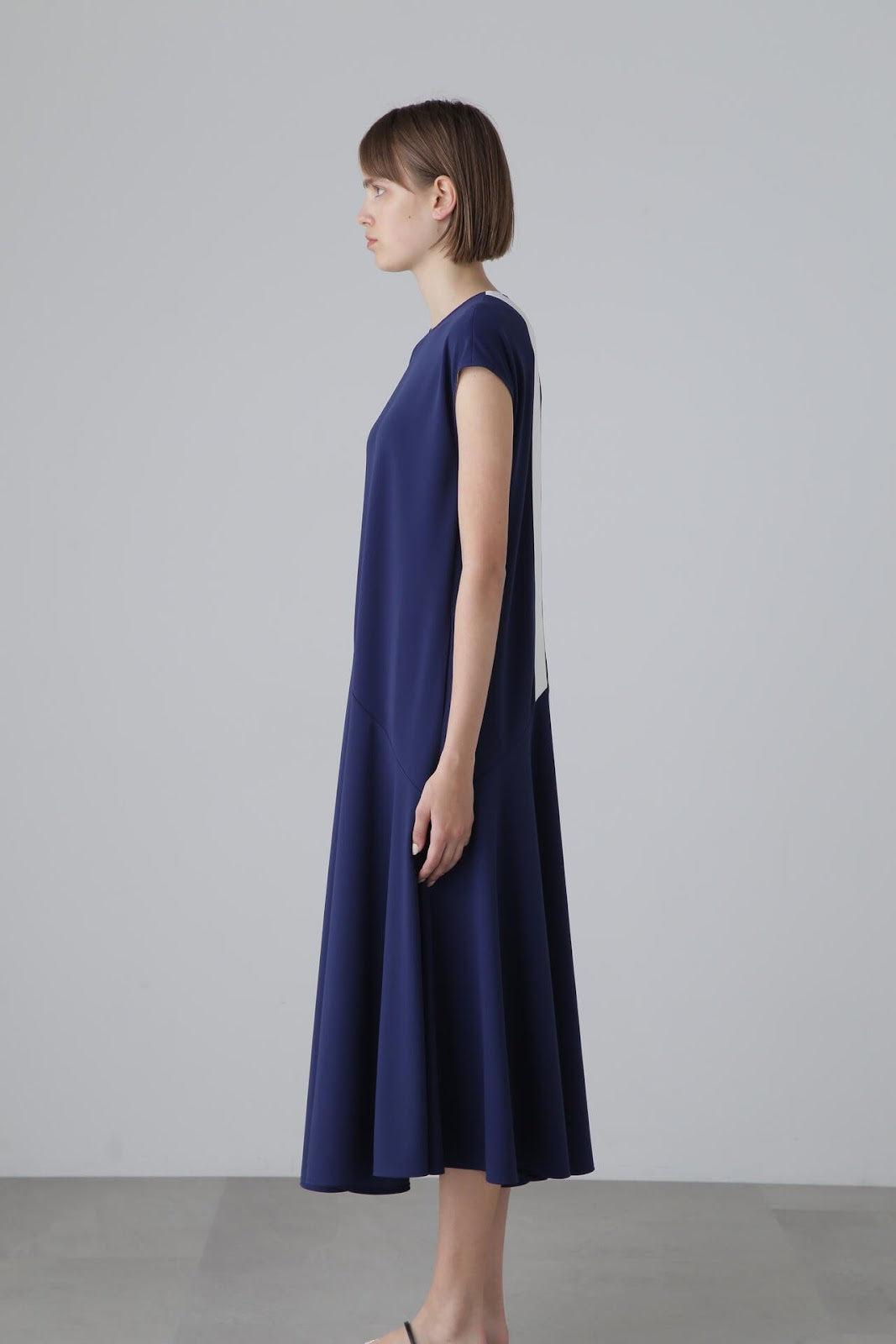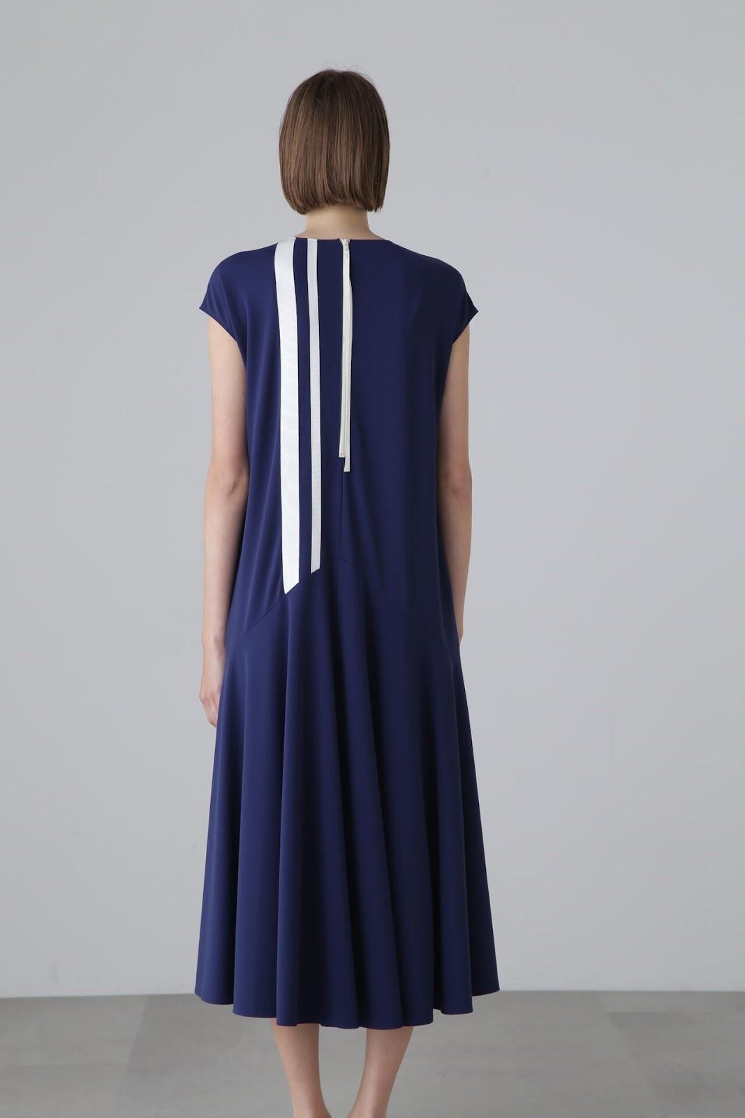 實用線條連衣裙 法式袖連衣裙,採用梭織面料剪裁縫製而成。版型略顯寬鬆,設計特點是從倒 V 形剪裁線流出的喇叭口。後部有一條特色線,與緊固件一起以彩色編碼。這款連衣裙採用輕盈柔軟的針織面料剪裁而成,質地如粉,非常柔軟。
