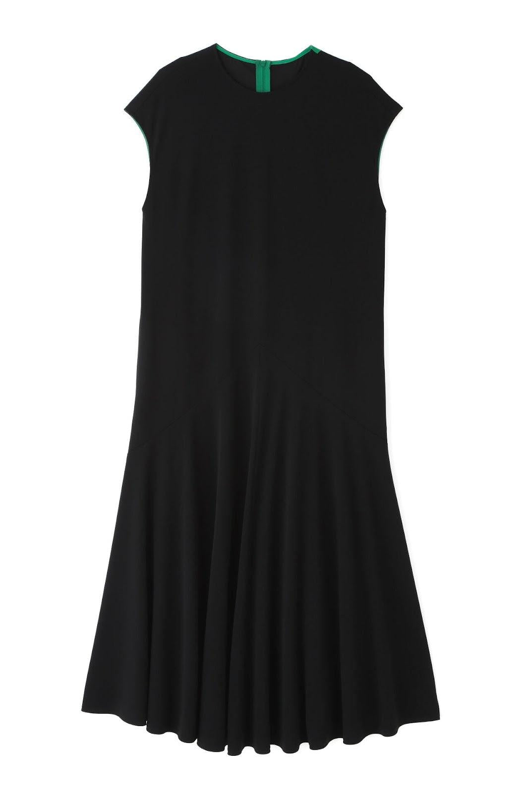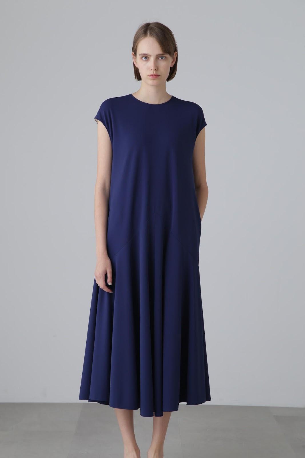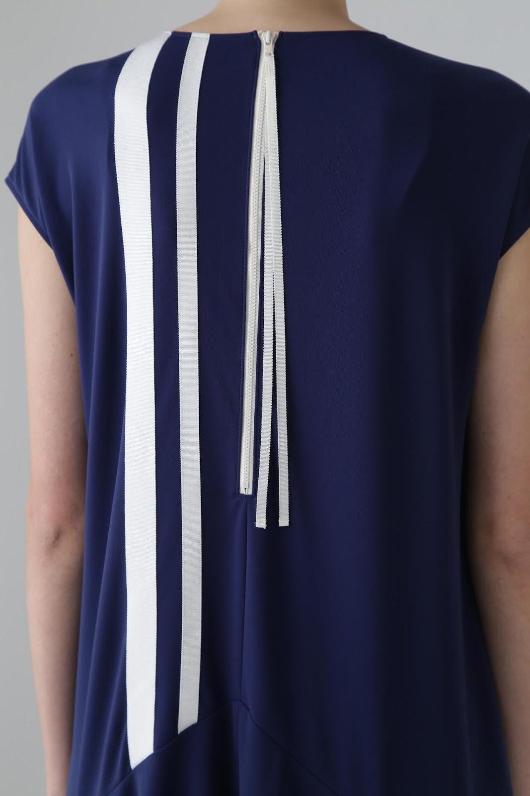 實用線條連衣裙 法式袖連衣裙,採用梭織面料剪裁縫製而成。版型略顯寬鬆,設計特點是從倒 V 形剪裁線流出的喇叭口。後部有一條特色線,與緊固件一起以彩色編碼。這款連衣裙採用輕盈柔軟的針織面料剪裁而成,質地如粉,非常柔軟。