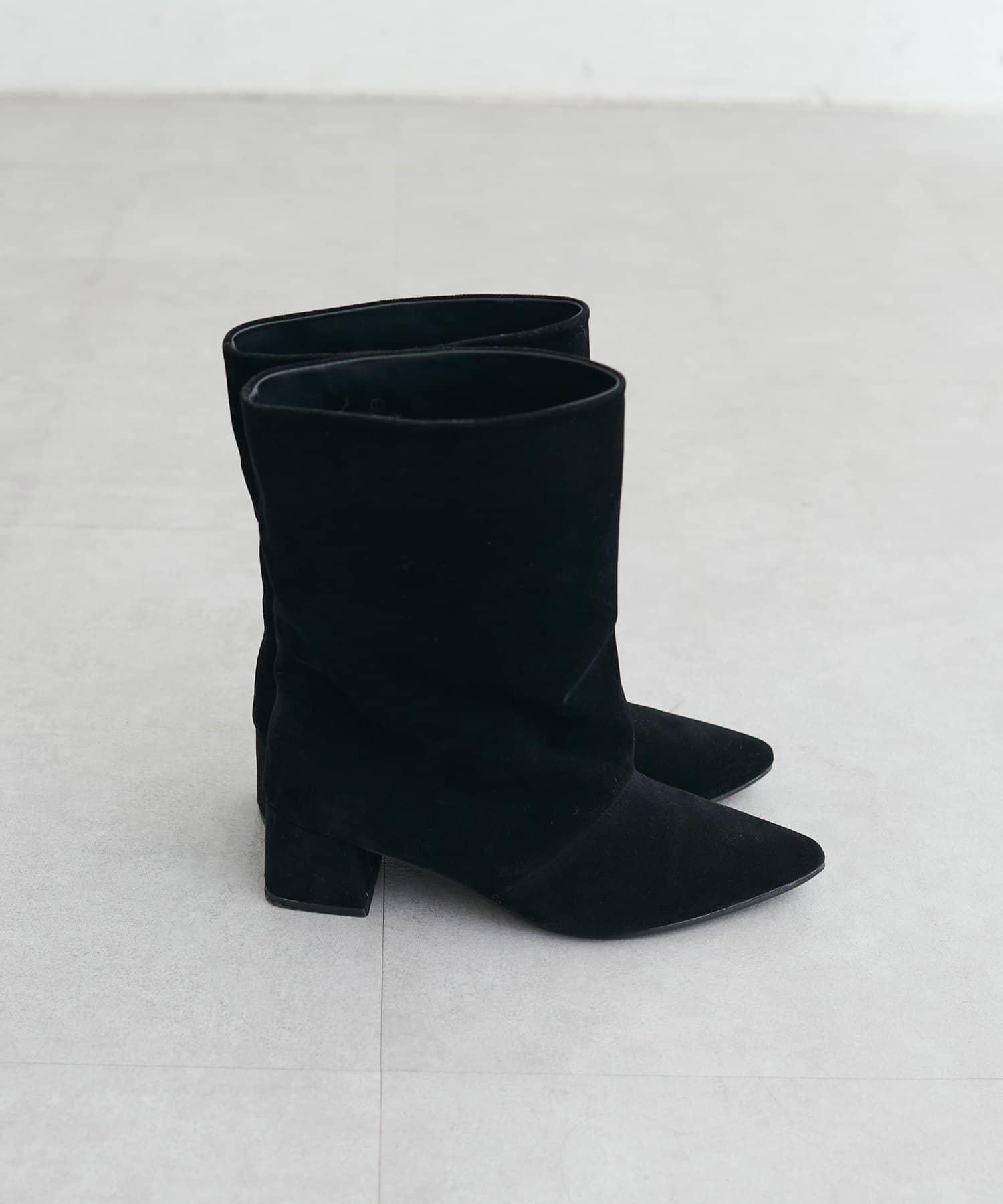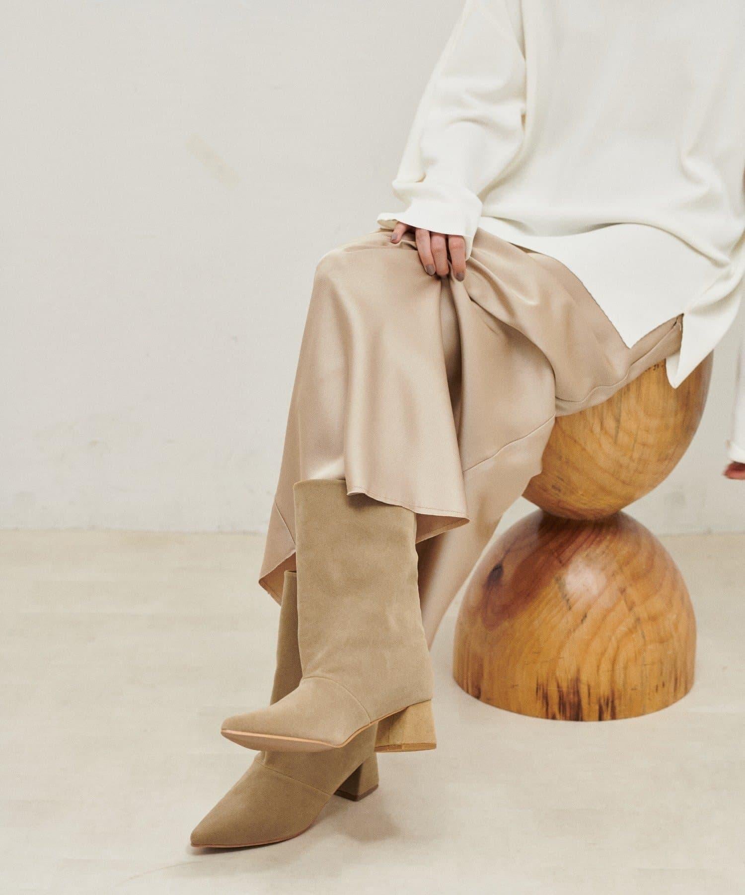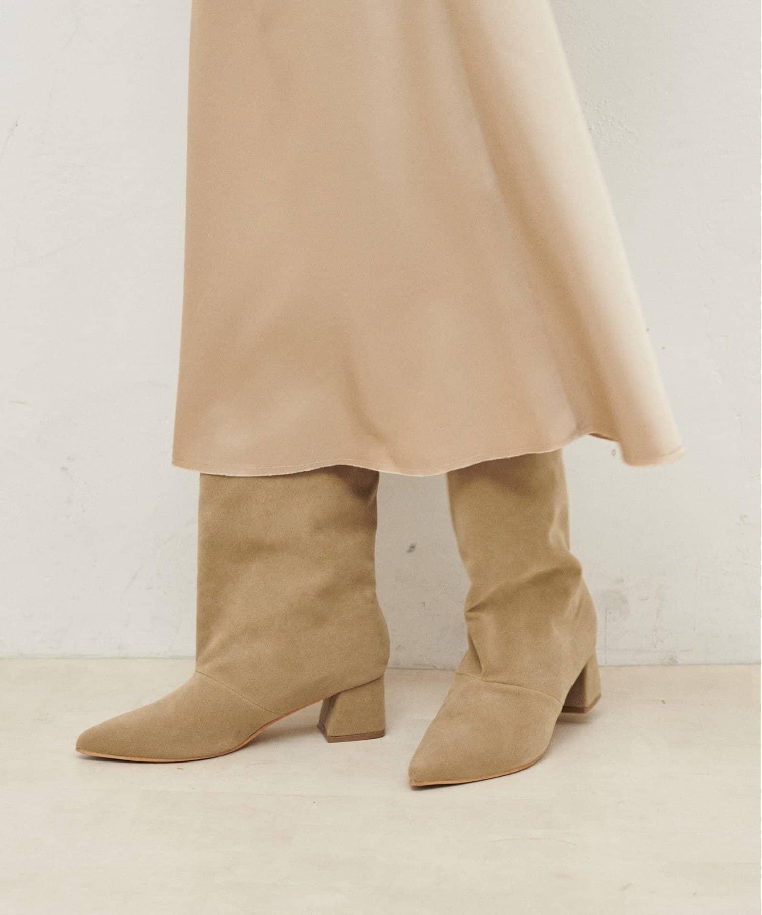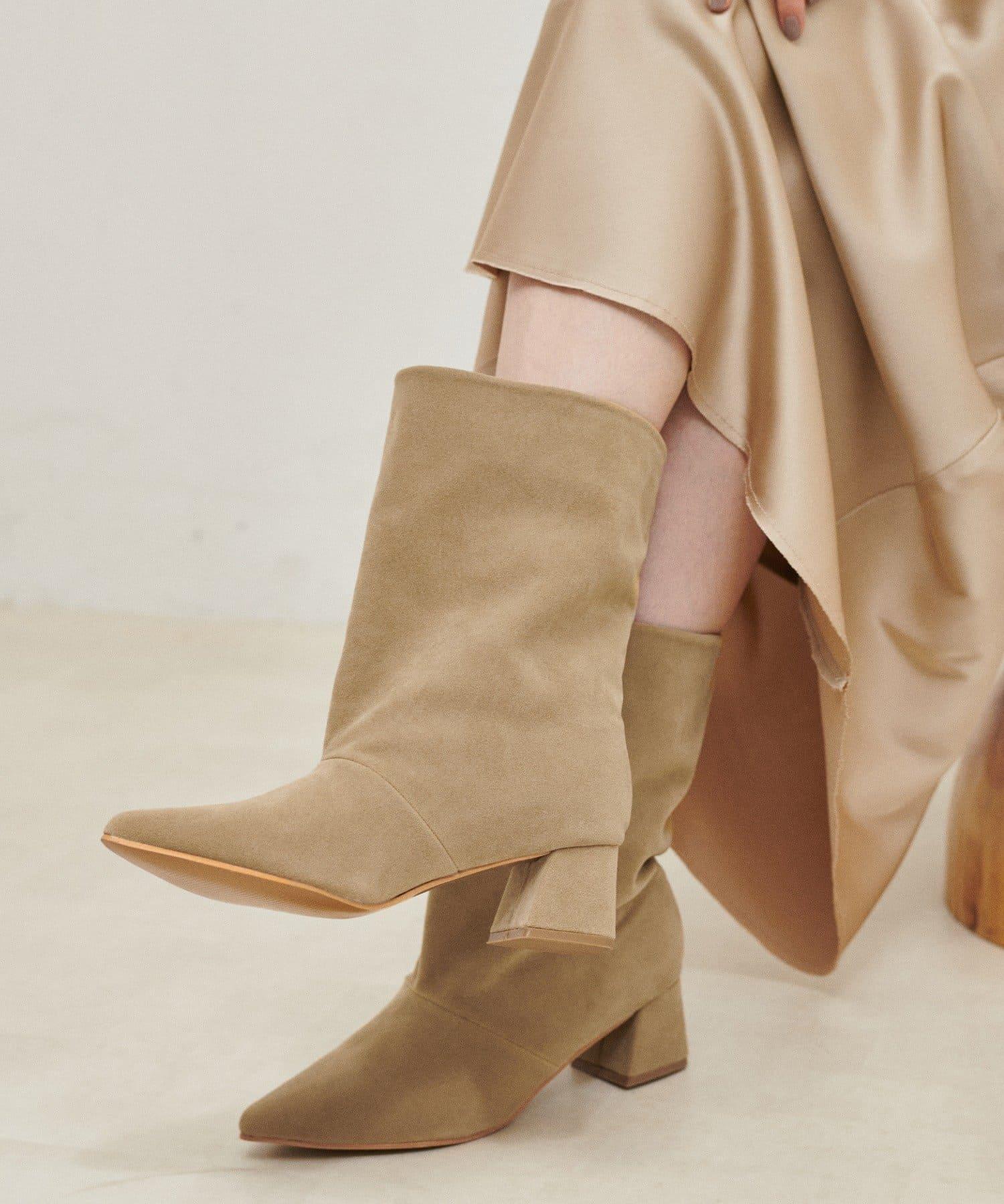 這款中筒靴採用寬筒設計,為腳部增添了慵懶感。