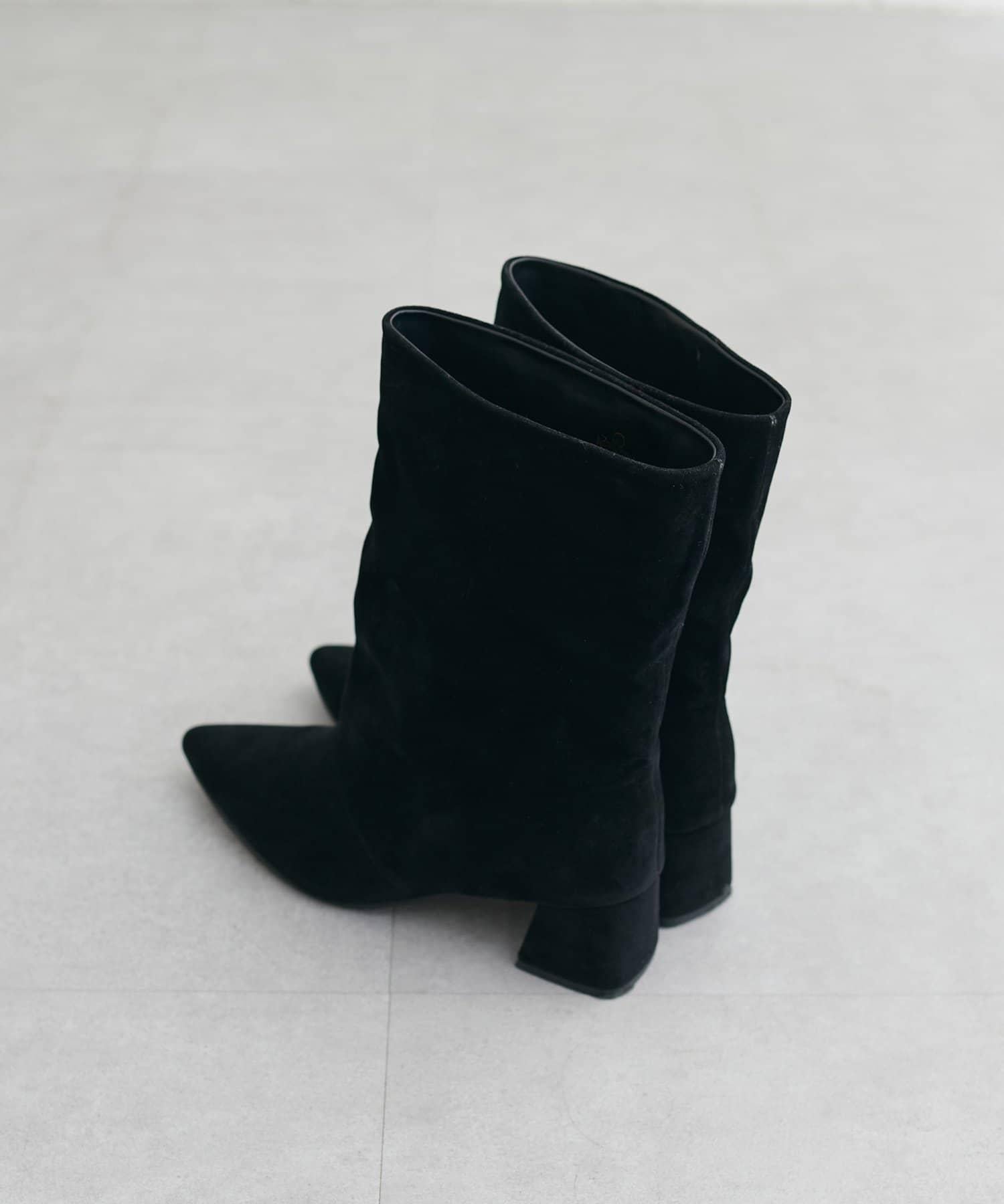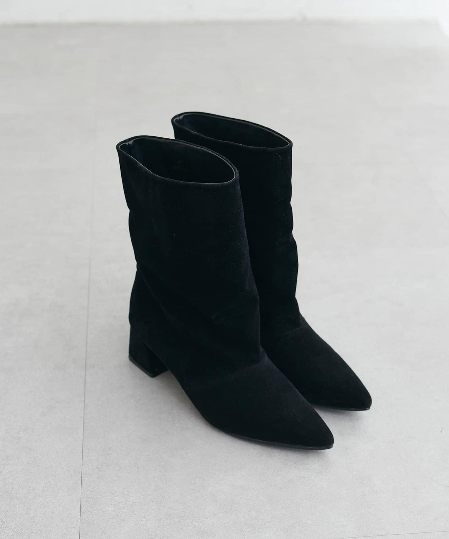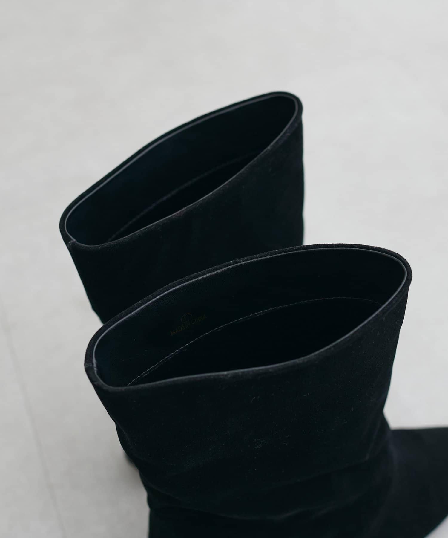 這款中筒靴採用寬筒設計,為腳部增添了慵懶感。