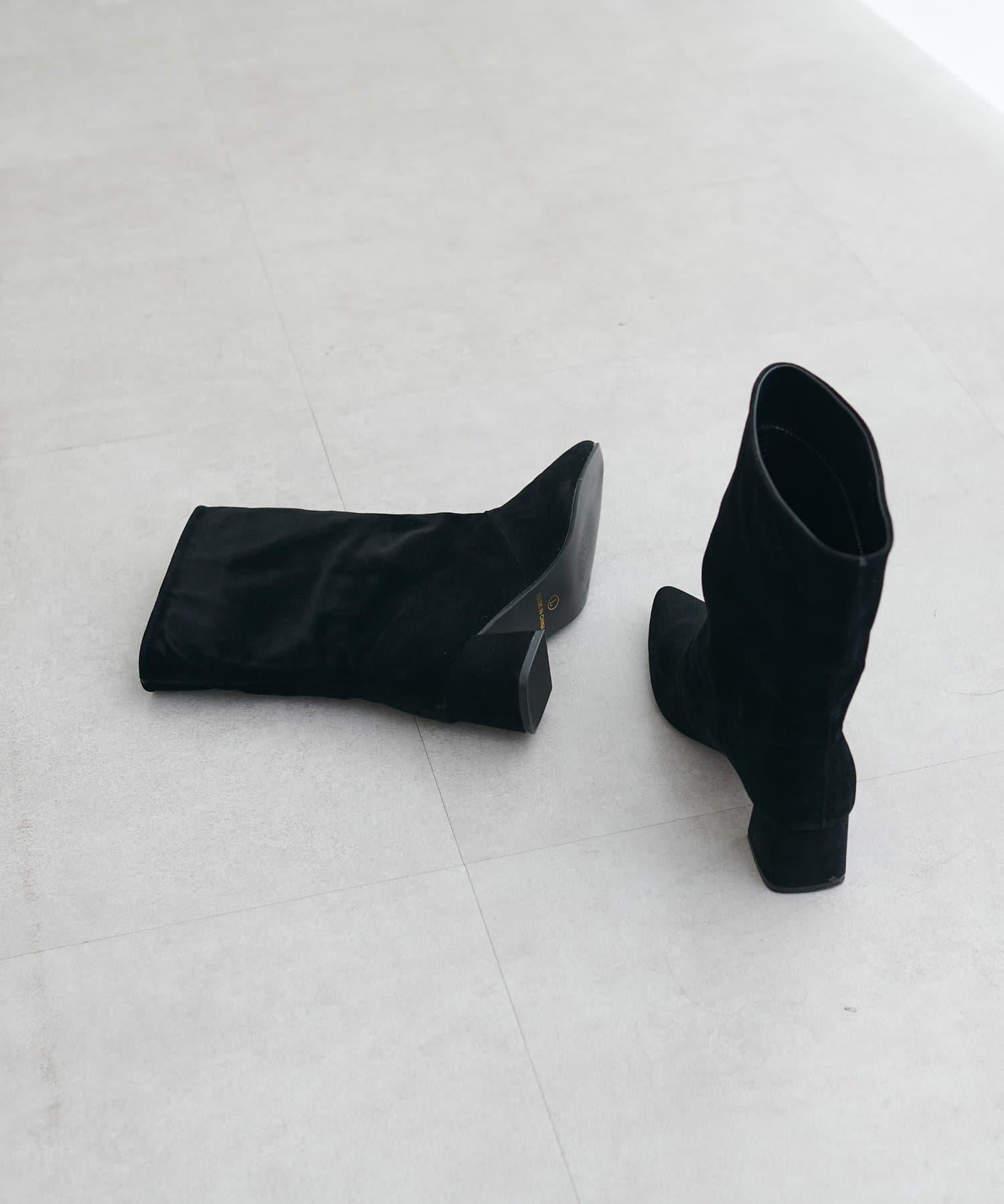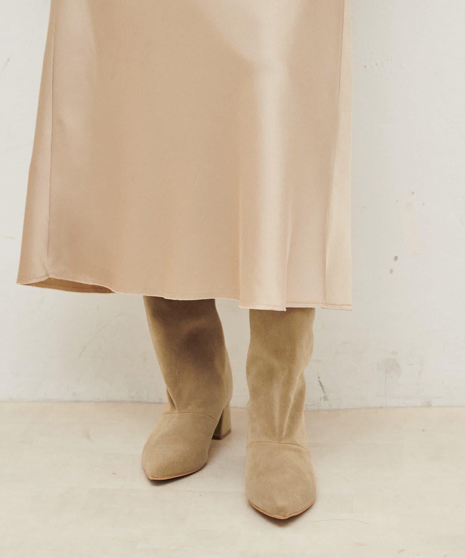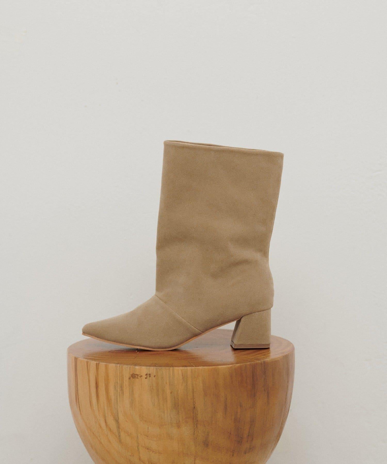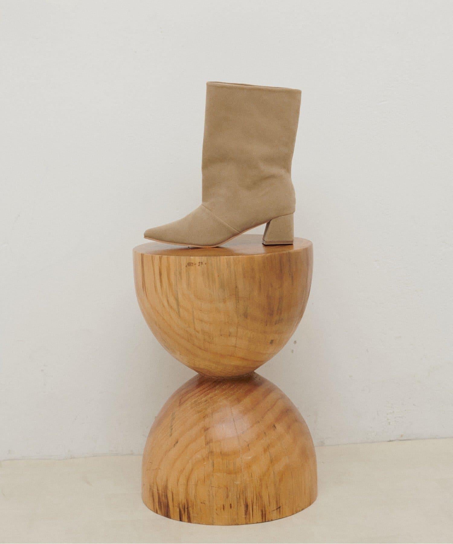這款中筒靴採用寬筒設計,為腳部增添了慵懶感。