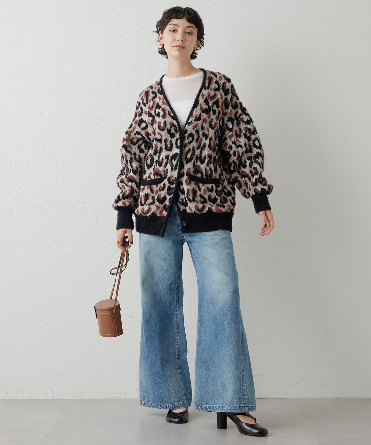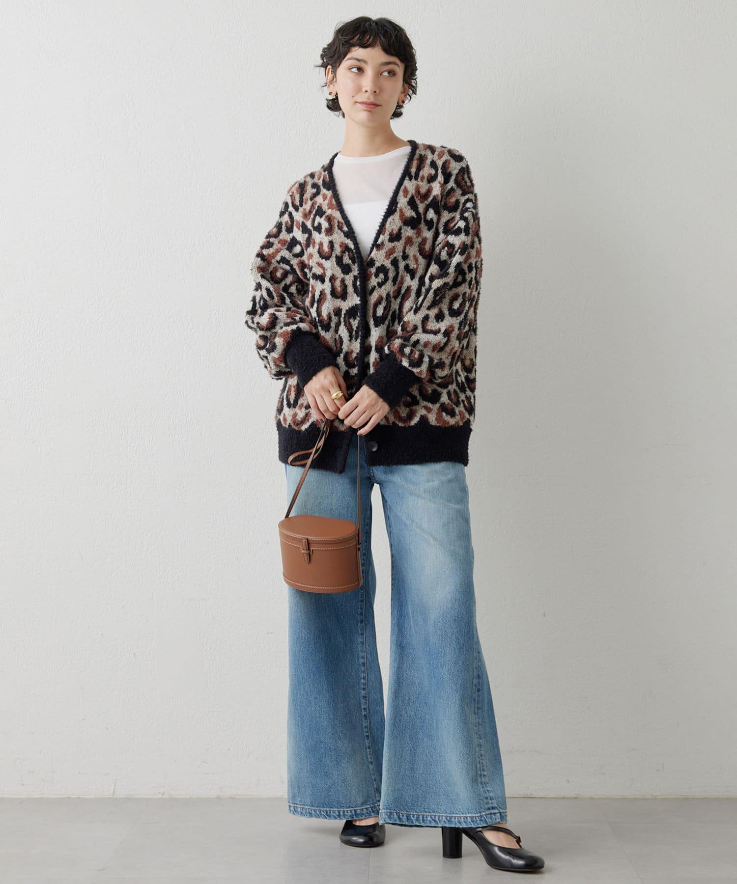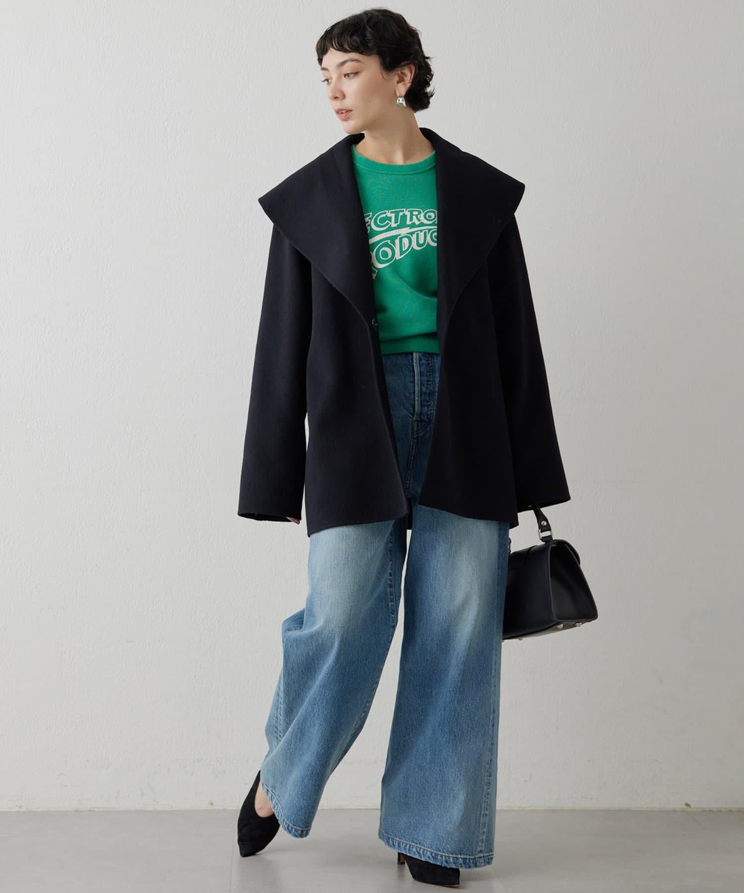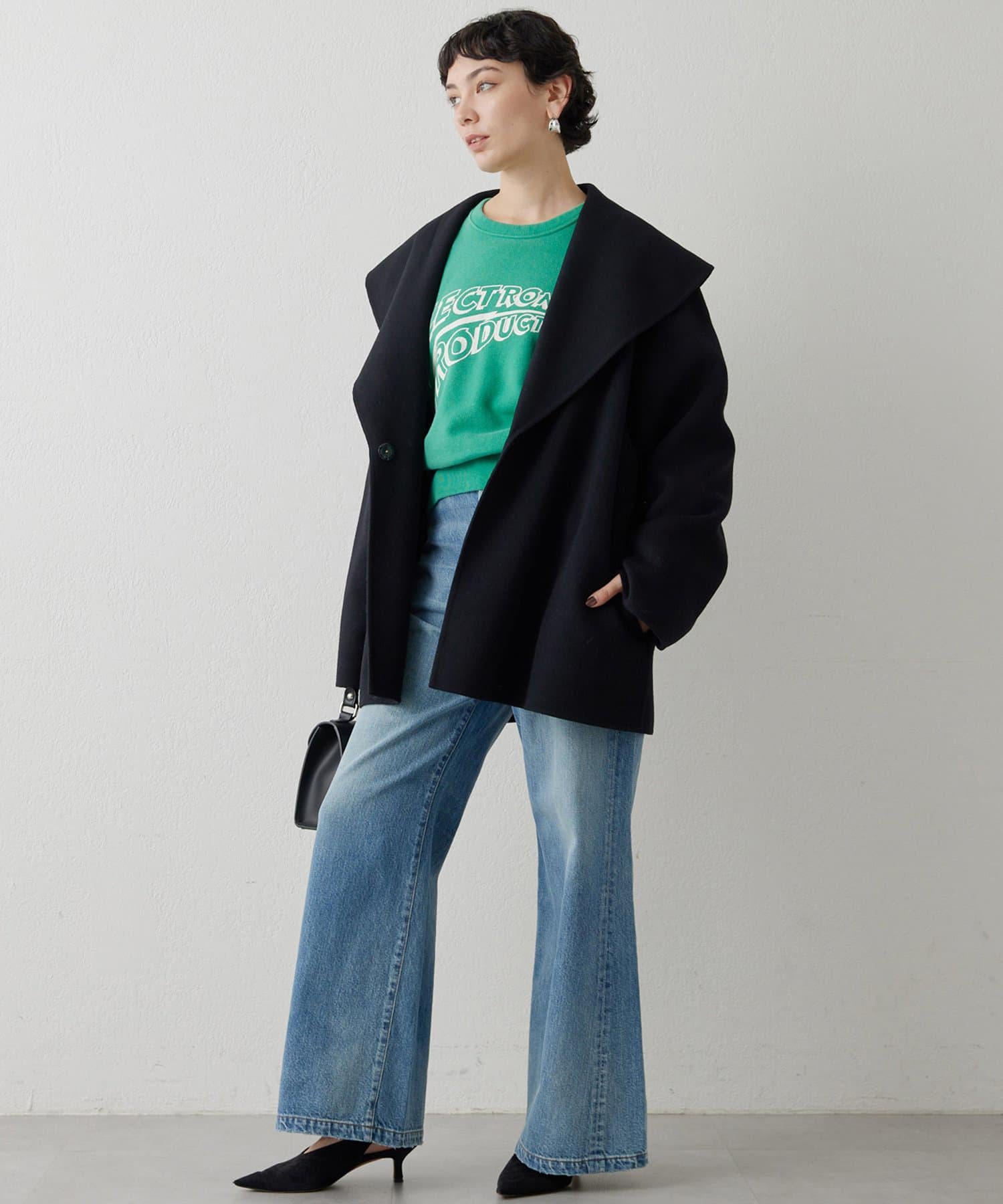 具有復古風格的寬喇叭牛仔長褲。