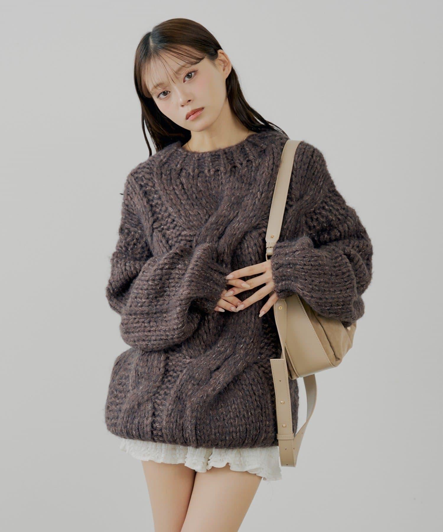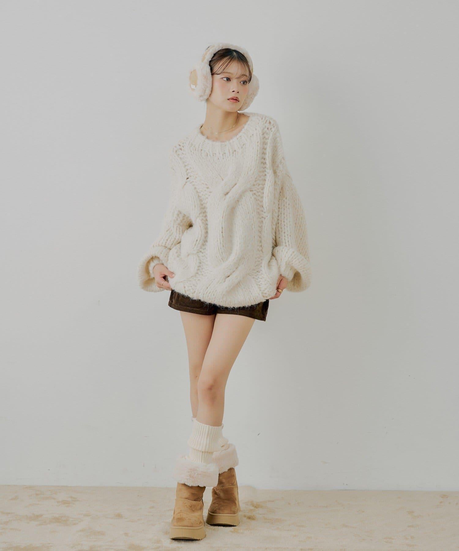 預約商品寬鬆大廓形麻花針織迷你連衣裙
