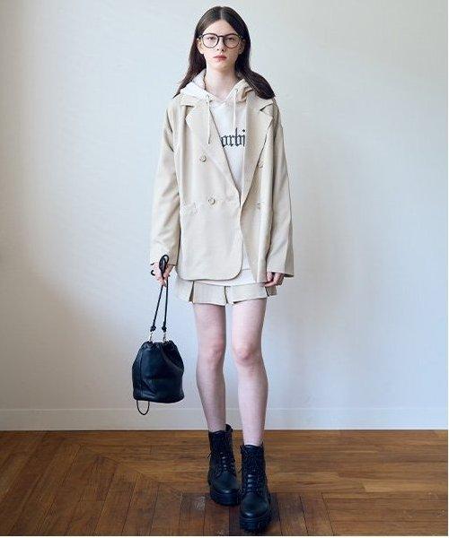 成人化的可愛設計,大廓形。蘇格蘭鈕釦突出了造型感,既可隨意穿著,也可整齊穿著。袖子周圍也很寬鬆,因此厚的派克大衣和針織衫都能輕鬆穿脫。