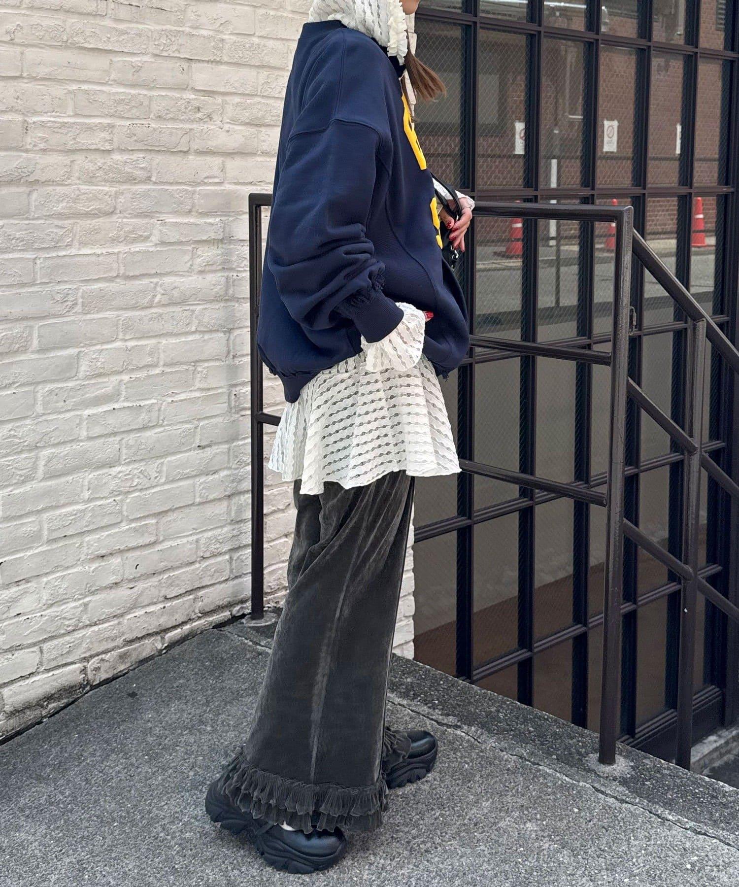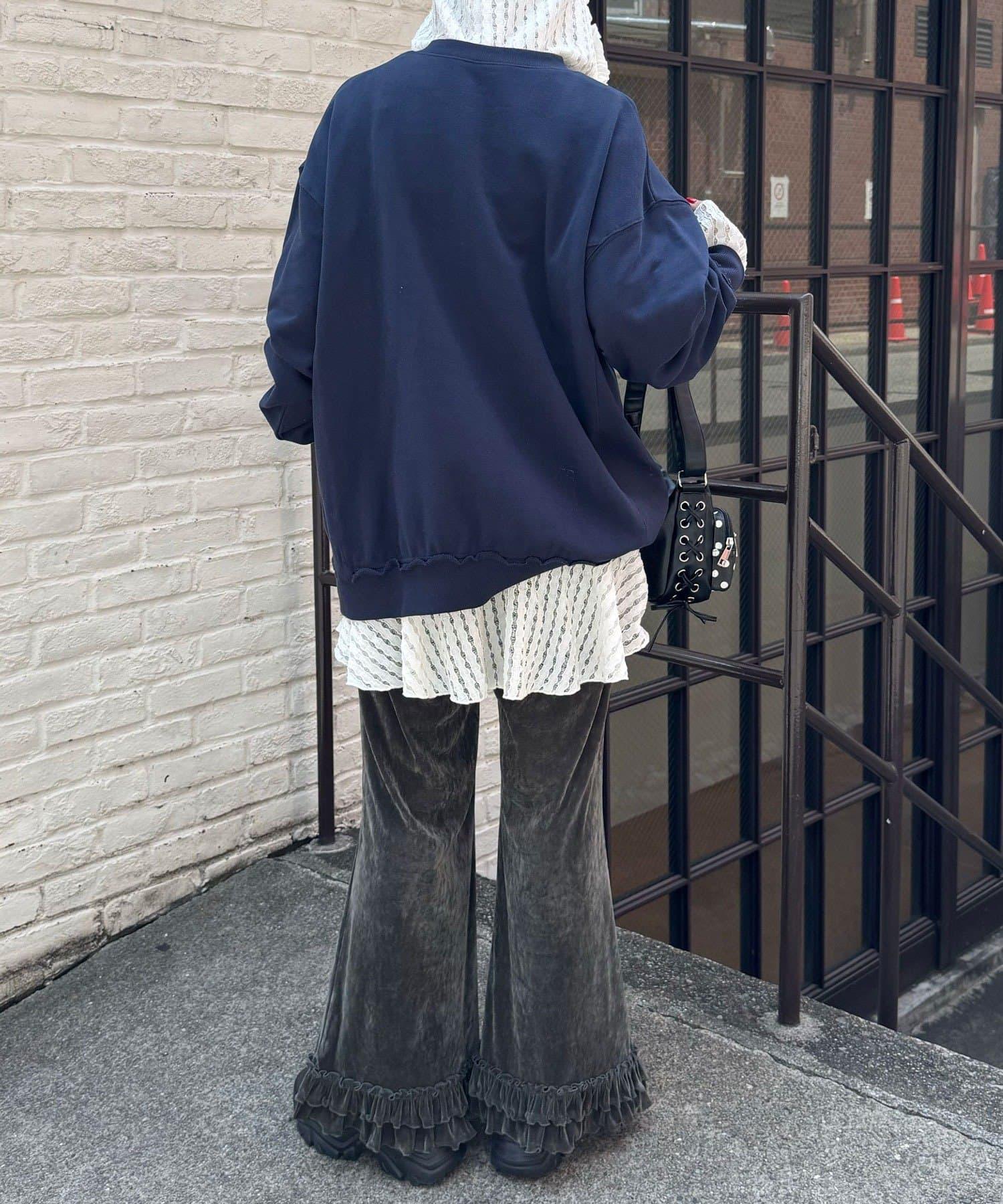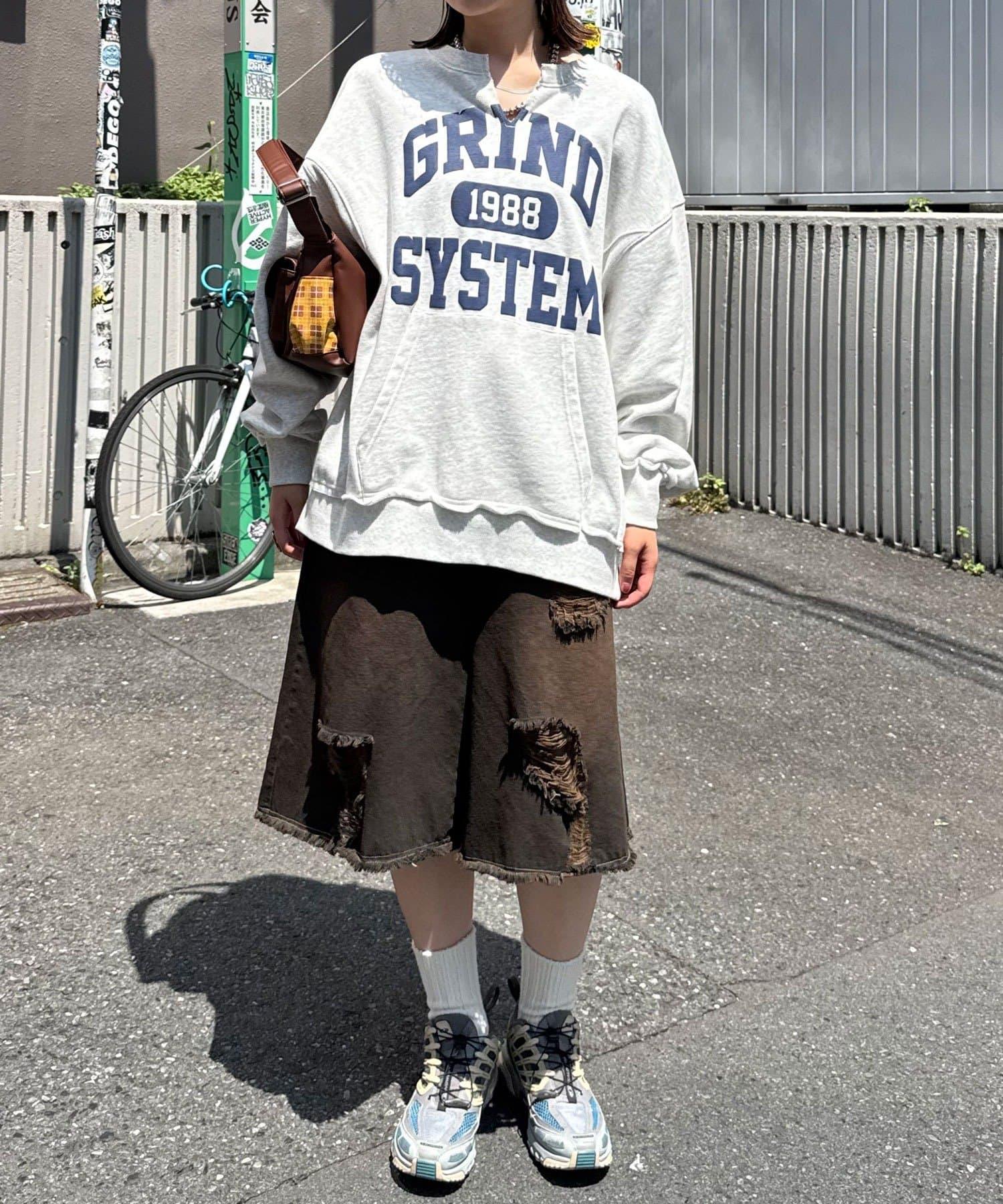 學院風徽標衛衣,廓形寬大,可寬鬆穿著,採用船長設計,增添休閒感。