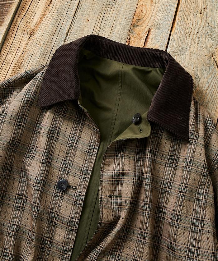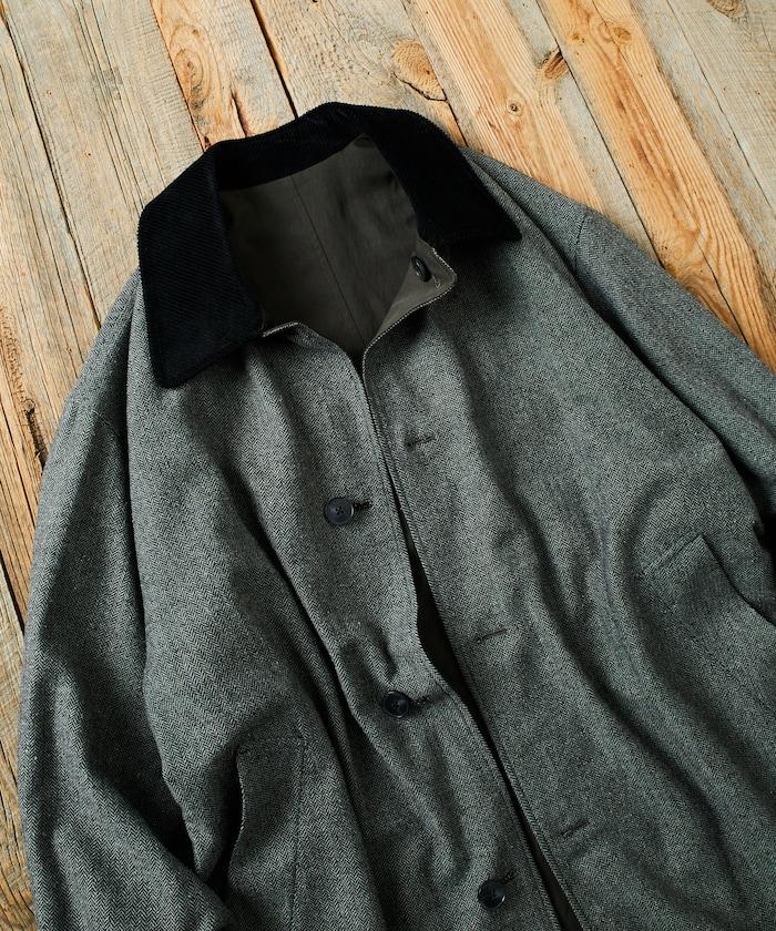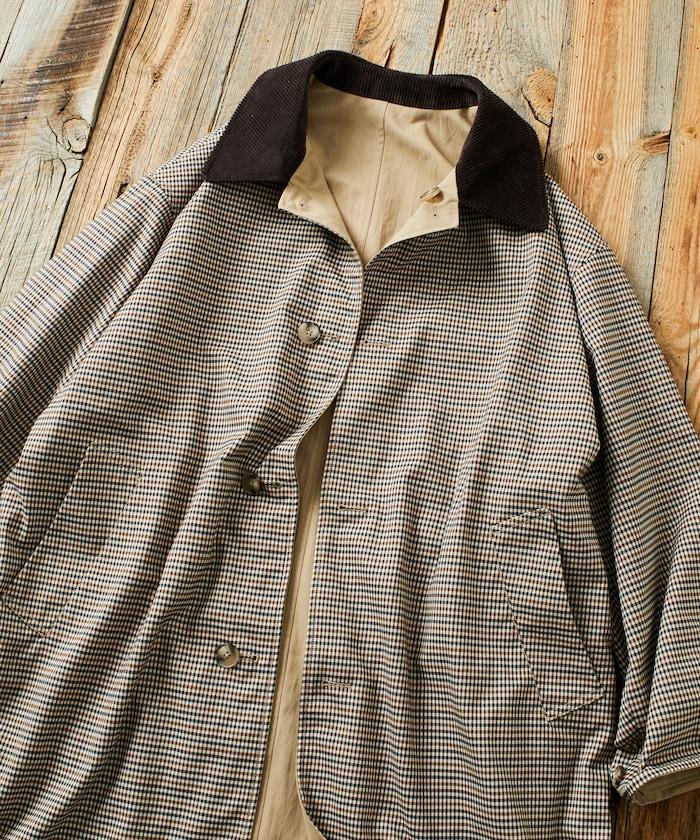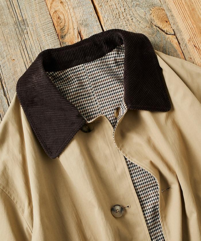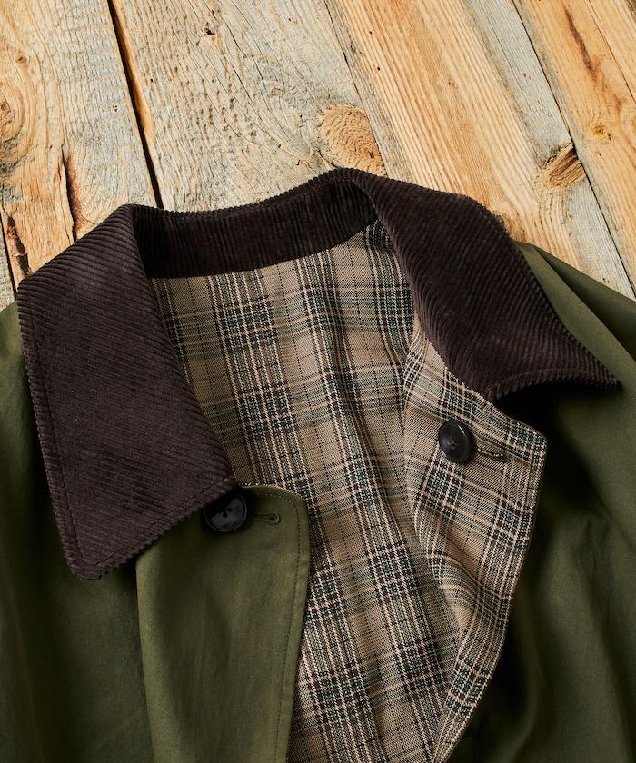 領子採用燈芯絨面料,給人沉穩的印象。