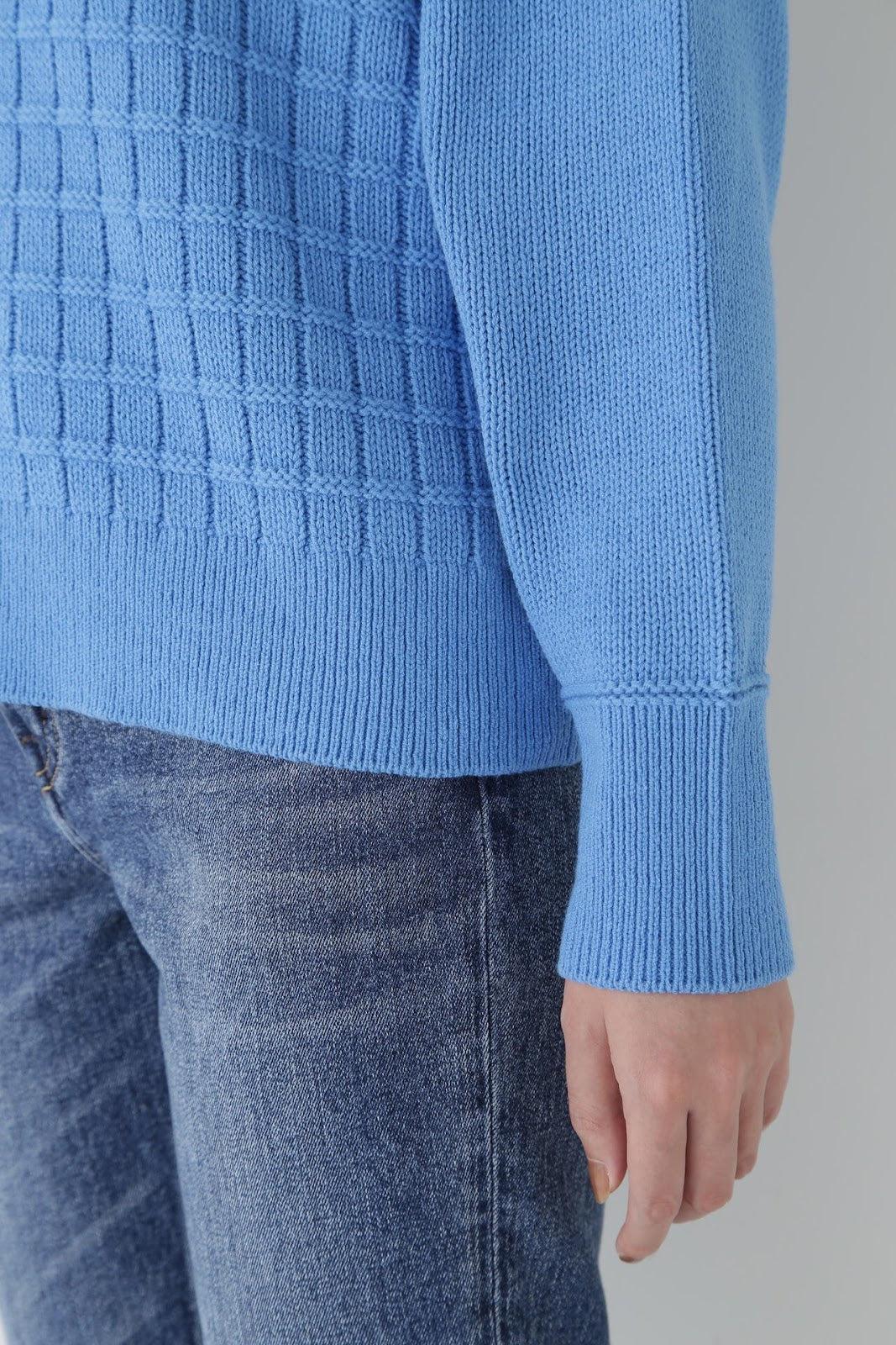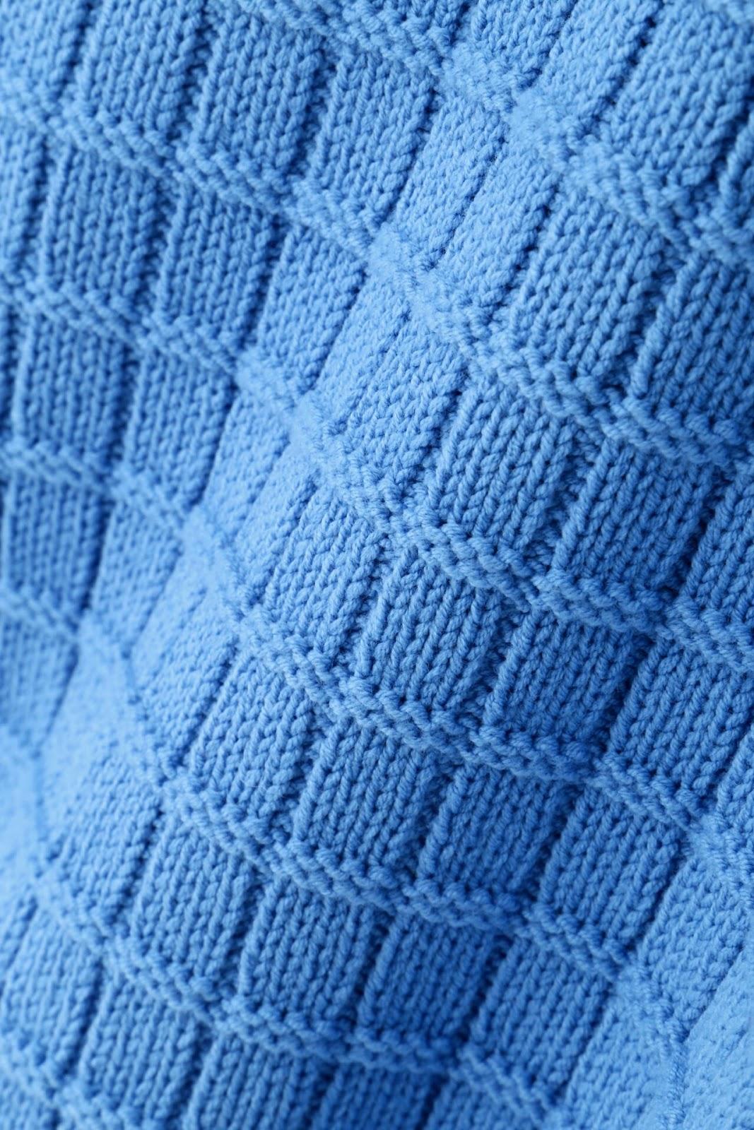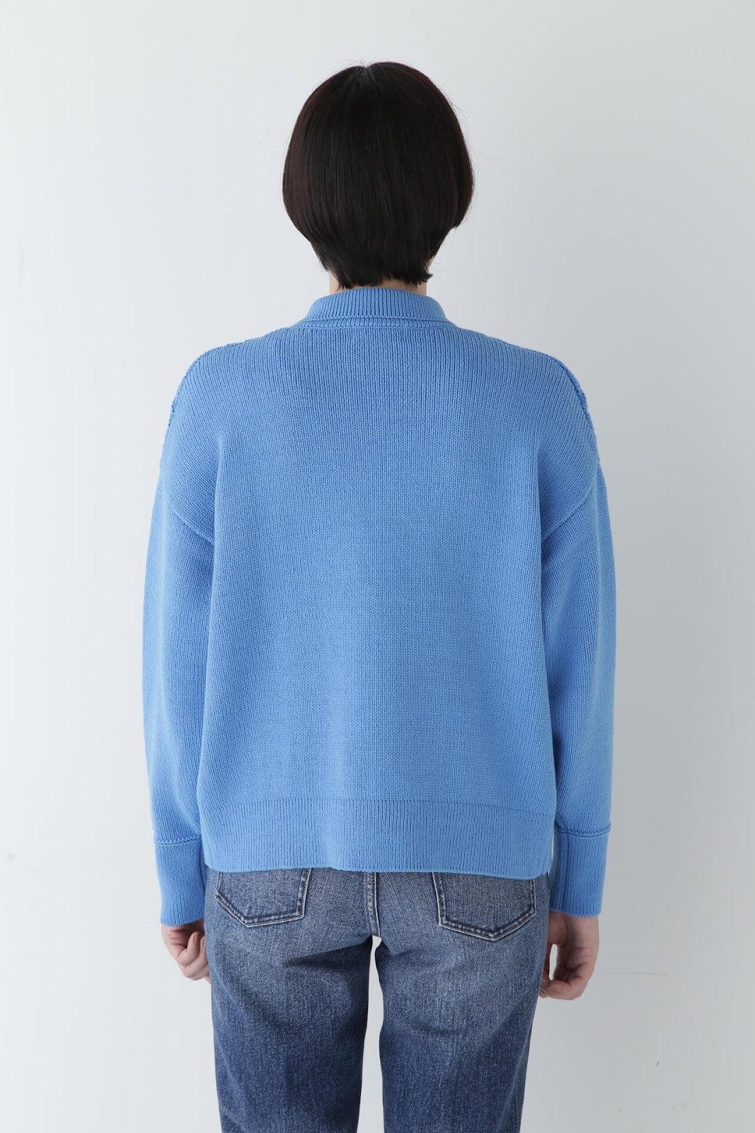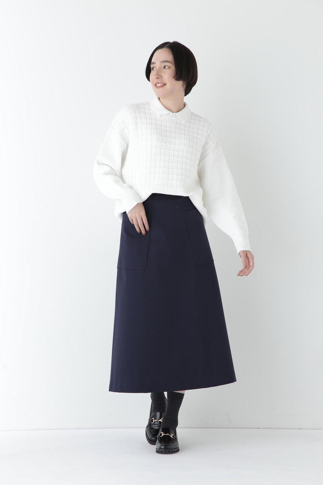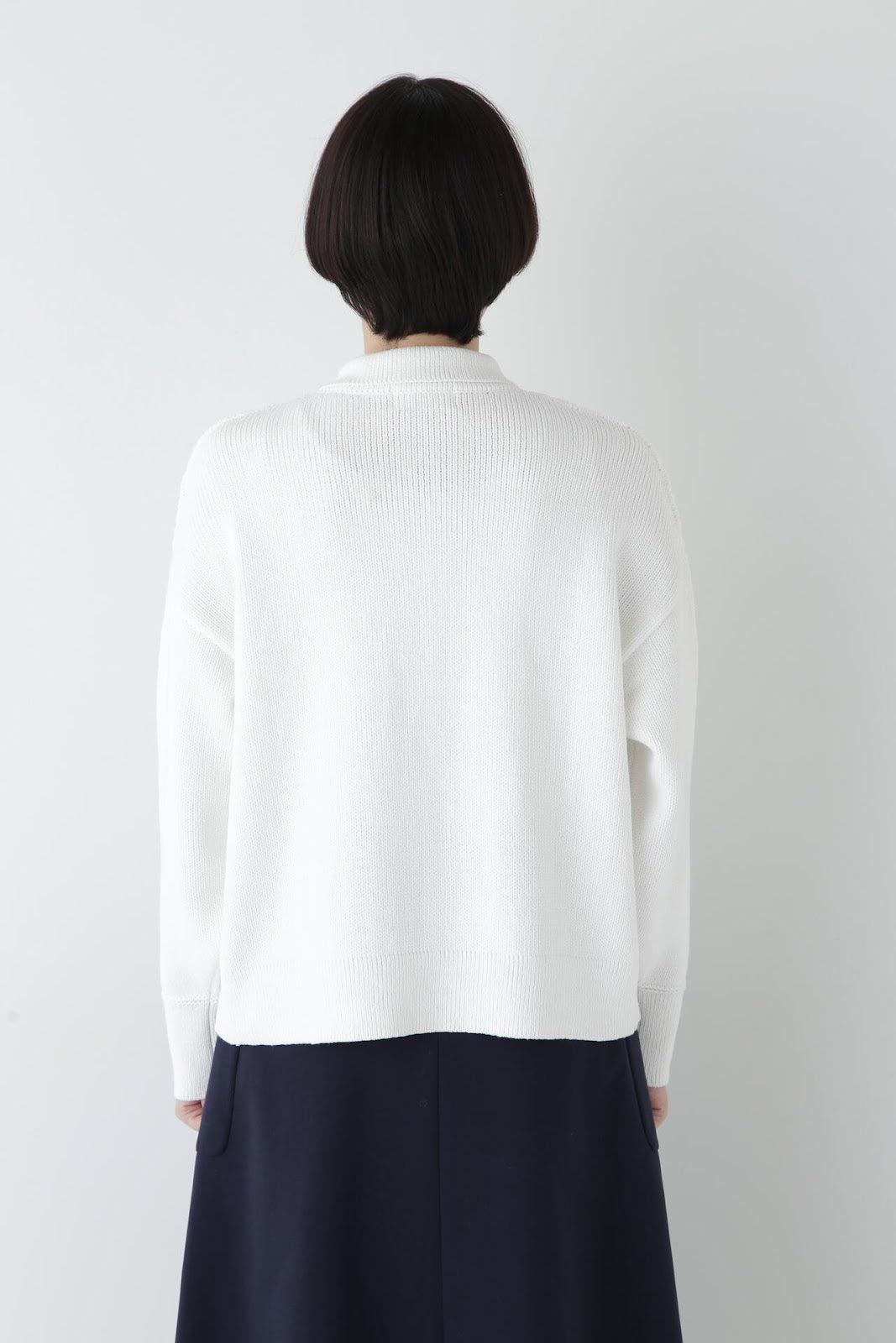 單穿也很好看的 Polo 領針織套頭衫 [設計特色] 這是一款中規中矩的傳統感套頭衫,衣領上的棋盤格圖案與紐扣相呼應。袖子和後背採用針織面料,將正面的圖案發揮得淋漓盡致。衣領上的廓形設計成為今年的典型款式。厚重的棉腈綸面料的特點是輕盈柔軟,與肉感截然相反。面料採用輕柔的磨毛處理,具有保暖性。色彩設計給人以春天的感覺。建議搭配:針織衫是全場的主角,建議搭配簡單的寬褲或長裙。