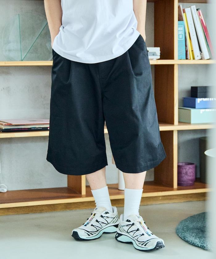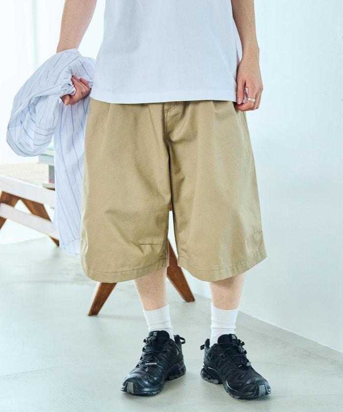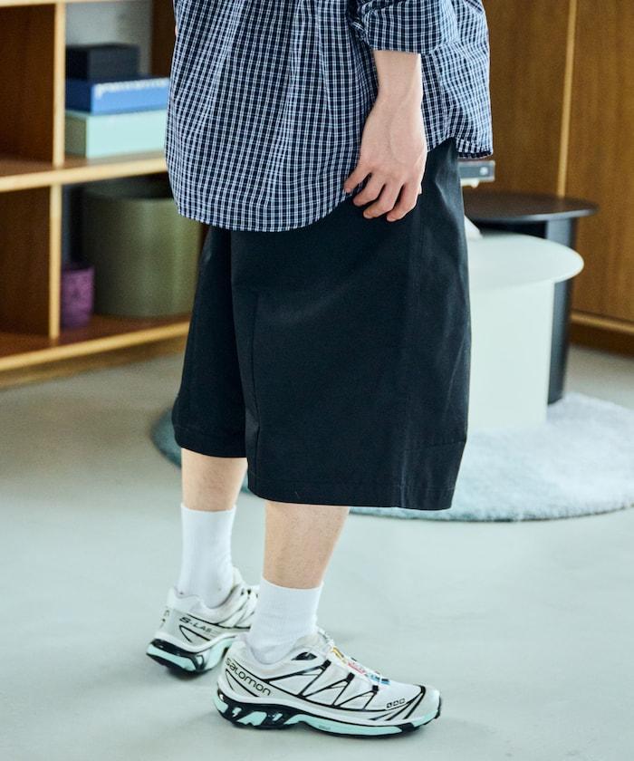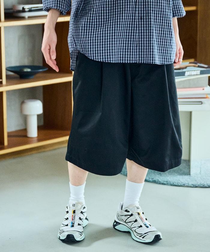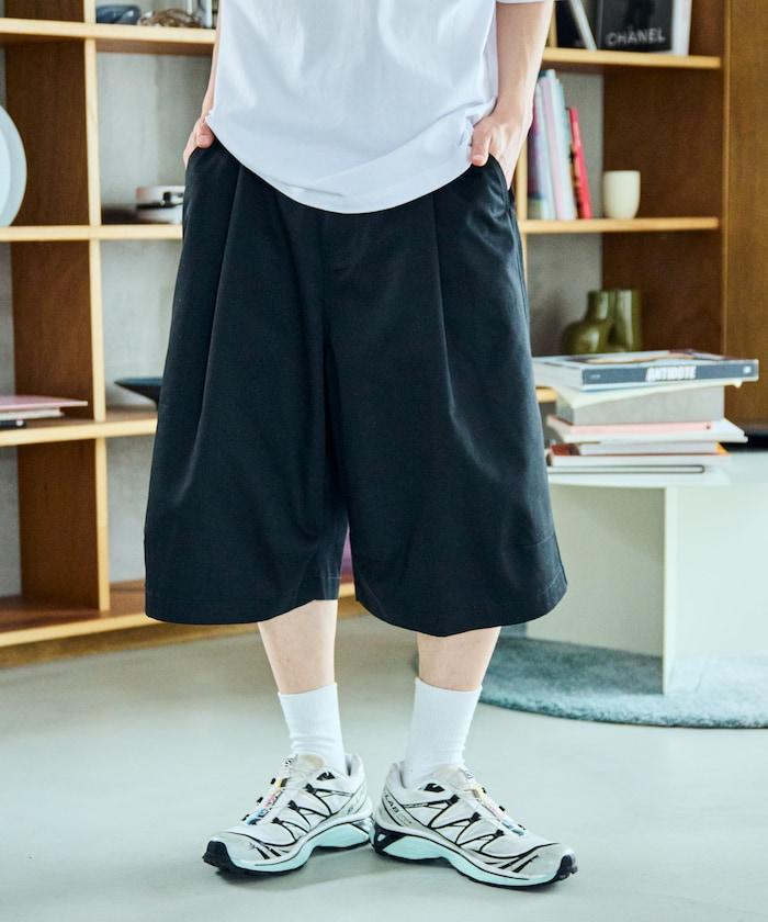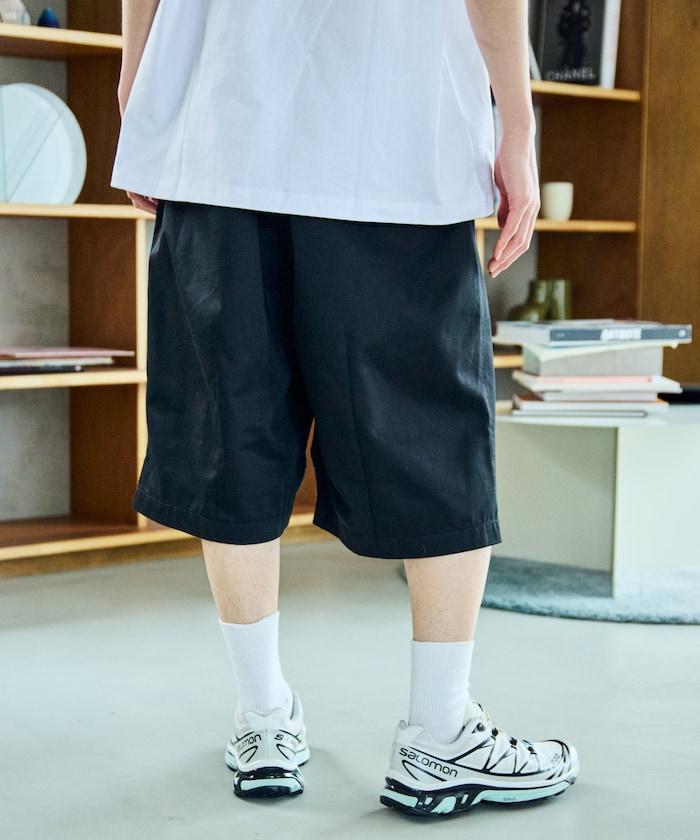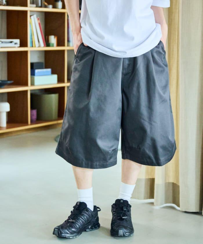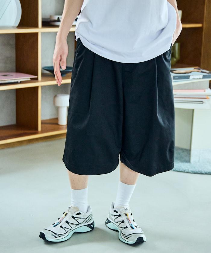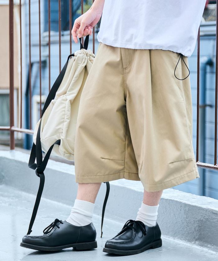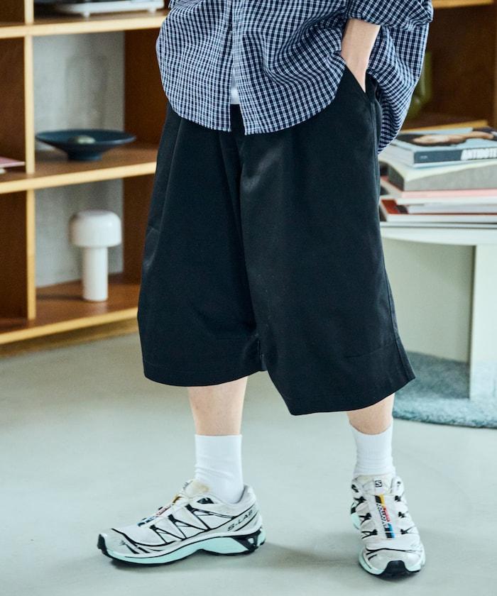 寬鬆款帆布褶皺寬腿短褲