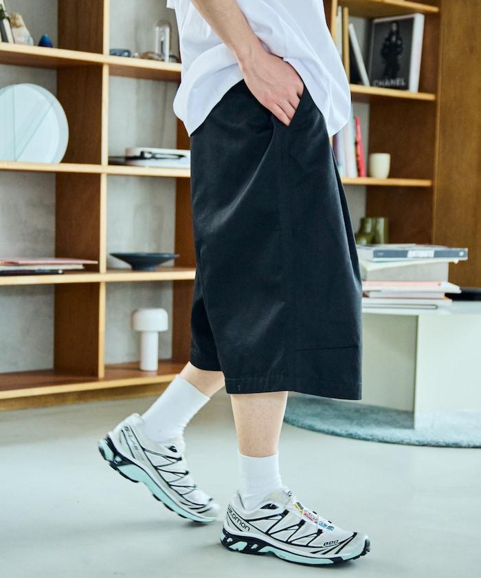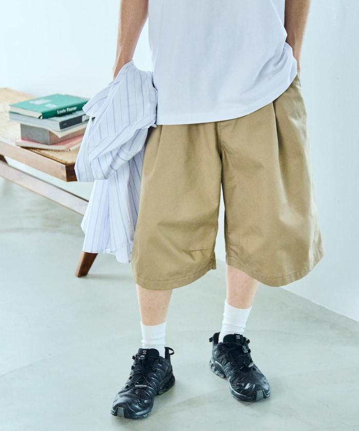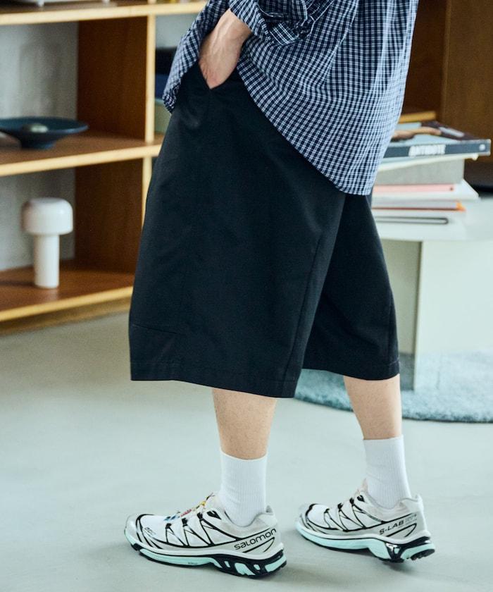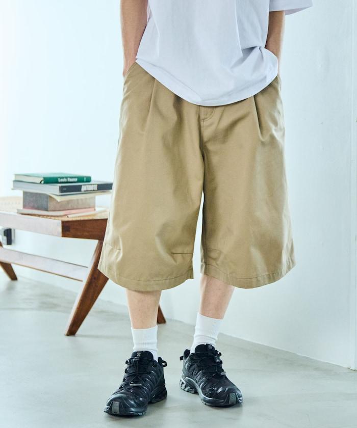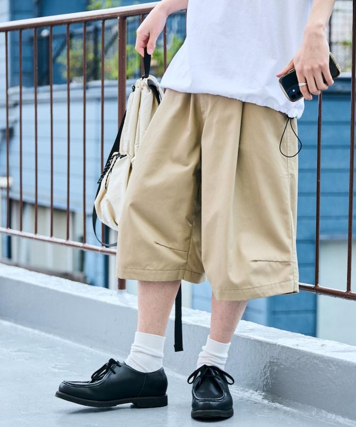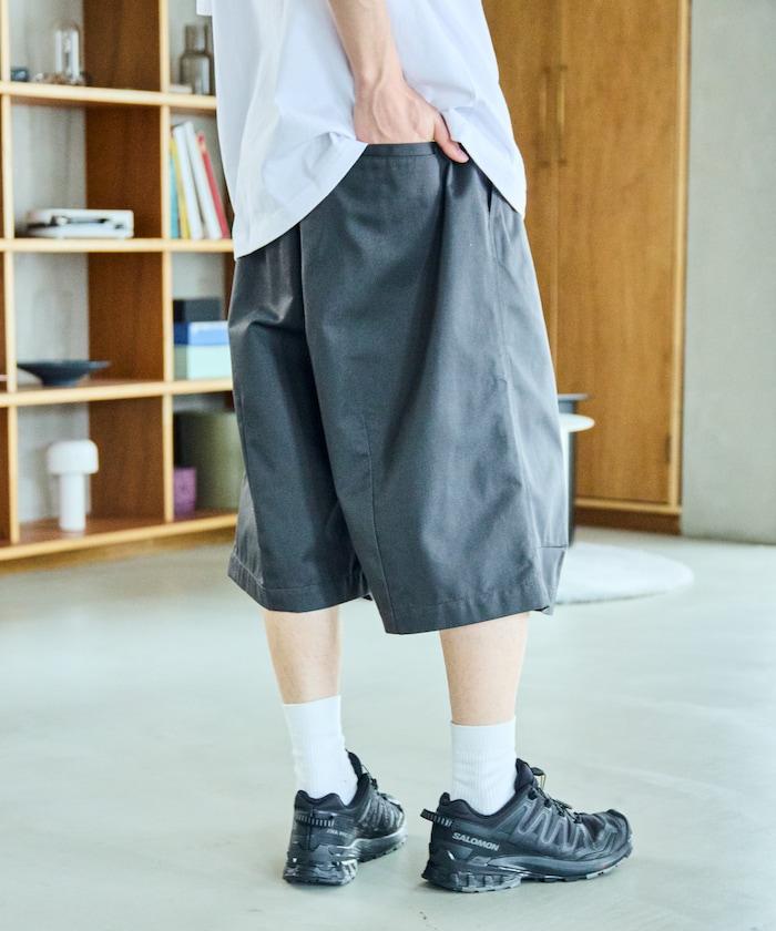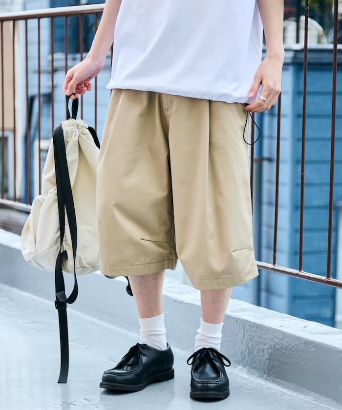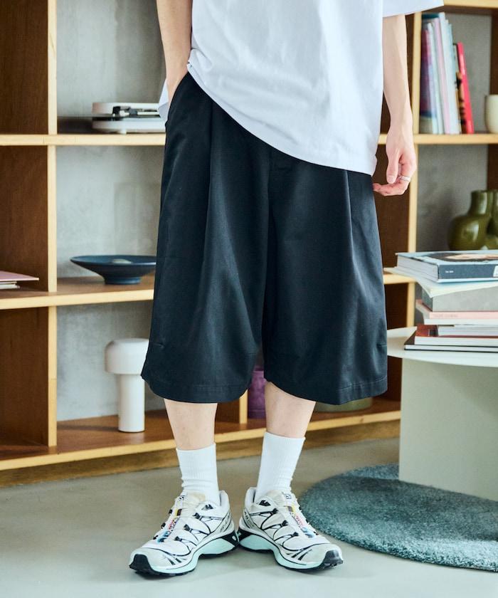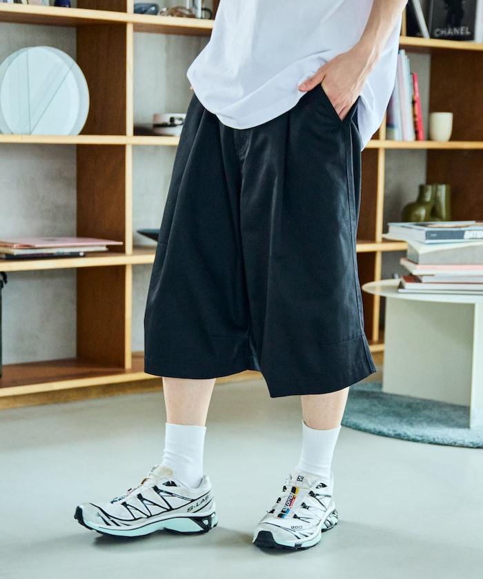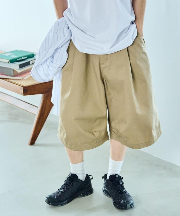 寬鬆款帆布褶皺寬腿短褲