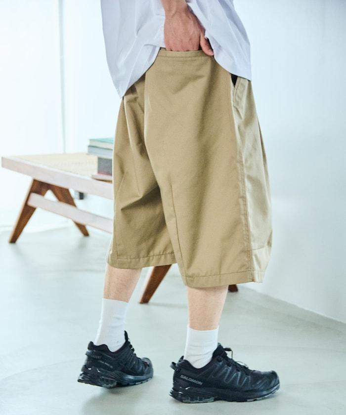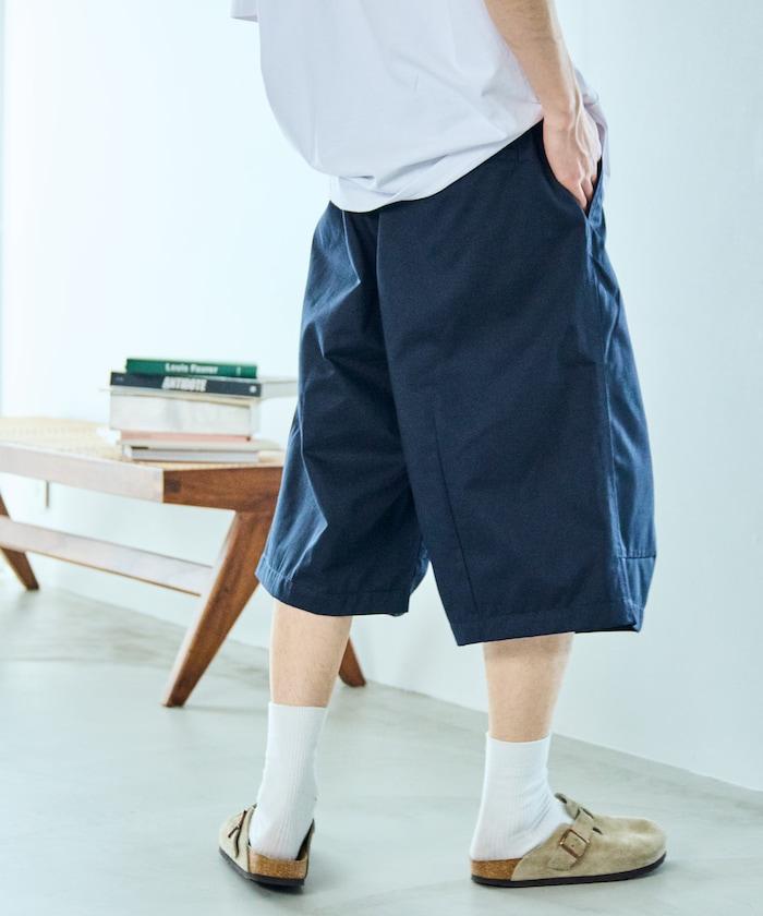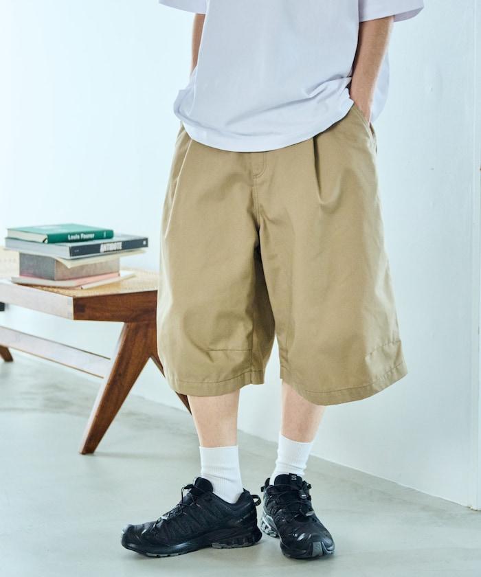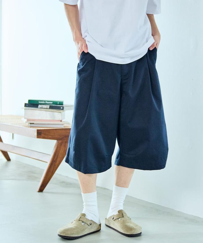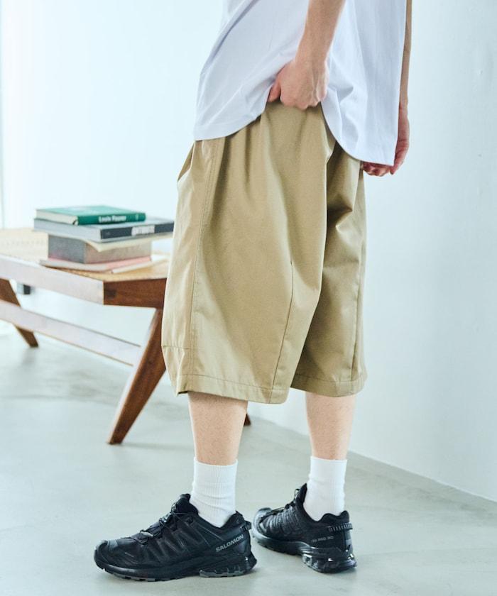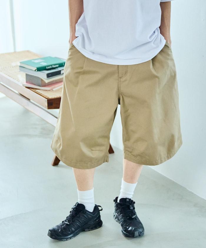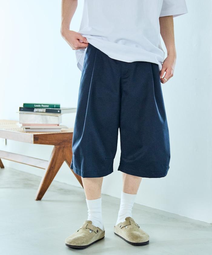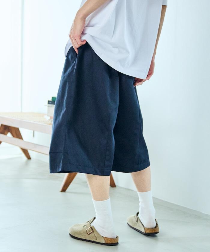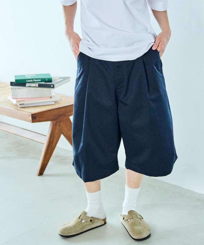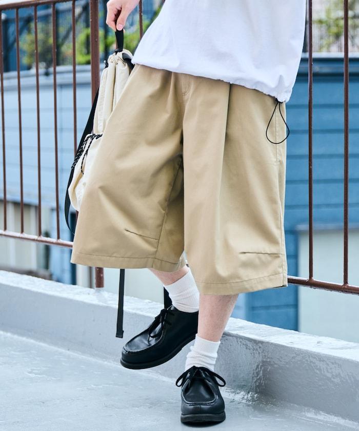 寬鬆款帆布褶皺寬腿短褲