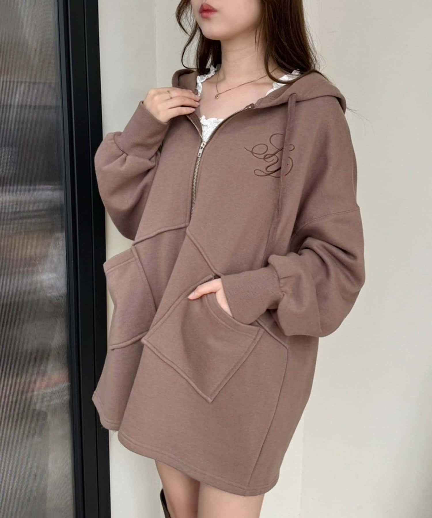 連帽衫胸前繡有徽標,大口袋設計給人舒適的印象。