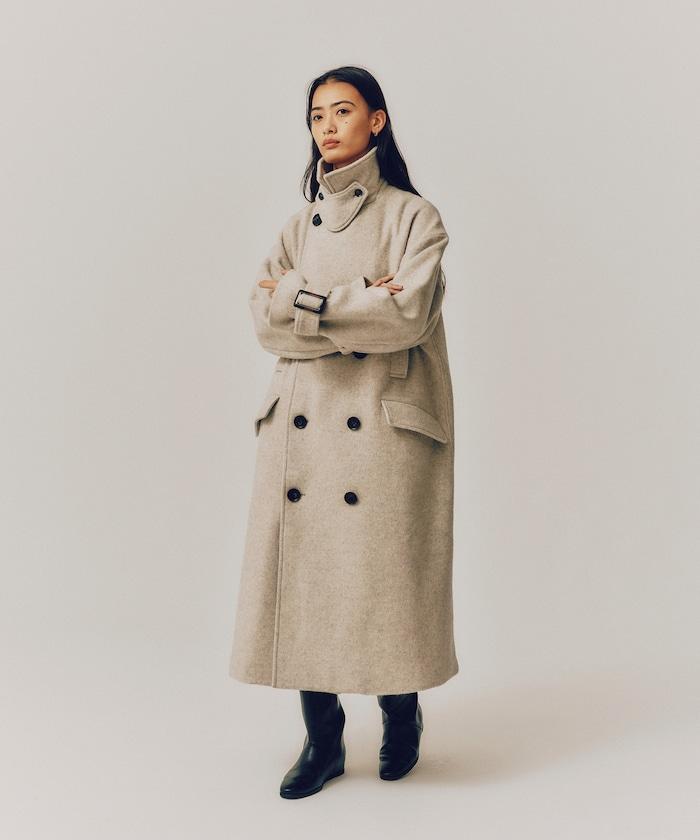 可持續羊毛大衣使用的是回收羊毛 "RE:NEW WOOL",這是一種日本製造的優質可回收材料。