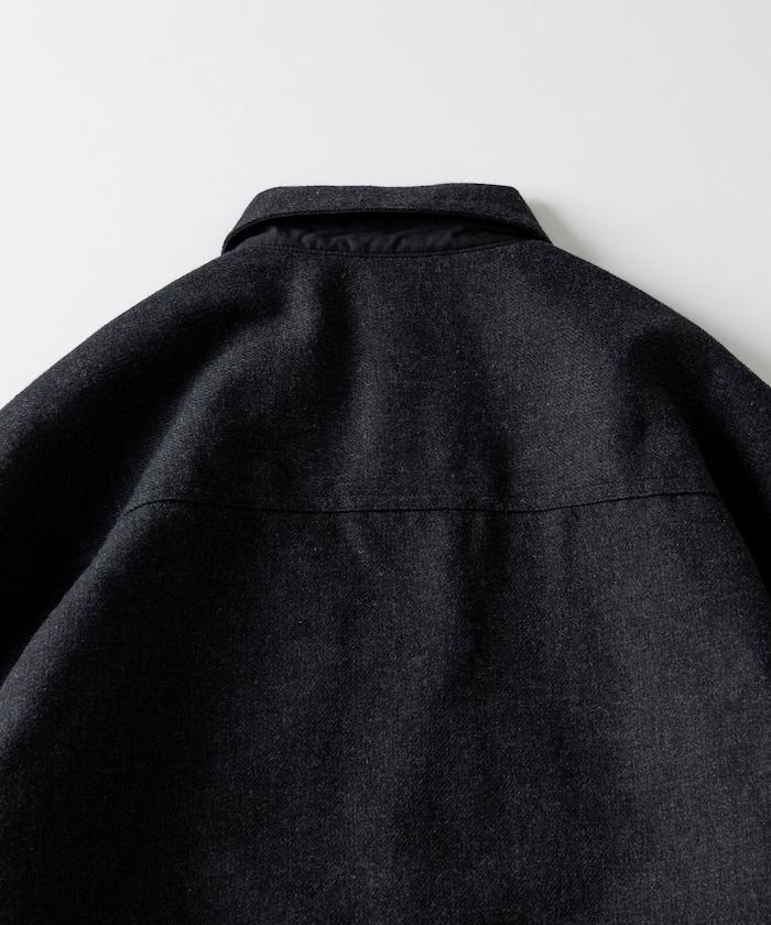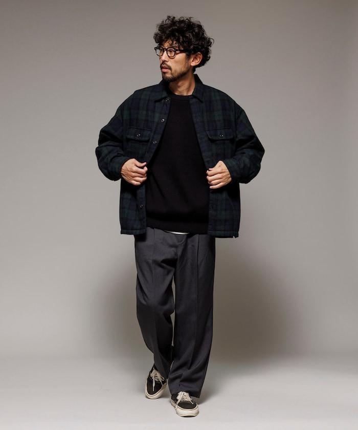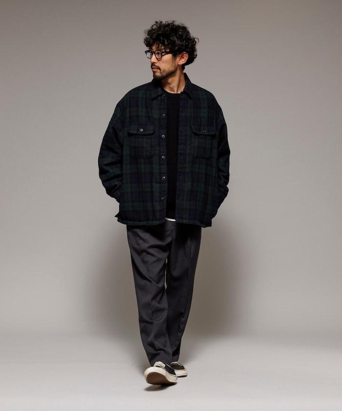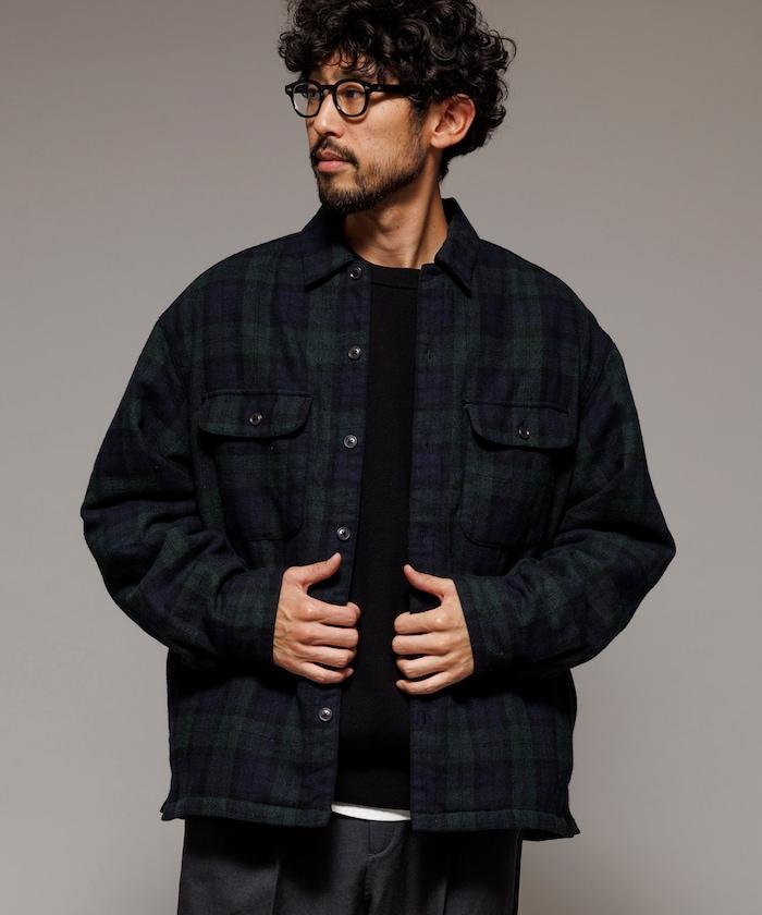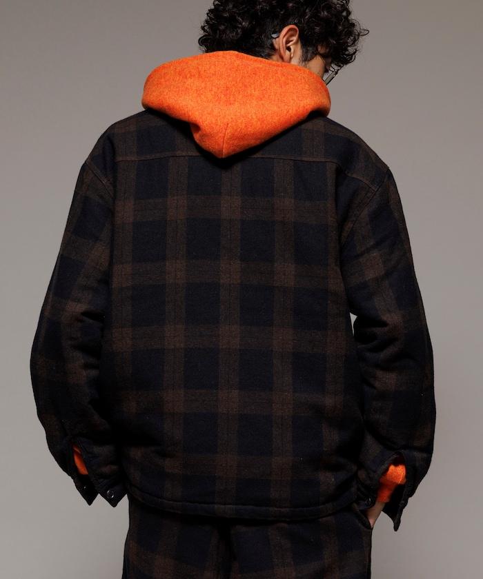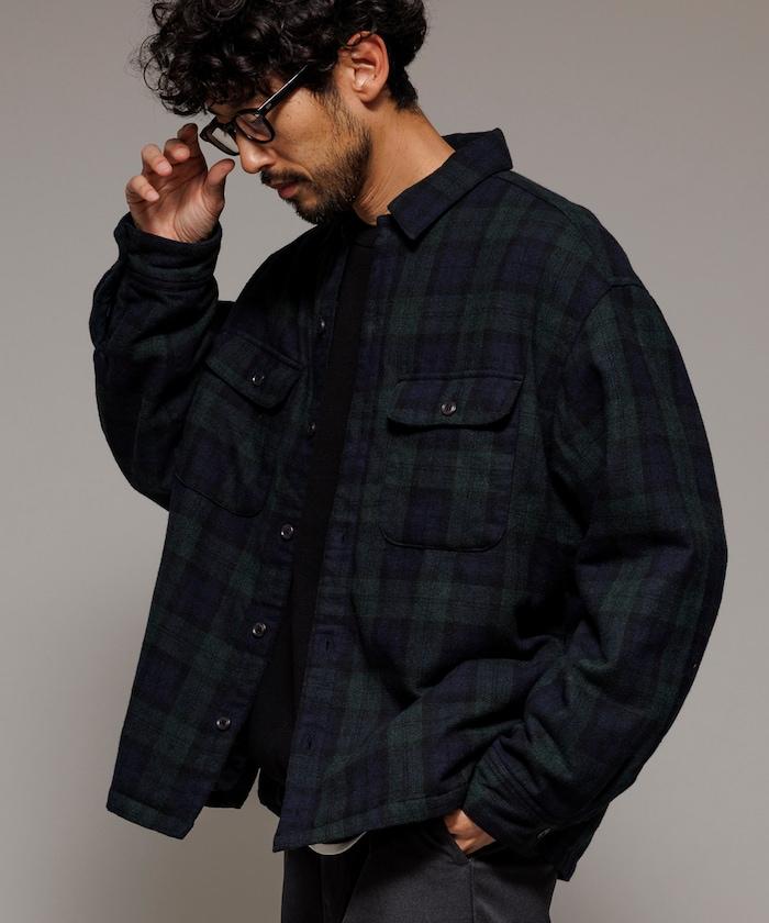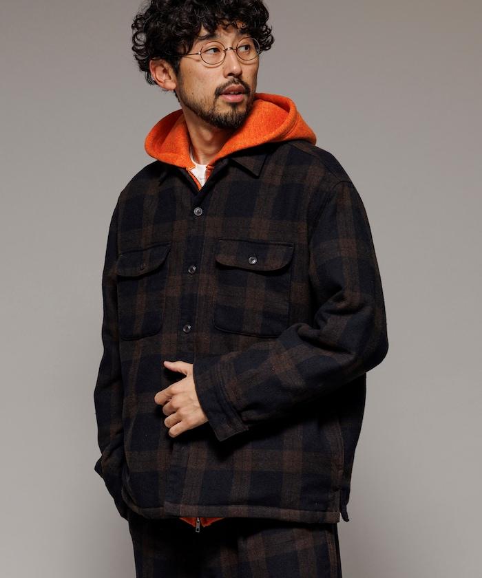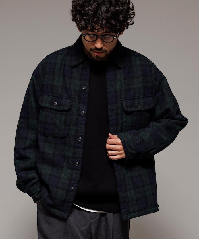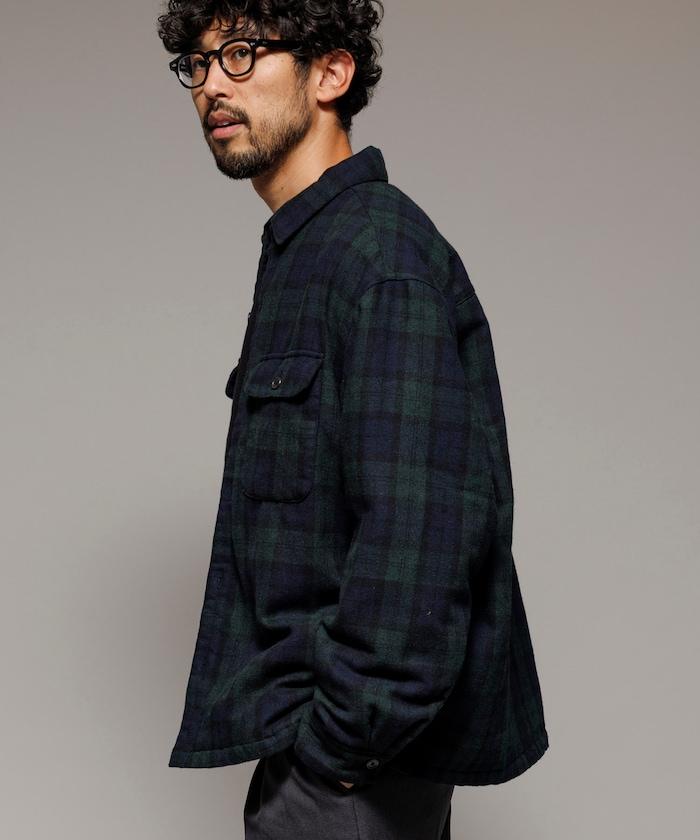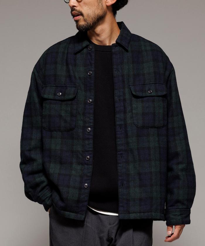 寬鬆版型水洗羊毛混紡法蘭絨加棉格紋襯衫夾克
