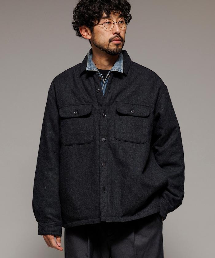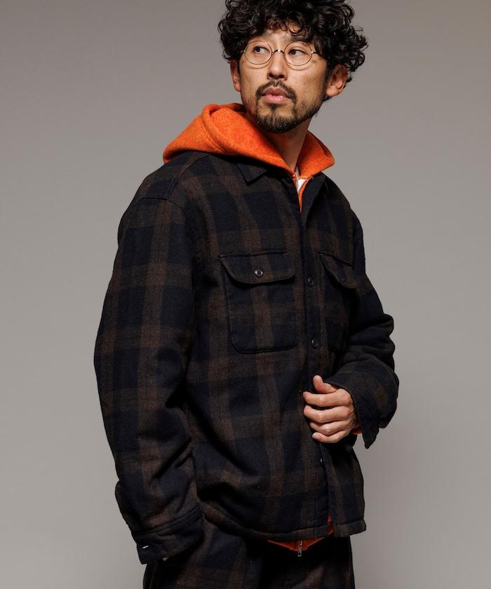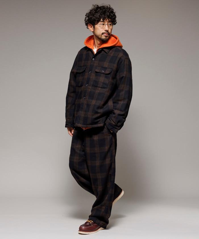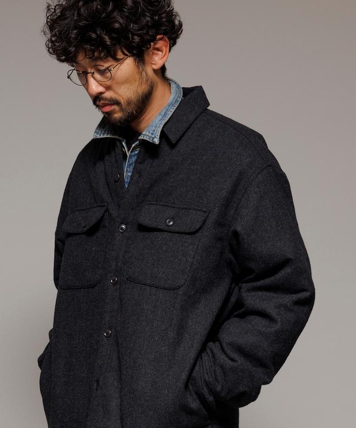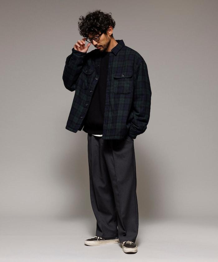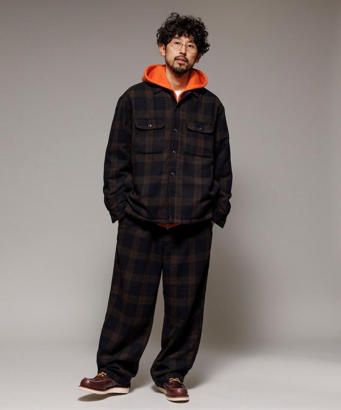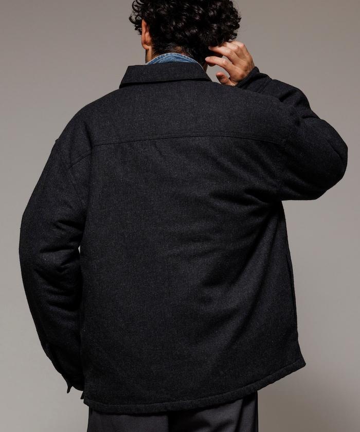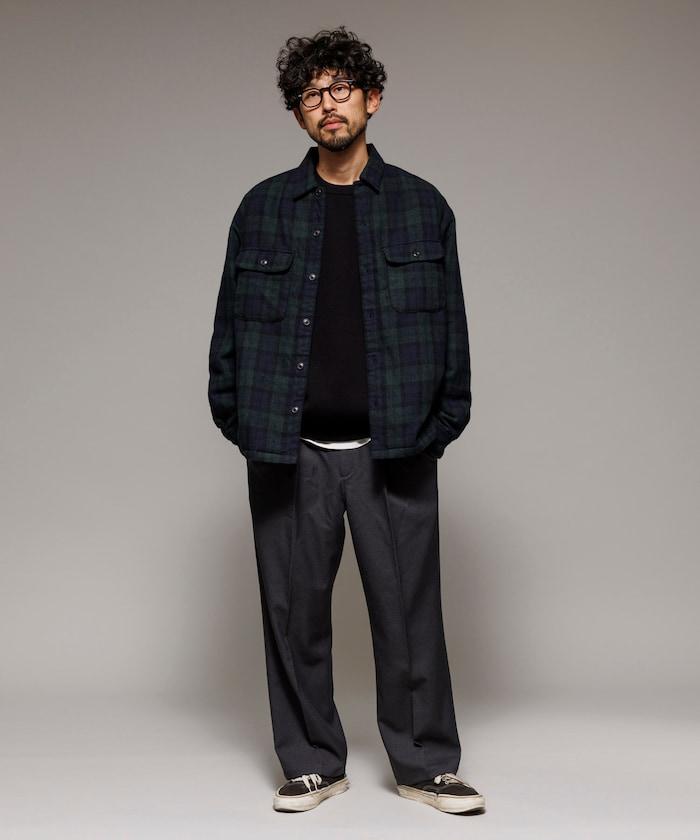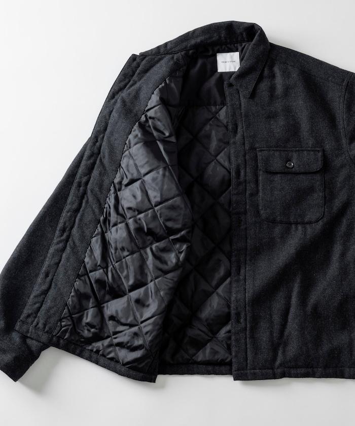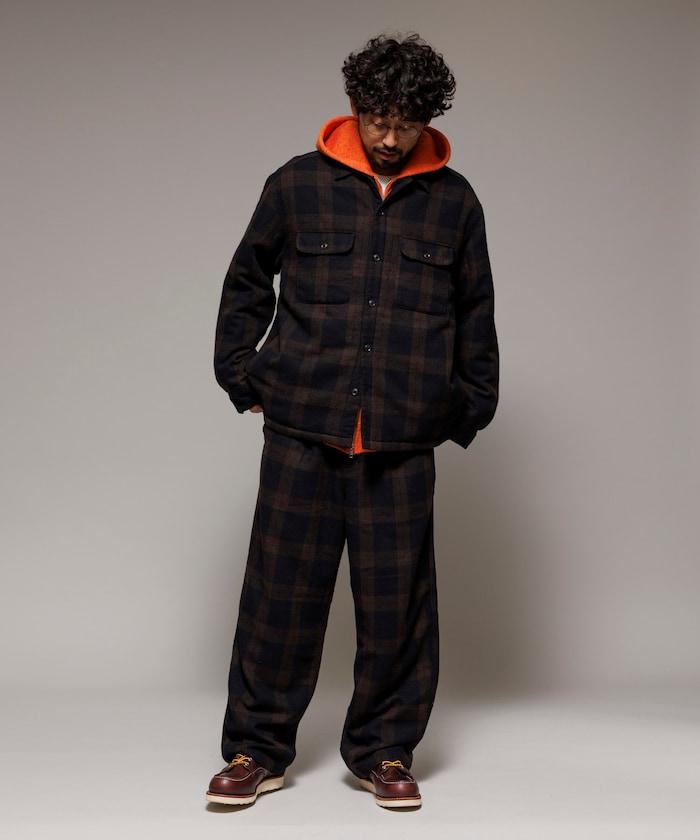 寬鬆版型水洗羊毛混紡法蘭絨加棉格紋襯衫夾克