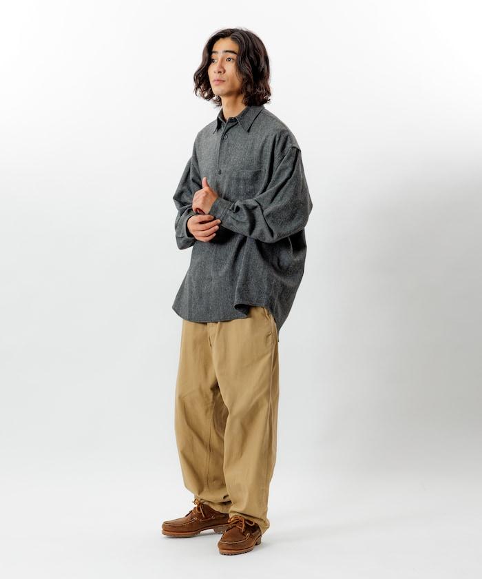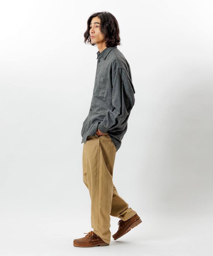 基本款襯衫,採用質感極佳的仿羊毛面料。
