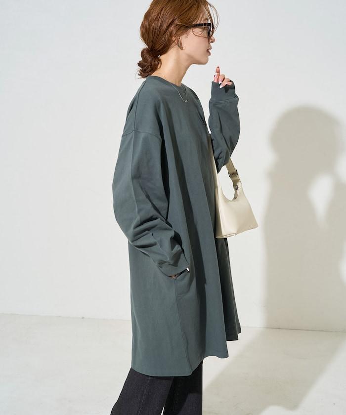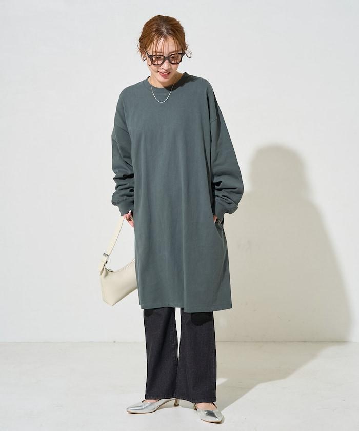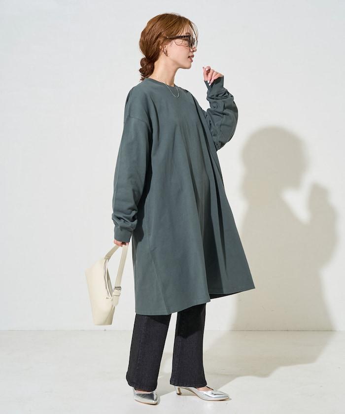 與簡單的褲子或牛仔褲疊穿,會有一種長衫的感覺。