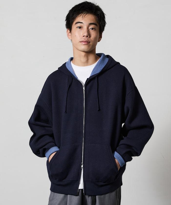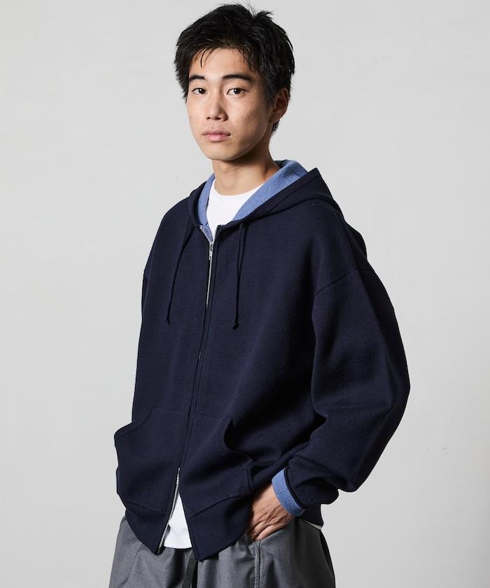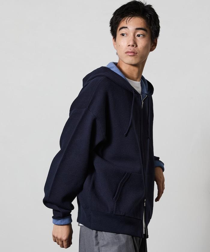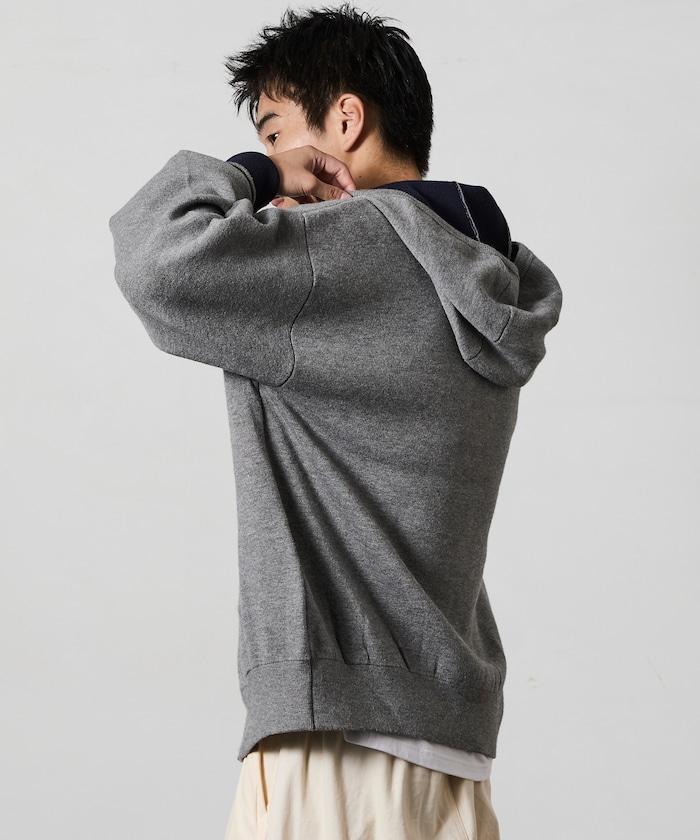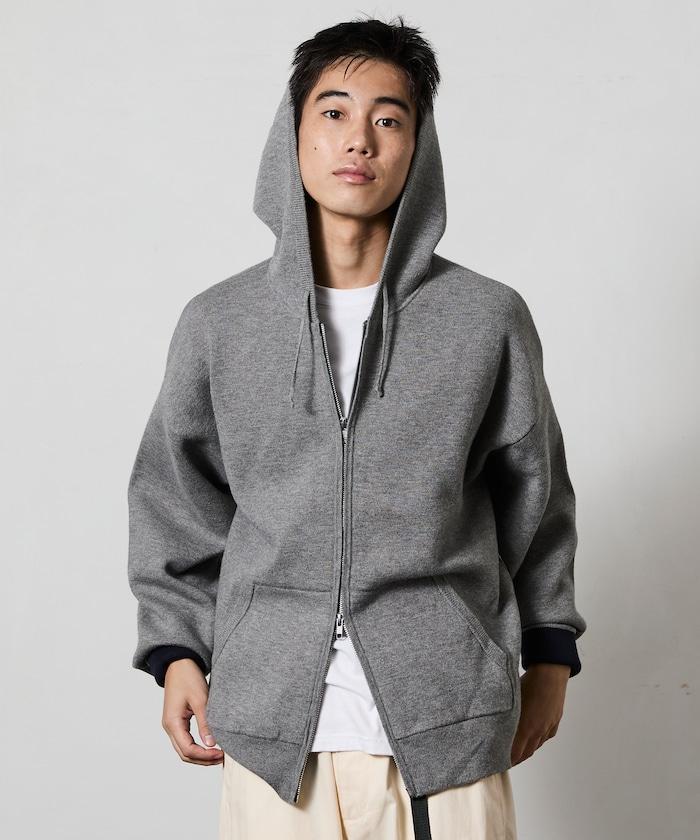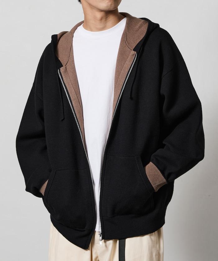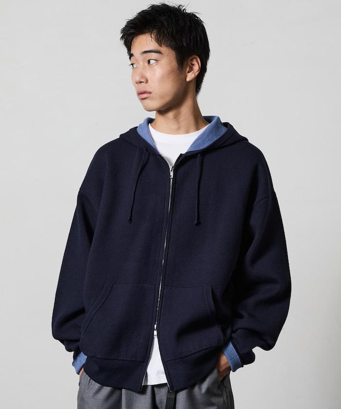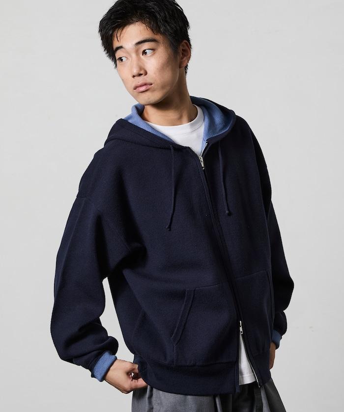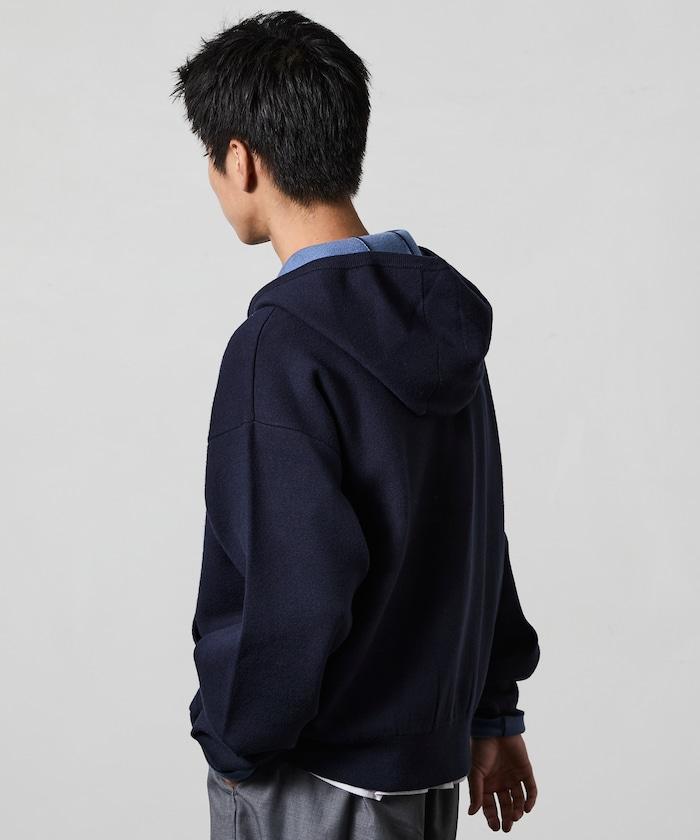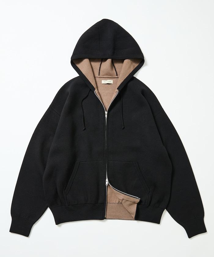 這款針織連帽衫的正反面採用層壓工藝,具有獨特的配色和質感。