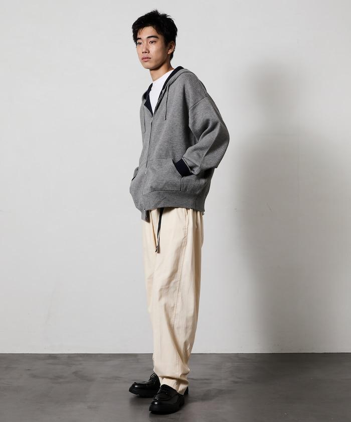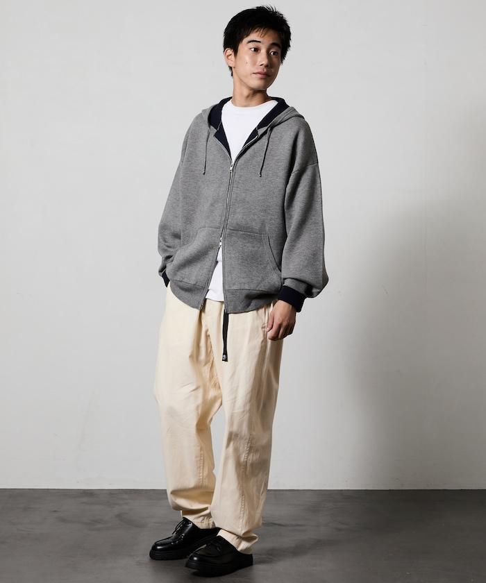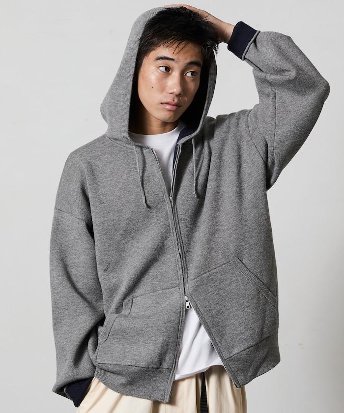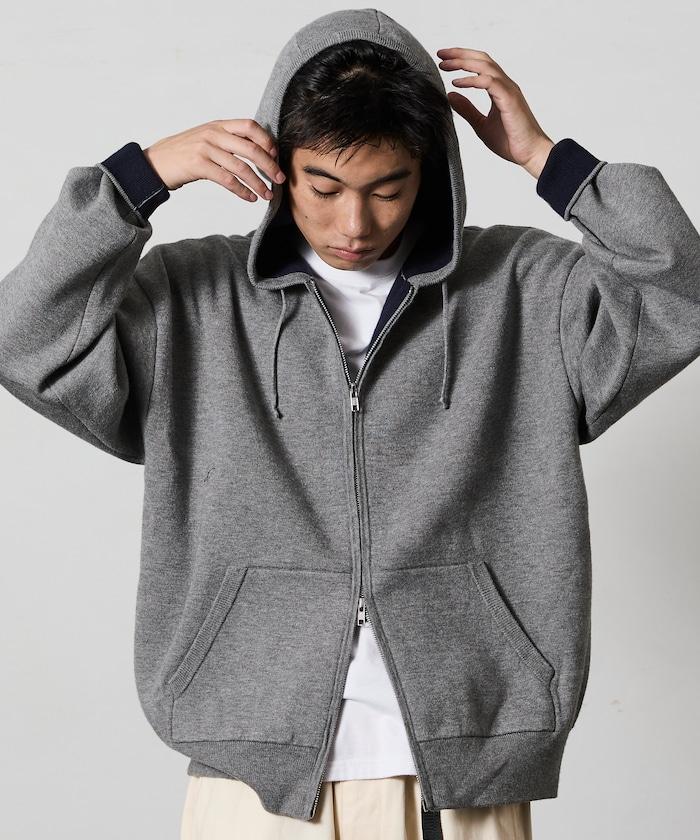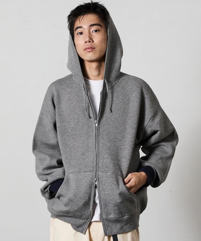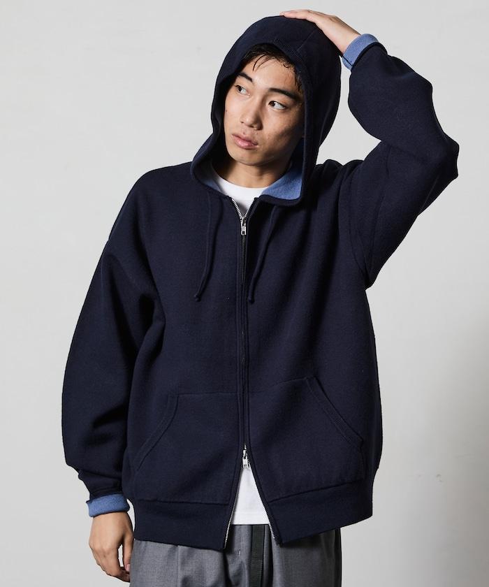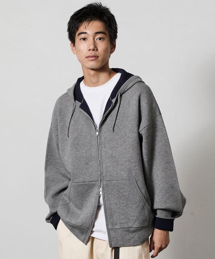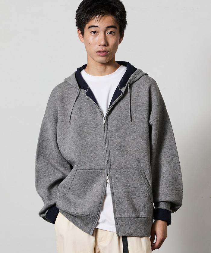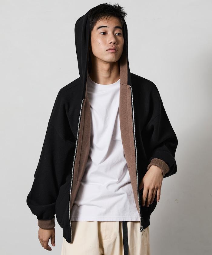 這款針織連帽衫的正反面採用層壓工藝,具有獨特的配色和質感。