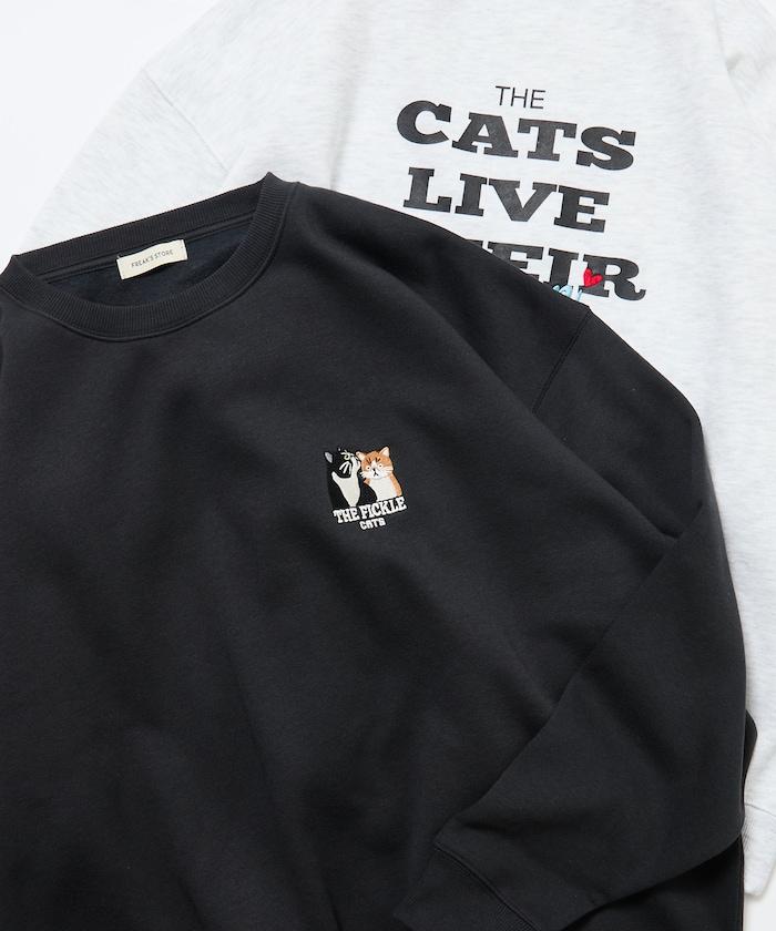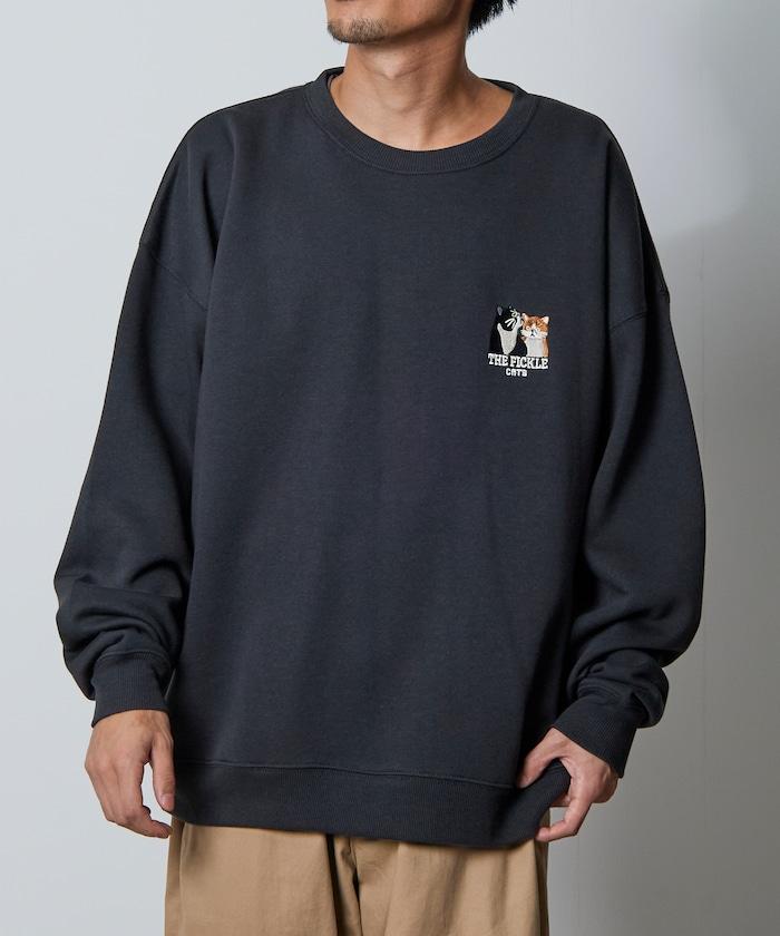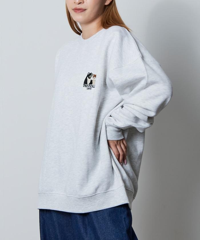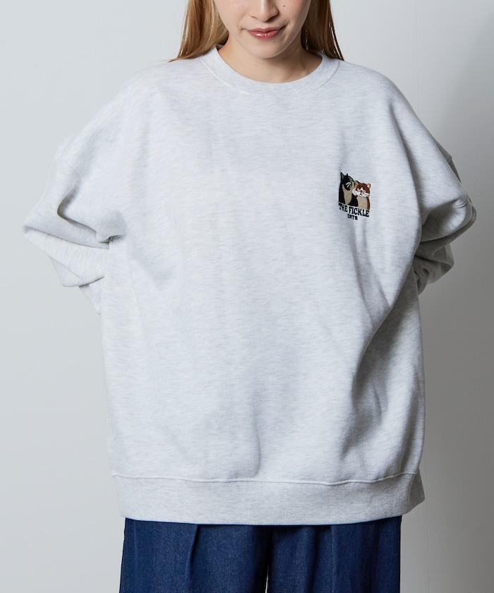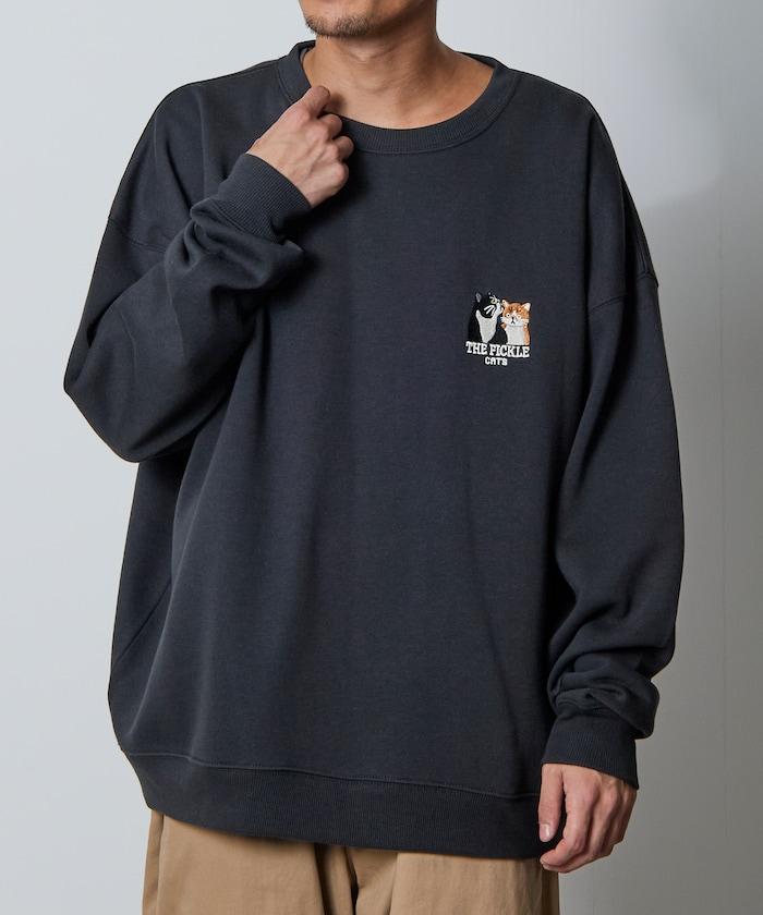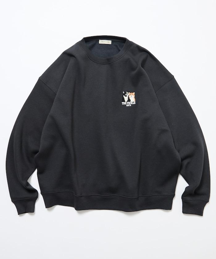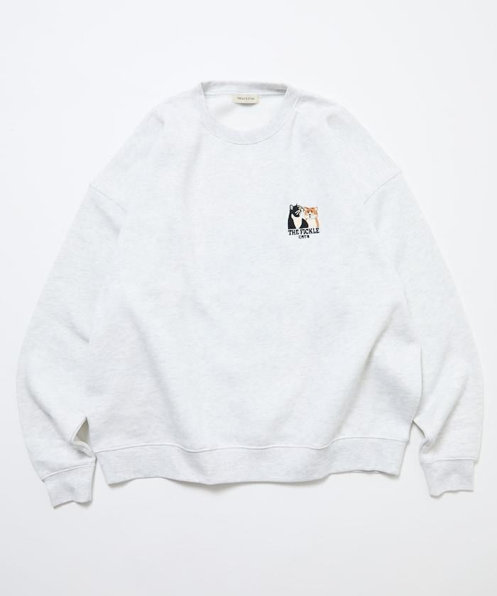 寬鬆版型 刺繡 後背印花 圓領衛衣 /Fickle Cats