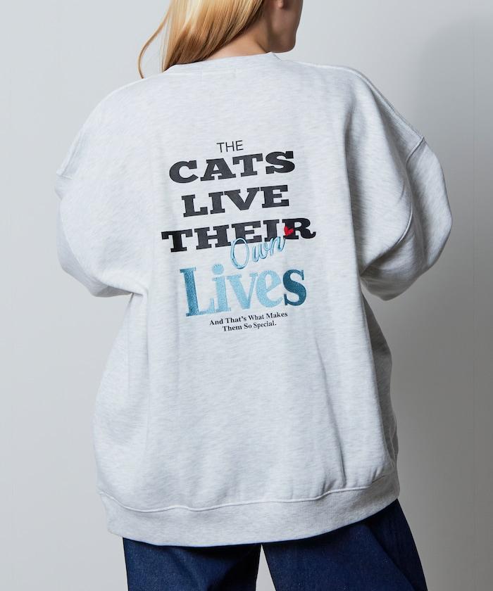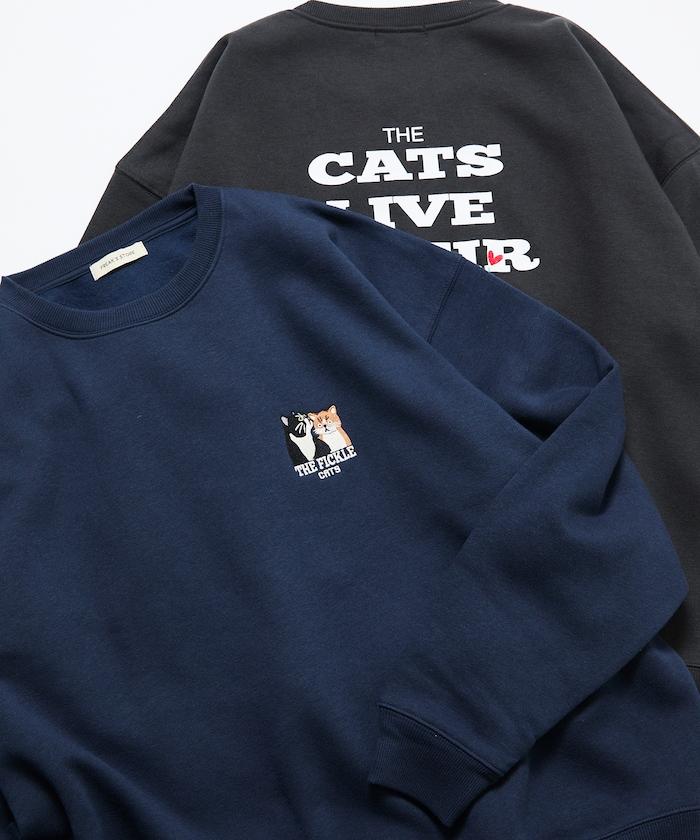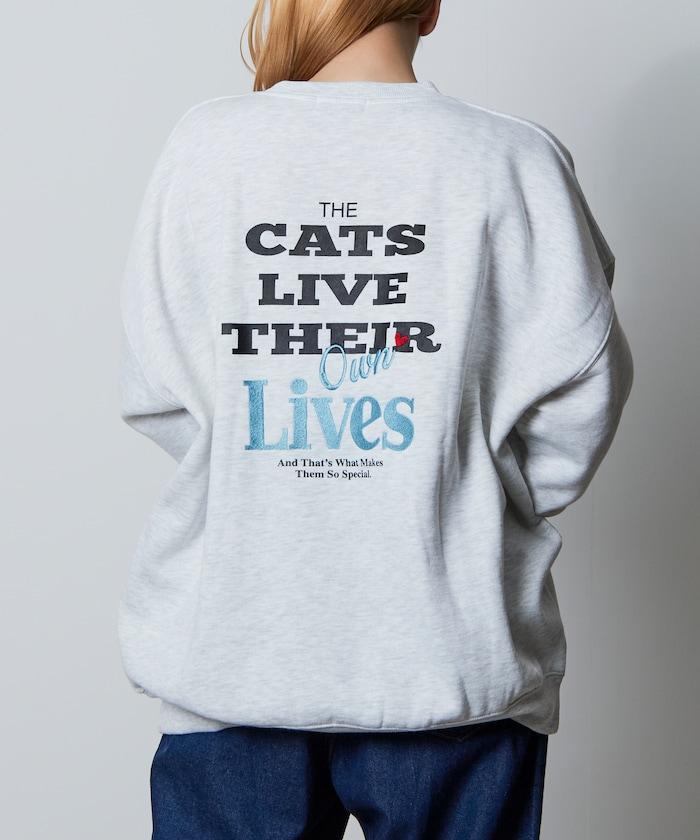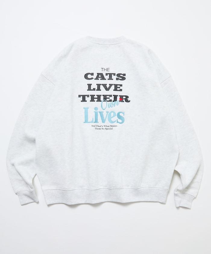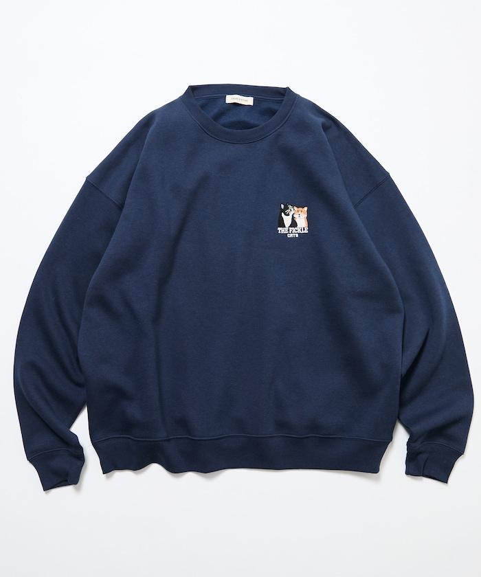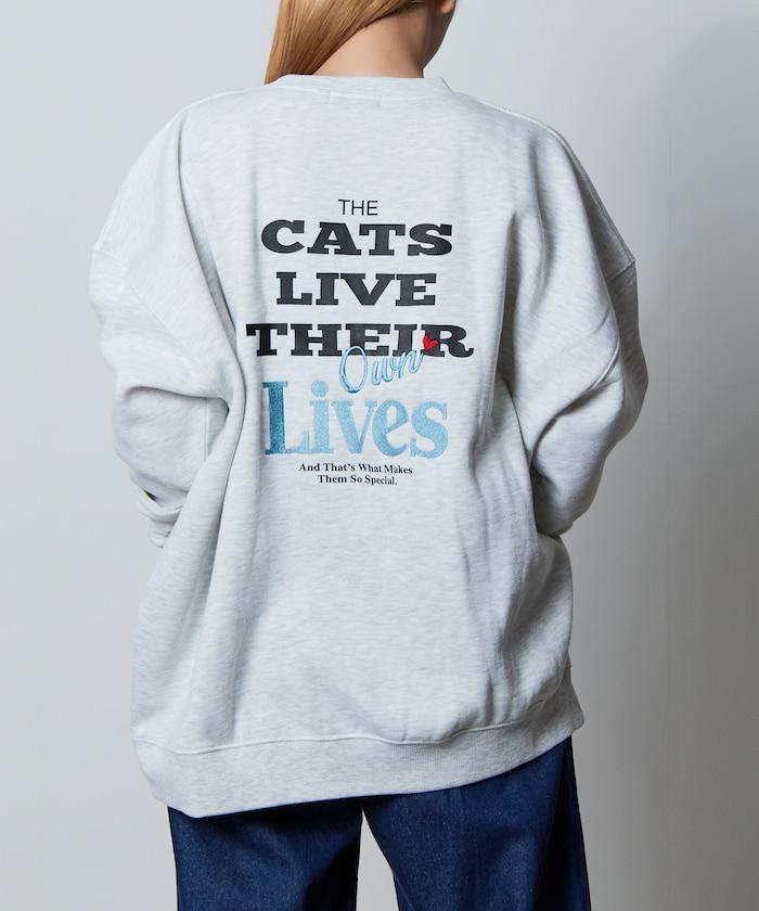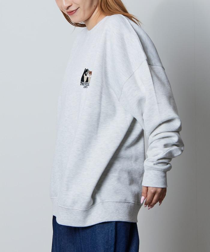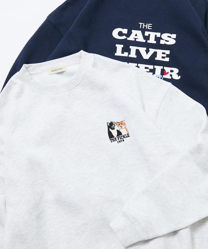 寬鬆版型 刺繡 後背印花 圓領衛衣 /Fickle Cats