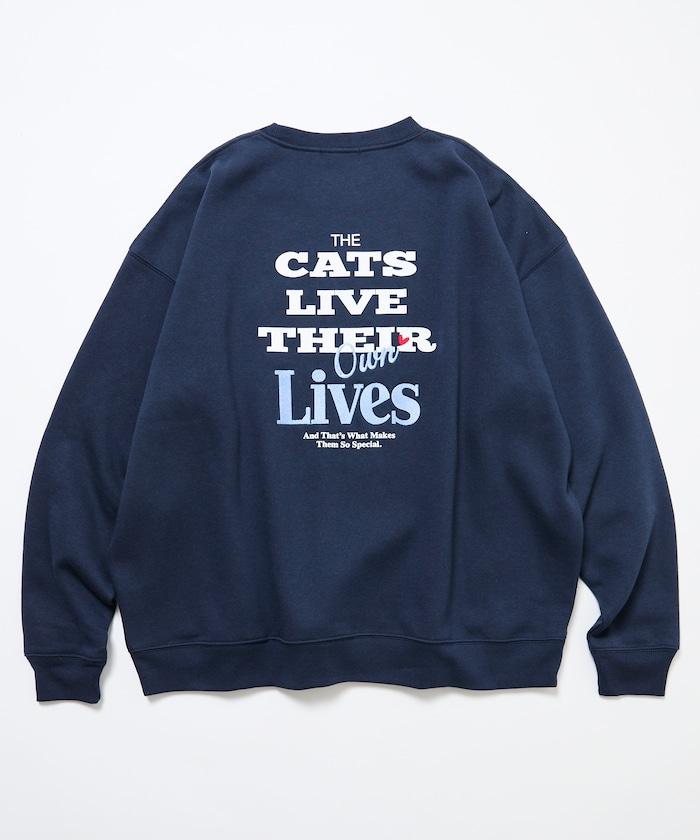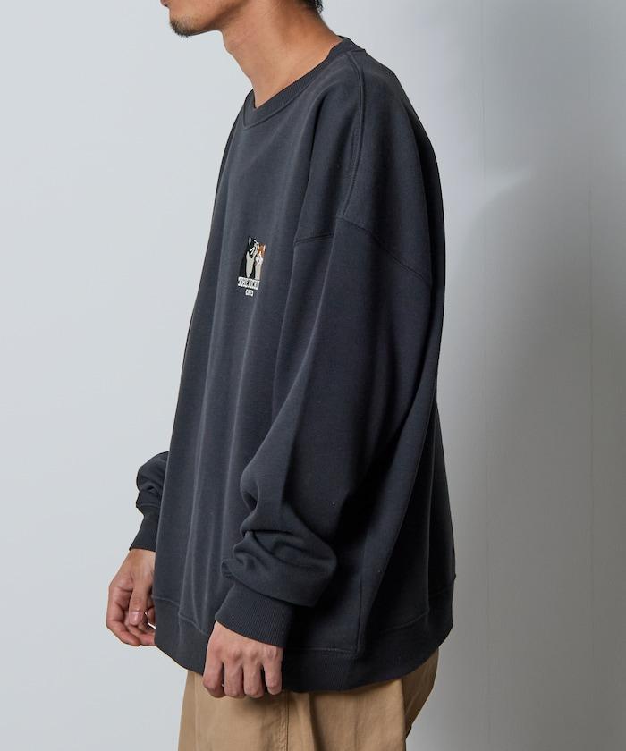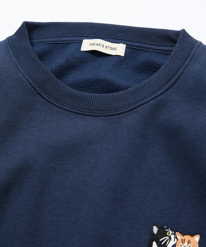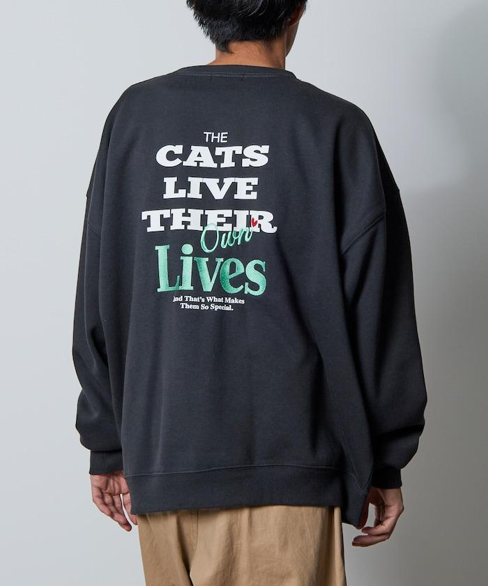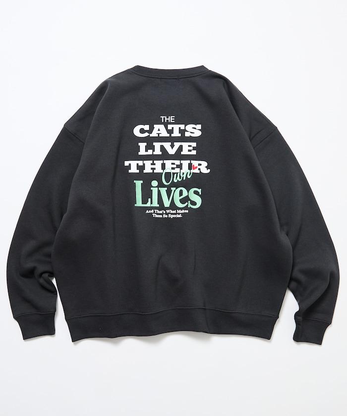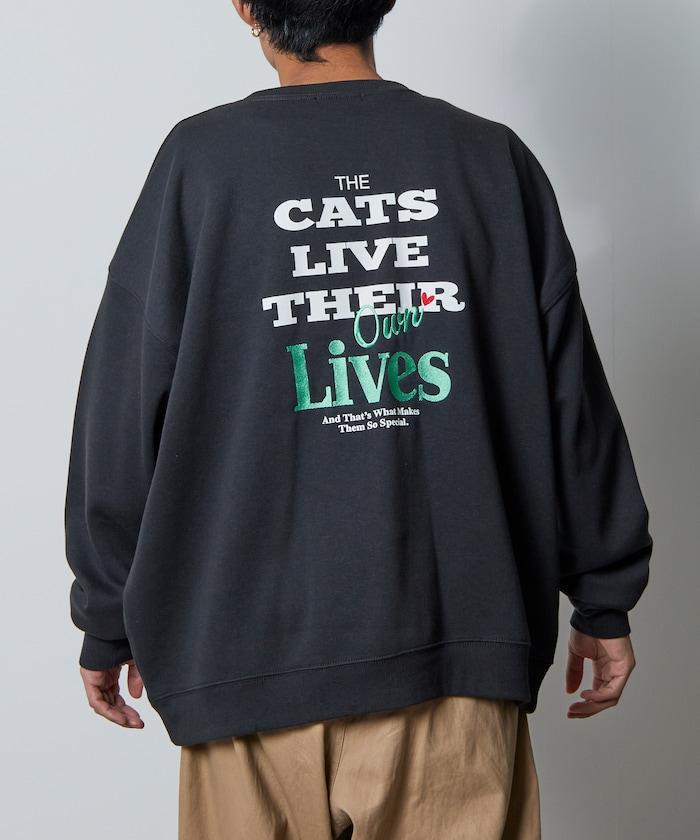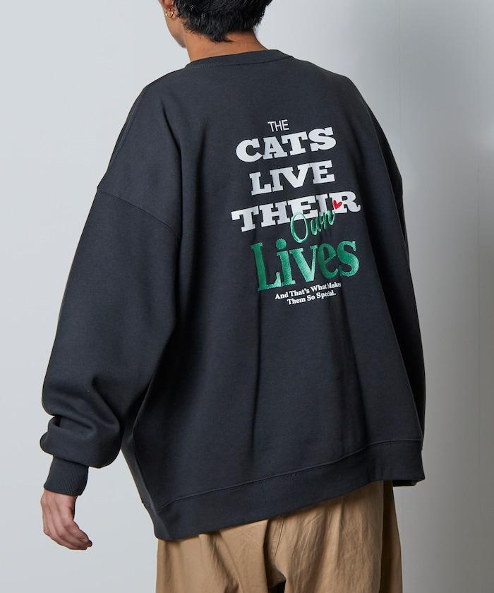 寬鬆版型 刺繡 後背印花 圓領衛衣 /Fickle Cats