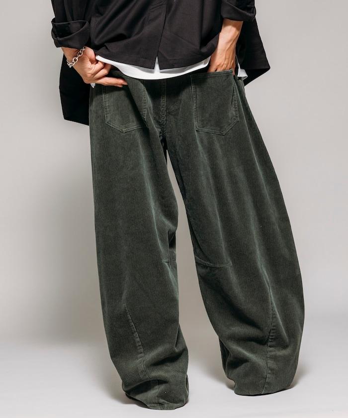 寬鬆版型 單水洗 彎曲燈芯絨長褲